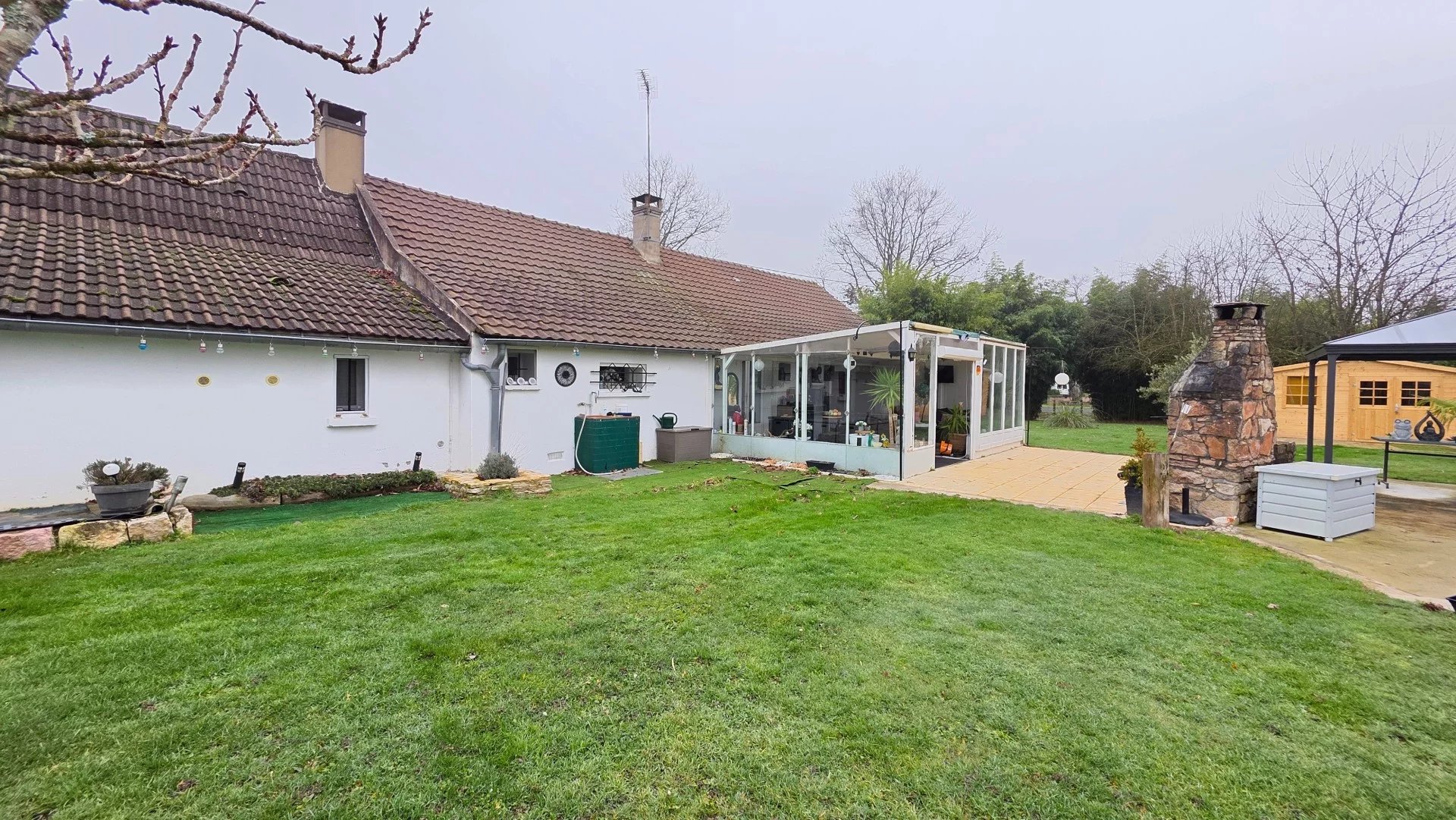 L'Agence des 3 Rivières vous propose en exclusivité cette charmante longère de plain-pied, nichée dans un environnement calme et verdoyant, en pleine campagne sur la commune de Saint-Christophe-en-Bresse, tout en restant à seulement 15 minutes de Chalon-sur-Saône, à proximité des commodités et des écoles. Développant environ 130 m² habitables, cette belle longère séduit immédiatement par son authenticité et ses volumes généreux. Entièrement de plain-pied, elle s'ouvre sur un hall d'entrée accueillant qui mène à une cuisine récente, équipée et lumineuse d'environ 16 m², agréable et fonctionnelle au quotidien. La pièce de vie de 46 m², véritable coeur de la maison, offre un espace convivial et chaleureux, sublimé par les poutres apparentes qui conservent tout le charme de l'ancien. Elle bénéficie d'un accès direct à la véranda, idéale pour profiter de l'extérieur en toute saison. Un dégagement dessert ensuite quatre belles chambres, confortables et bien réparties, d'environ 11, 12, 13 et 14 m², permettant d'accueillir famille et invités dans de très bonnes conditions. L'espace nuit est complété par une salle de bain avec baignoire et sèche-serviettes, ainsi que des WC indépendants. Côté pratique, la maison dispose également d'un cellier et d'une buanderie, apportant un réel confort d'organisation. A l'extérieur, la propriété offre de nombreuses dépendances qui viennent renforcer son potentiel. La véranda de 25 m² s'ouvre sur une vue dégagée et agréable, orientée vers l'espace barbecue et piscine hors-sol de 10 x 5 m, parfait pour les moments de détente et de convivialité. Un garage d'environ 20 m², un bûcher, plusieurs appentis et petites dépendances, ainsi qu'un chalet de 12 m² avec terrasse complètent l'ensemble. Le terrain, d'une superficie de 2 735 m², est entièrement clôturé, avec une partie cour et une partie verdure agrémentée d'arbres fruitiers, offrant un cadre de vie paisible et agréable. L'accès se fait par un portail motorisé. Concernant les équipements, la maison est actuellement équipée de menuiseries en simple vitrage avec volets persiennes, d'un chauffage central au fioul, et d'un assainissement individuel fonctionnel mais non conforme, laissant la possibilité aux futurs acquéreurs d'adapter ces éléments selon leurs besoins et leurs projets. La toiture est en bon état, et les combles sont aménageables, offrant de belles perspectives d'évolution. Une propriété pleine de charme et de potentiel, idéale pour les amateurs de calme, d'espace et d'authenticité, souhaitant personnaliser leur futur lieu de vie dans un cadre verdoyant. Pour plus d'informations ou pour organiser une visite, veuillez contacter l'Agence des 3 Rivières. Nous sommes à votre disposition pour répondre à toutes vos questions et vous accompagner dans votre projet immobilier. Ce bien est présenté par Adeline PERCHET de l'Agence des 3 Rivières - 03.85.42.00.52 - Saint Germain du Plain. Les informations sur les risques auxquels ce bien est exposé sont disponibles sur le site Géorisques : http://www.georisques.gouv.fr