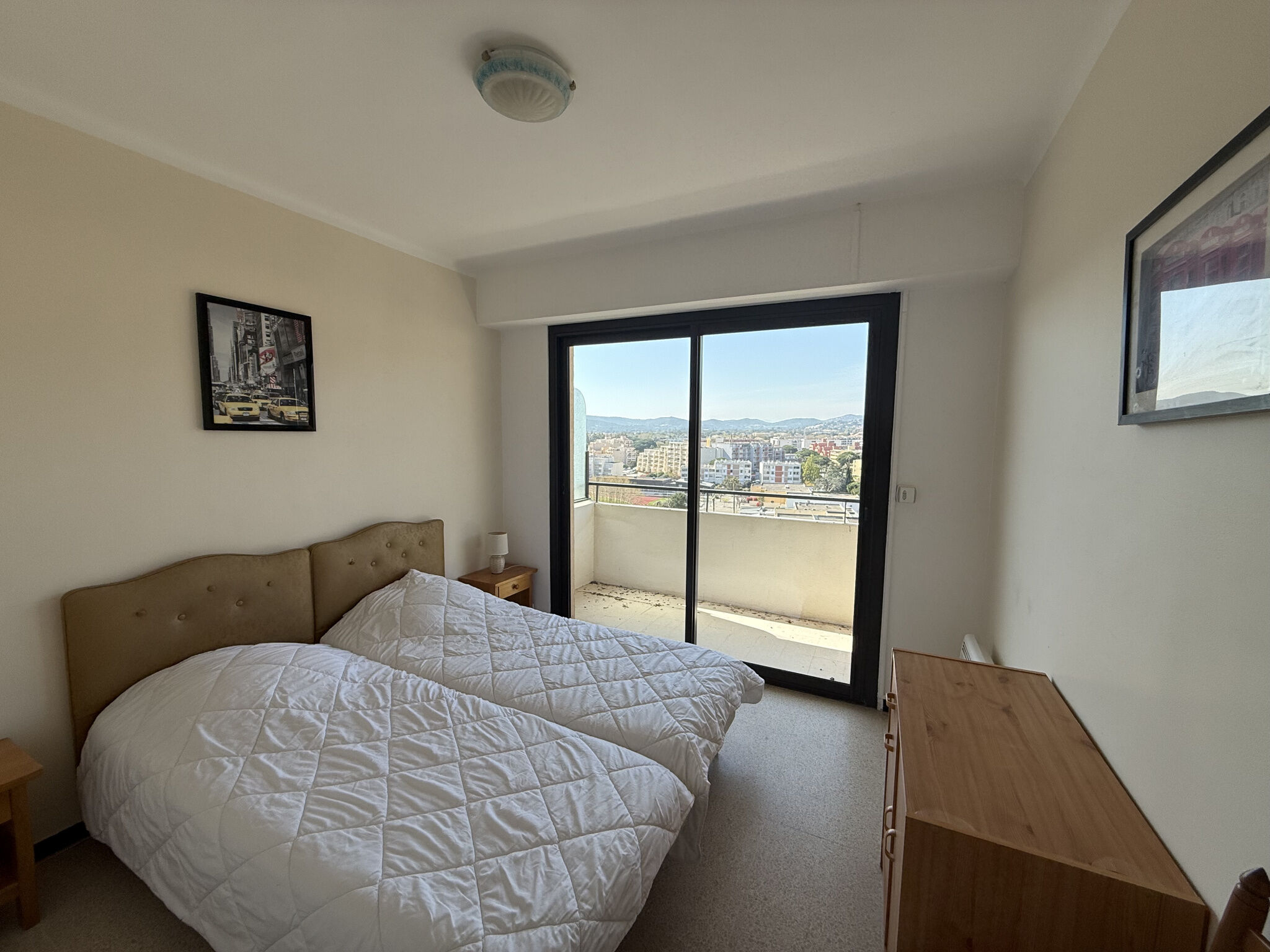 L'appartement se compose d'une grande entrée avec placard desservant une cuisine indépendante entièrement équipée, deux chambres exposées Ouest ouvrant sur un balcon avec vue dégagée sur les collines lavandouraines et borméennes, une salle d'eau, ainsi que des WC indépendants.