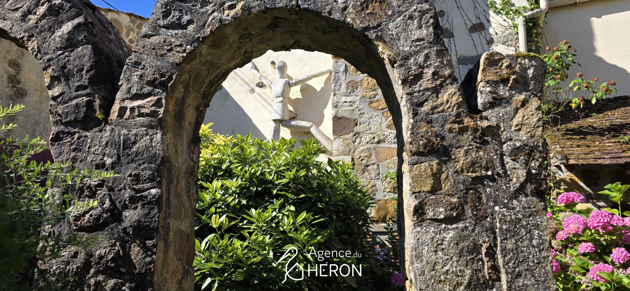 À l'arrière, un jardin arboré d'environ 470 m² vous attend, complété par une terrasse d'environ 22 m² et une piscine 3,40 x 6,30 m à rénover. Parmi ses nombreux atouts, ce bien séduit par ses beaux volumes, son rez-de-chaussée autonome, ses quatre chambres, sa cour paysagère à l'avant et son jardin arboré à l'arrière, ses multiples dépendances, les possibilités d'aménagement, sans oublier l'empreinte artistique unique laissée par son ancien occupant, qui confère à l'ensemble un véritable cachet et un fort potentiel d'aménagement. Vous l'aurez compris, cette propriété atypique regorge de potentiel et d'inspirations. Un lieu chargé de créativité, prêt à revivre à travers vos projets et votre regard. Que vous soyez en quête d'un lieu de vie singulier, d'un espace pour accueillir votre activité artistique ou d'une maison de caractère à réinventer, cette longère n'attend que vous pour écrire sa nouvelle histoire.