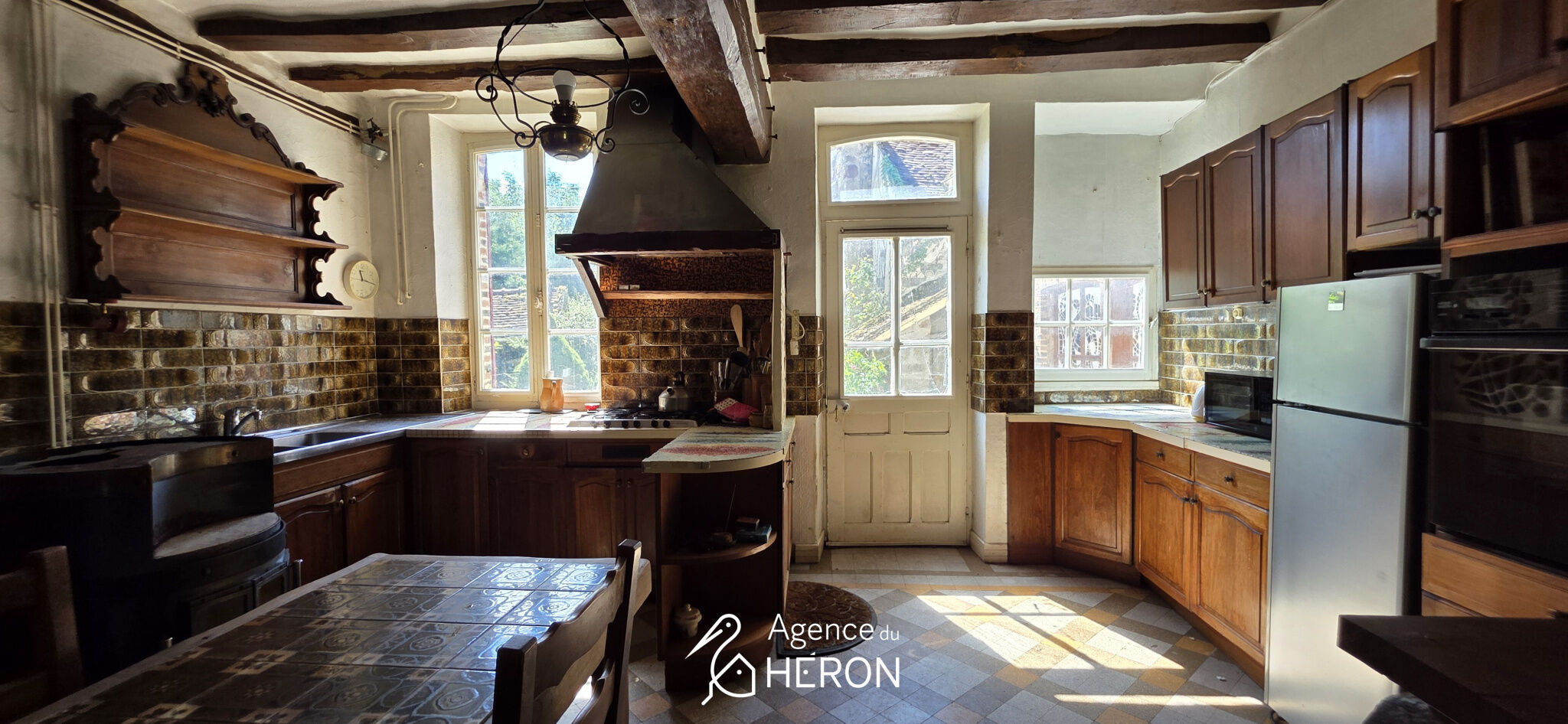 Vous serez accueilli par une cuisine d'environ 16 m² ouverte sur une salle à manger d'environ 15 m², formant un ensemble convivial d'environ 31 m². Sur la gauche, un séjour atypique d'environ 28 m² vous plongera dans une ambiance artistique avec ses sculptures bas-reliefs intégrées aux murs et son ancienne mangeoire en pierre. Il est suivi d'un coin bar d'environ 12 m² avec sa cheminée et son four à pain dans le fond. Une mezzanine d'environ 6 m² surplombe cet espace, illuminée par un jeu de vitraux de l'étage, donne accès à un premier grenier d'environ 24 m² habitables. Depuis la salle A manger, un couloir mène à une salle de bain avec WC agrémentée d'une fresque en mosaïque, puis à une chambre d'environ 18 m² ornée de sculptures murales en bas-reliefs. Vous accéderez également à la grange attenante. Un dégagement d'environ 13 m², avec sa cheminée décorative, pouvant servir de bureau ou d'espace lecture, vous mènera à l'étage.
