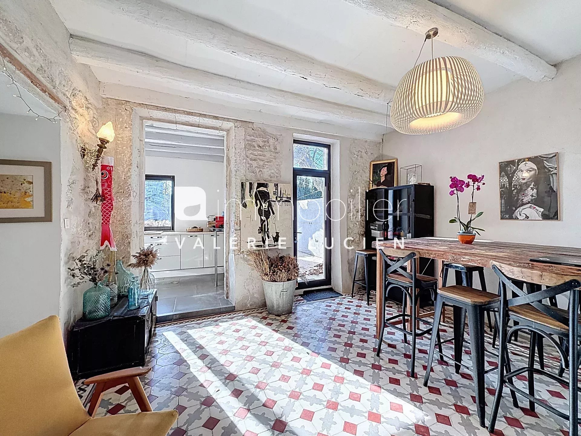 Notre agence immobilière à Saint-Rémy-de-Provence a sélectionné ce mas situé dans un environnement calme, à quelques minutes du centre-ville. Ce mas de caractère d’environ 140 m² habitables séduit par son authenticité et sa luminosité. Réparti sur deux niveaux, complété par une troisième chambre sous les toits, il bénéficie d’une double exposition et de grandes ouvertures offrant une belle lumière naturelle tout au long de la journée. Les murs en pierre, les carreaux de ciment anciens et le superbe escalier d’origine donnent à l’ensemble une atmosphère chaleureuse et pleine de charme. L’organisation intérieure propose, au premier étage, deux chambres, dont une suite avec sa salle d’eau, ainsi qu’une salle de bains indépendante. Au deuxième étage, une troisième chambre mansardée, intime et pleine de caractère. Un bureau indépendant complète les espaces, permettant d’envisager confortablement le télétravail ou une activité annexe. À l’extérieur, le terrain de 1 258 m² se compose d’un jardin arboré, d’une piscine et d’une cour ombragée par un grand platane, espace privilégié pour les moments de détente aux beaux jours. Un mas de charme, alliant authenticité provençale et calme. Maison à vendre à Saint-Rémy-de-Provence