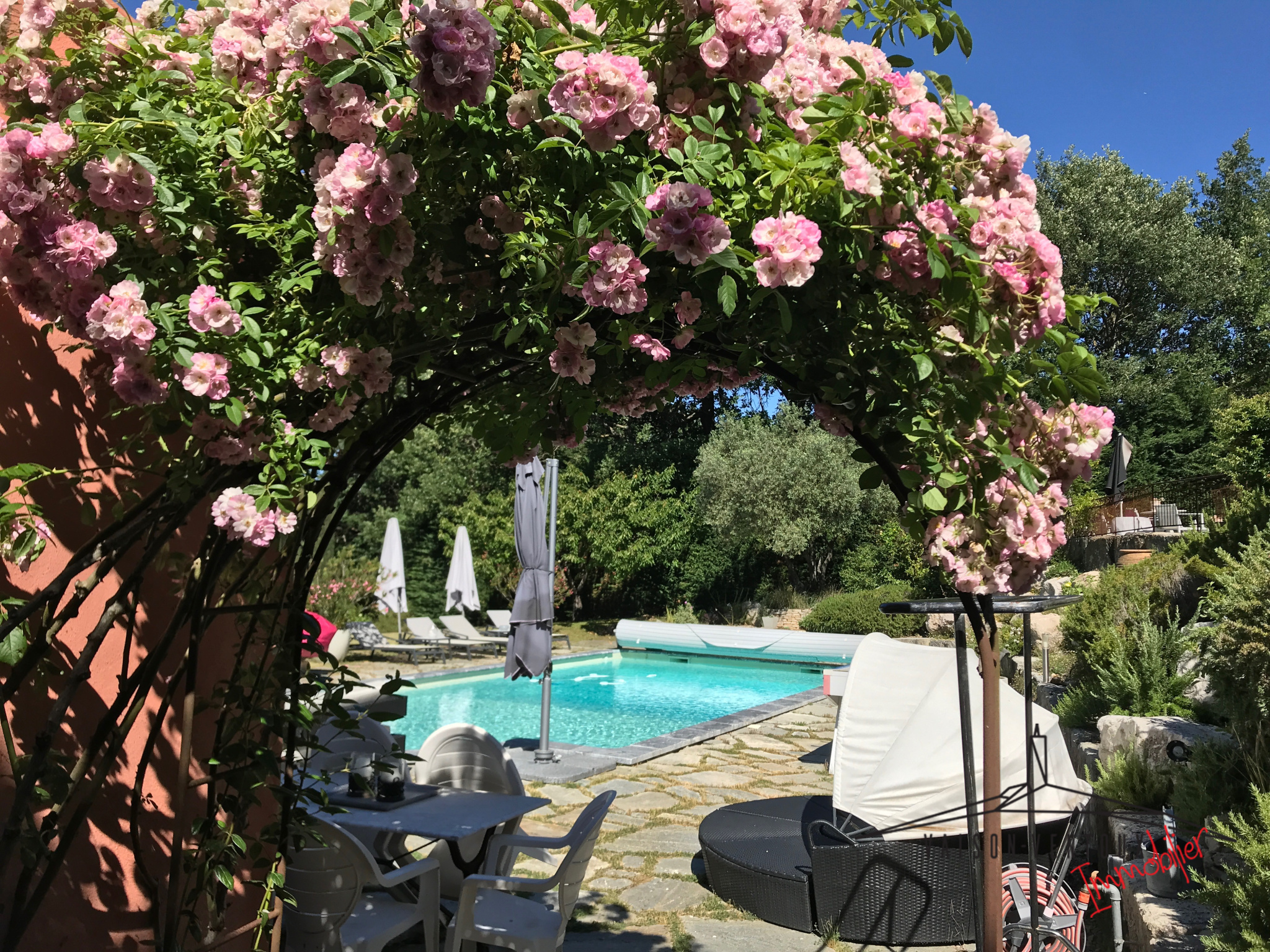 La grande piscine 11 x 5 m, bénéficie d'une vue remarquable sur les villages provençaux et les reliefs vallonnés environnants.