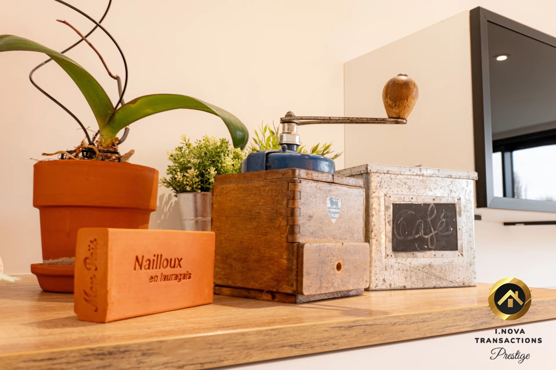 Une arrière-cuisine, discrètement intégrée, vient parfaire l’organisation et apporte un confort appréciable au quotidien.