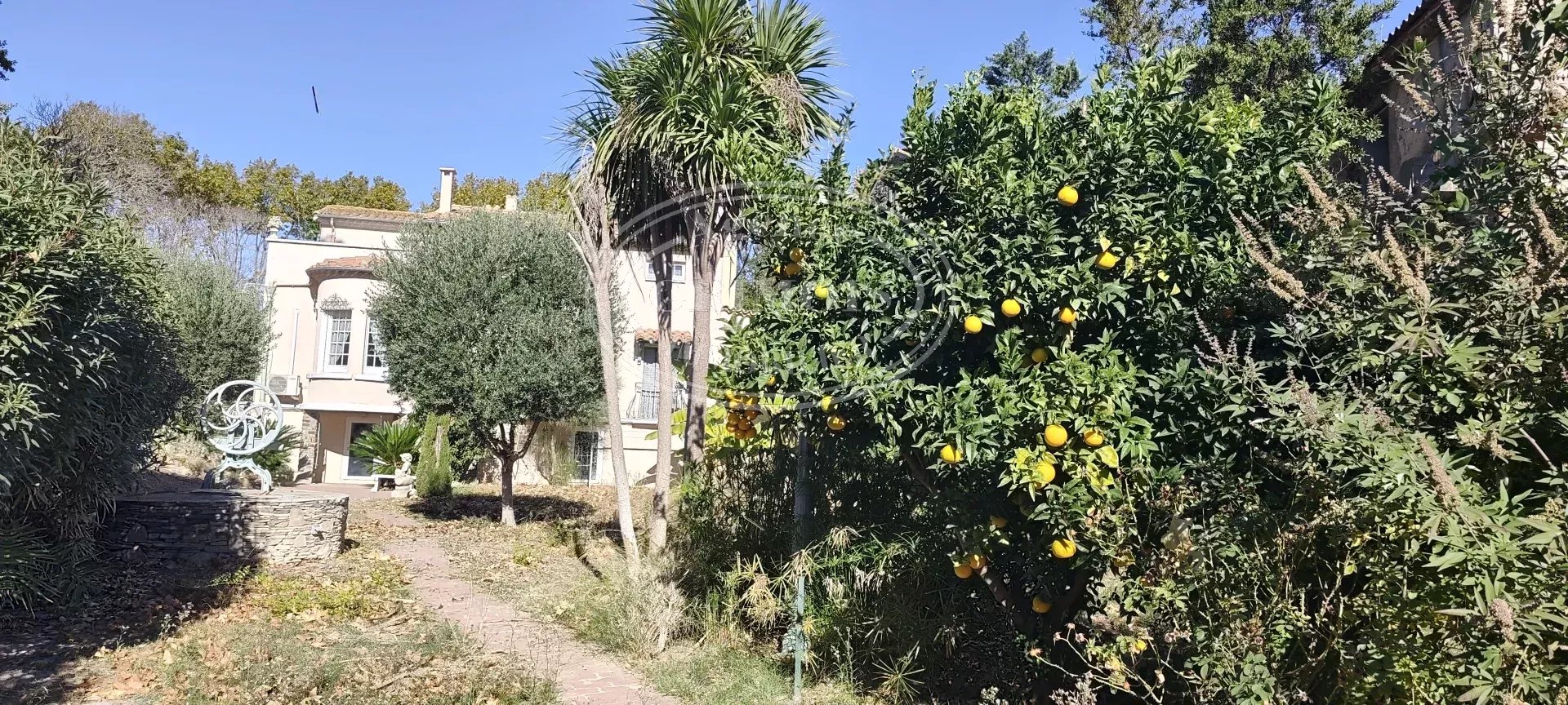- Séjour de 50 m² avec cheminée fonctionnelle et climatisation - Cuisine de 13 m² équipée et aménagée - Couloir de 4,83 m² desservant un WC de 1,50 m² avec une fenêtre - Deux chambres dont une de 10 m² avec placard et l'autre de 12,60 m² avec vue sur le jardin - Salle de bains de 7 m² avec une baignoire, une vasque et une fenêtre - APPARTEMENT de 50 m² avec séjour de 14 m² avec climatisation - Salon de 18 m² avec cheminée - Deux pièces de 8,10 m² et 8,15 m² chacune - Salle d'eau de 2,80 m² - Cuisine indépendante de 9 m² avec accès direct sur la terrasse de 18 m² avec vue imprenable sur le canal du midi SOUS-SOL de 1,85 m² de hauteur avec : pièce de 18 m² pour buanderie / douche de 2,95 m² / deux pièces de 12 et 23 m² chacune / atelier de 21 m² GARAGE de 35 m² avec porte électrique ATOUTS: Villa pleine de charme le long du canal du midi / Village touristique et agréable / à 17 km de NARBONNE / Terrain avec 3 puits / Terrain piscinable, clôturé et arboré / toiture et gouttières nettoyées et entretenues / Possibilité de revenus locatifs avec le studio / double vitrage partout et volets électriques partiels / Des travaux de rénovations sont à prévoir mais gros potentiel par son emplacement idyllique. Consommation conventionnelle : 206 kWh ep/m2.an (Classe D ) Estimation des émissions : 47 kg eqCO2/m2.an (Classe D) Estimation des coûts annuels : entre 2300 € et 3170€ par an, prix moyens des énergies indexés au 1er janvier 2021. CONTACT : VIRGINIE : 06.66.67.18.39 ou FABIEN : 06.13.13.61.75 La présente annonce immobilière a été rédigée sous la responsabilité de Virginie LAGNEAU , agent commercial en immobilier au sein de l'agence GRIMOIS IMMOBILIER en EI, immatriculé au Registre Spécial des Agents Commerciaux du Tribunal de Commerce de Narbonne , sous le n° 853 379 626 . Les honoraires sont à la charge du vendeur .