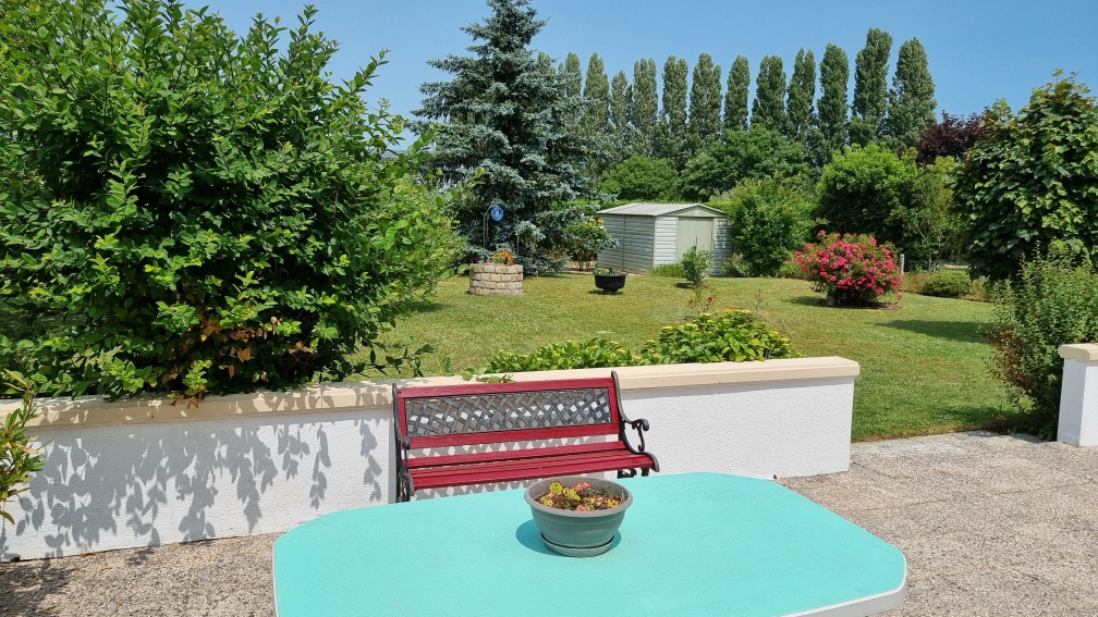 Le jardin est arboré et dispose de deux cabanes de jardin et d'un abri à bois.