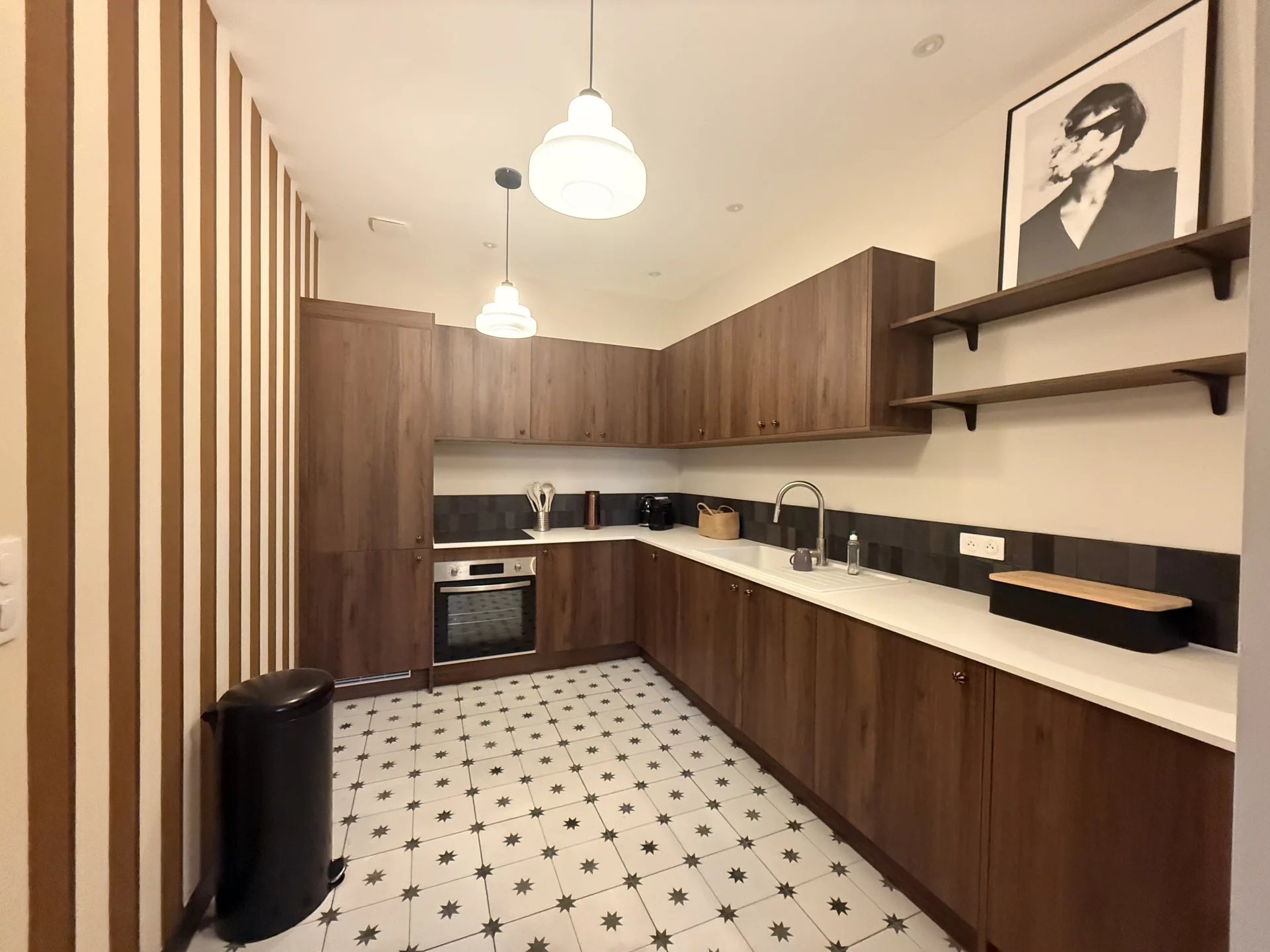 L'espace de vie se distingue par son style moderne, avec un salon spacieux et une salle à manger attenante, idéale pour les réceptions. La cuisine bien équipée offre un design contemporain avec de nombreux rangements. Chaque pièce a été pensée pour maximiser l'espace et le confort, faisant de cet appartement un lieu de vie idéal pour un couple ou une petite famille.