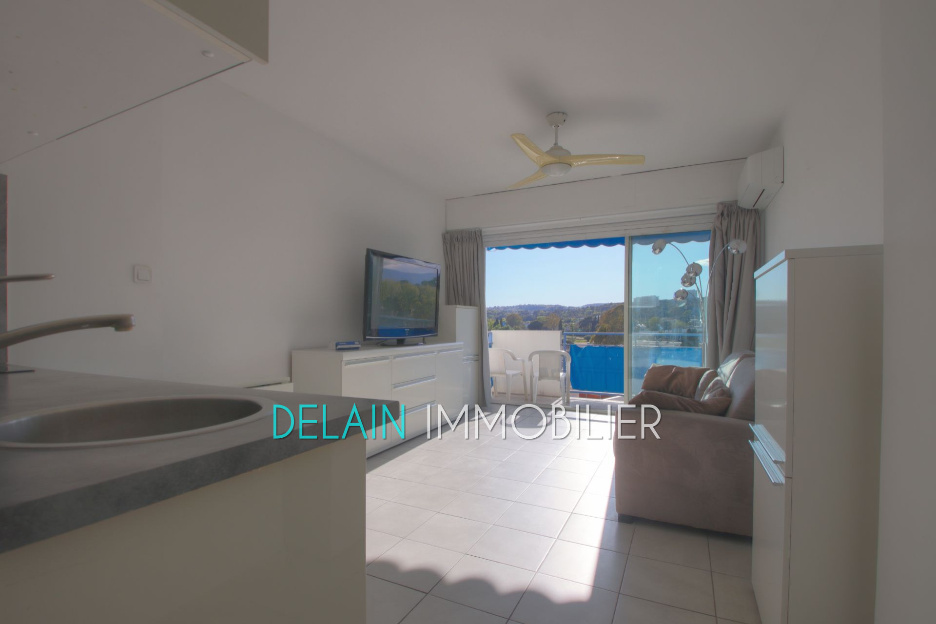 CAGNES SUR MER. Face à l'hippodrome en étage élevé, joli studio traversant s'ouvrant au Sud-Ouest sur une terrasse profonde, il est entièrement équipé et constitue un investissement idéal. La plage est à 200m, les commerces à proximité immédiate. Une belle cave et un parking privatif complètent ce bien.