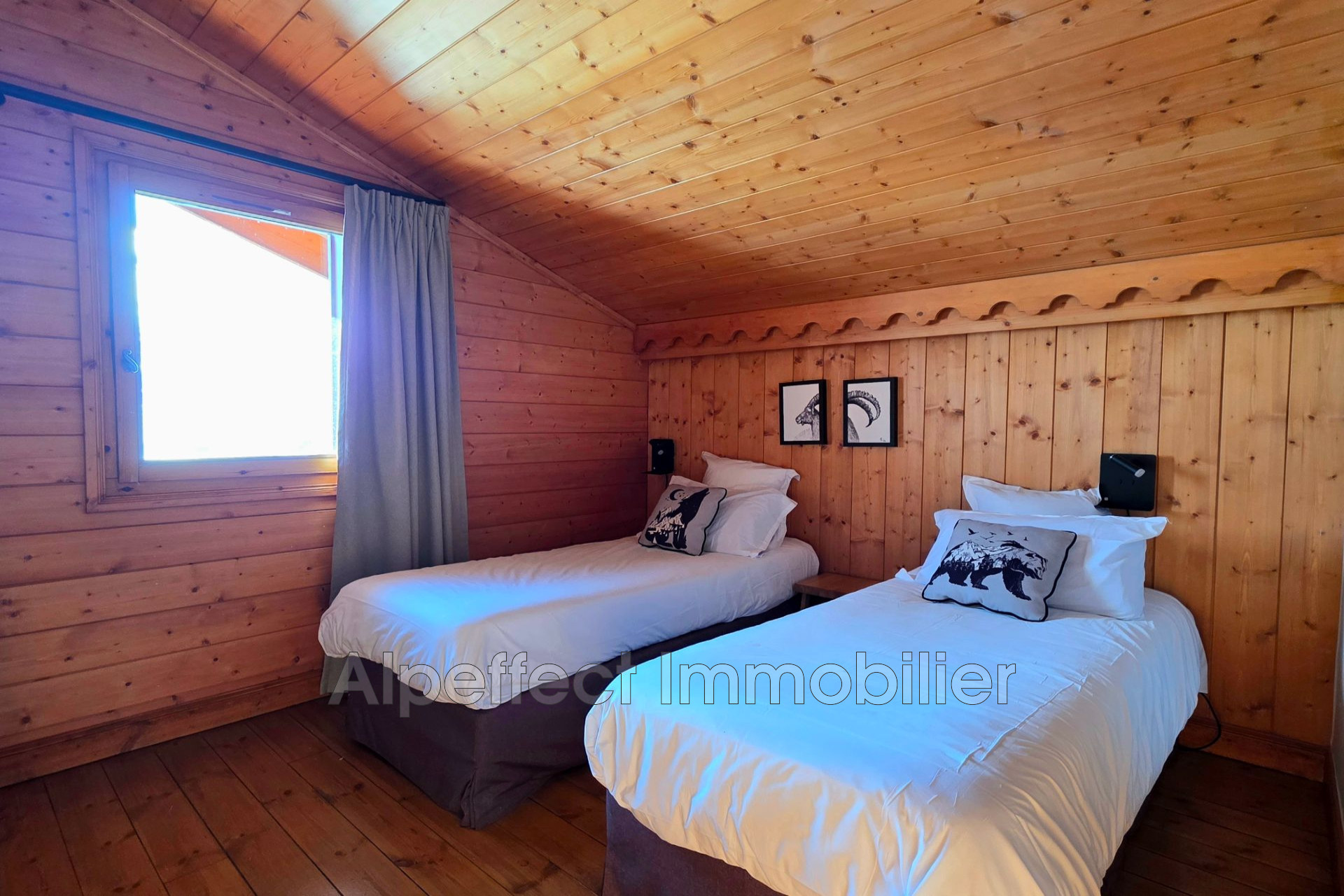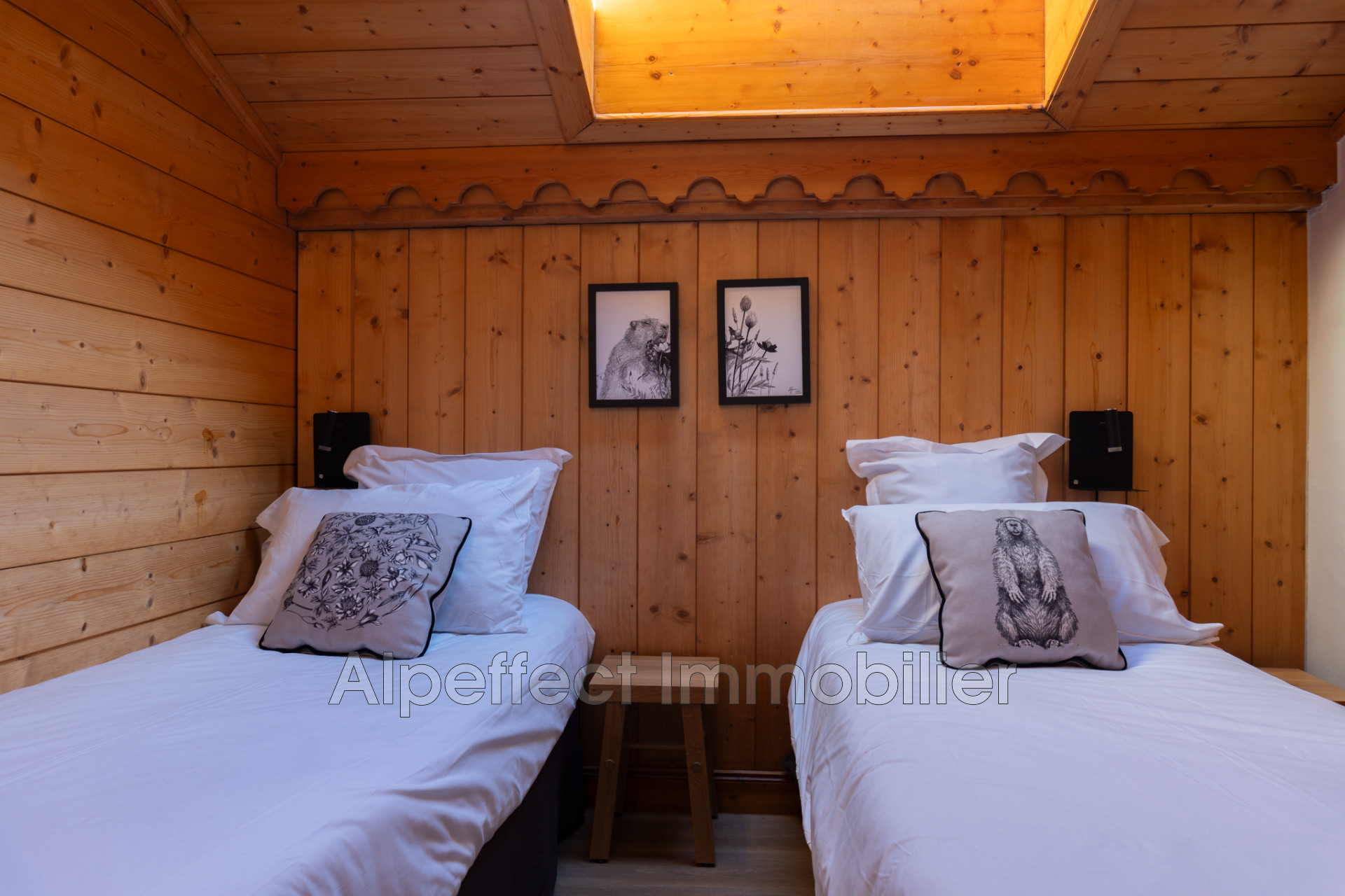 La configuration en duplex apporte de beaux volumes et une véritable sensation de chalet en altitude.