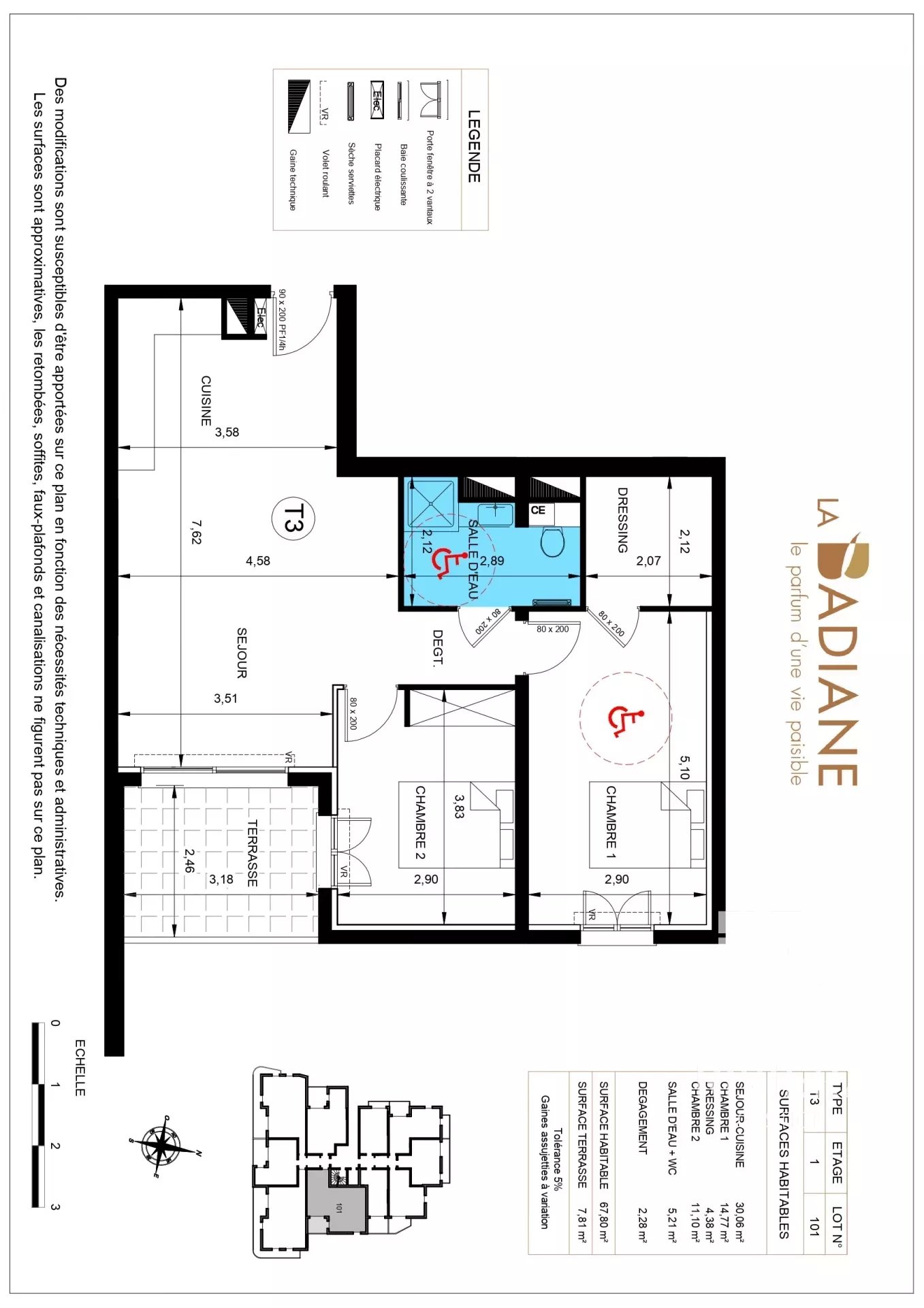 Coup de cœur assuré, À proximité du centre-ville, dans la belle résidence "LA BADIANE" entourée de verdure et bénéficiant d'une jolie vue sur la campagne de VENCE, appartement Type 3, au 1ᵉʳ étage avec cuisine équipée, ascenseur, terrasse et place de parking. Loyer hors charges : 989.48€ Provisions sur charges : 100€ charges.