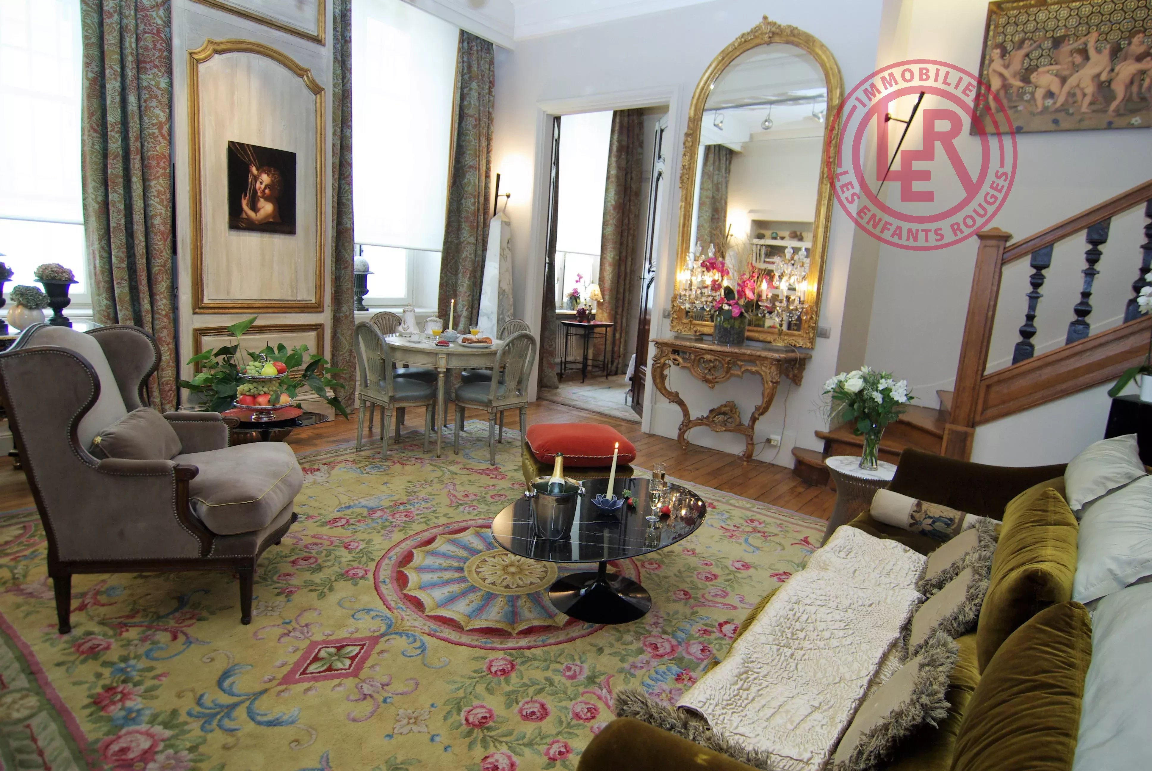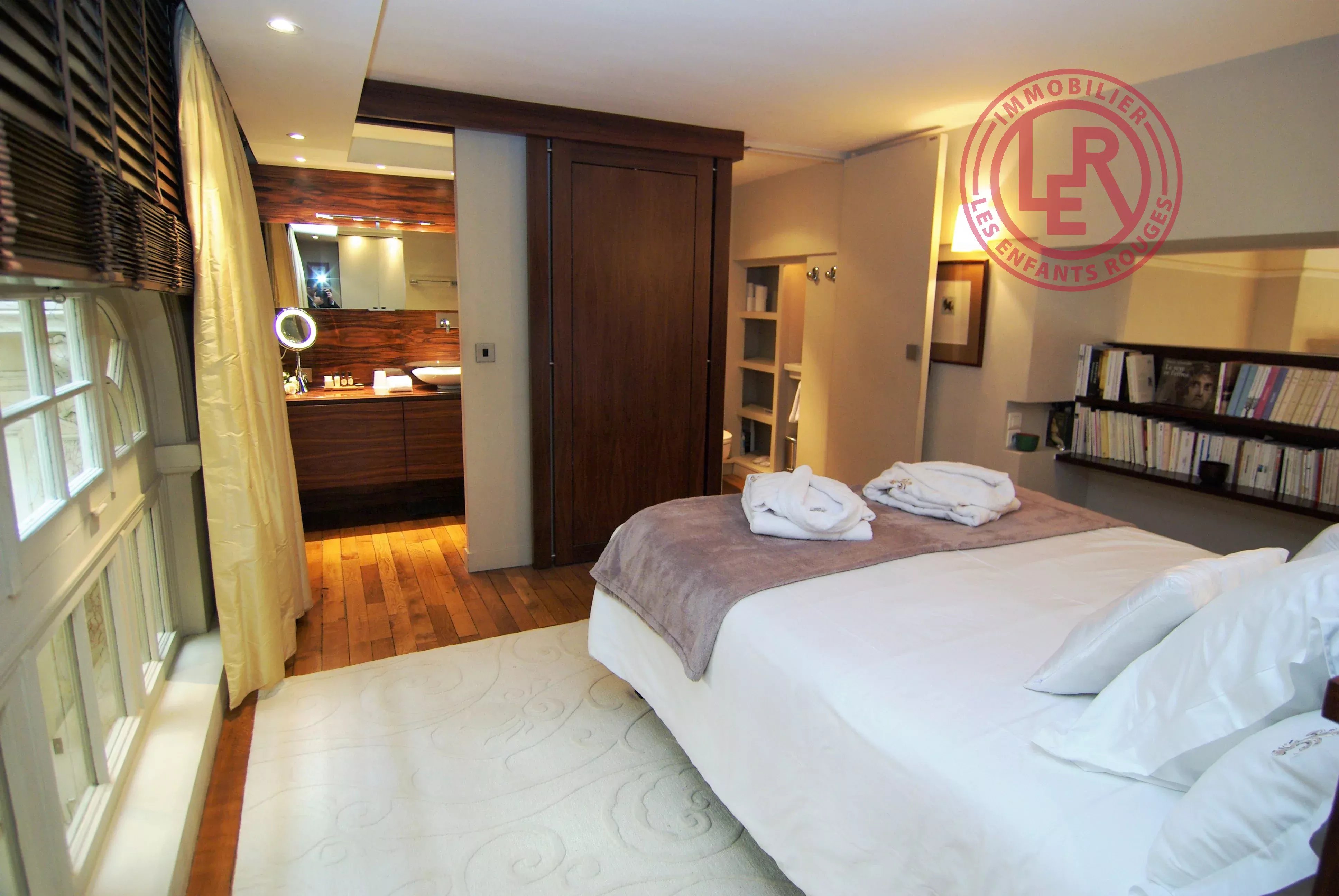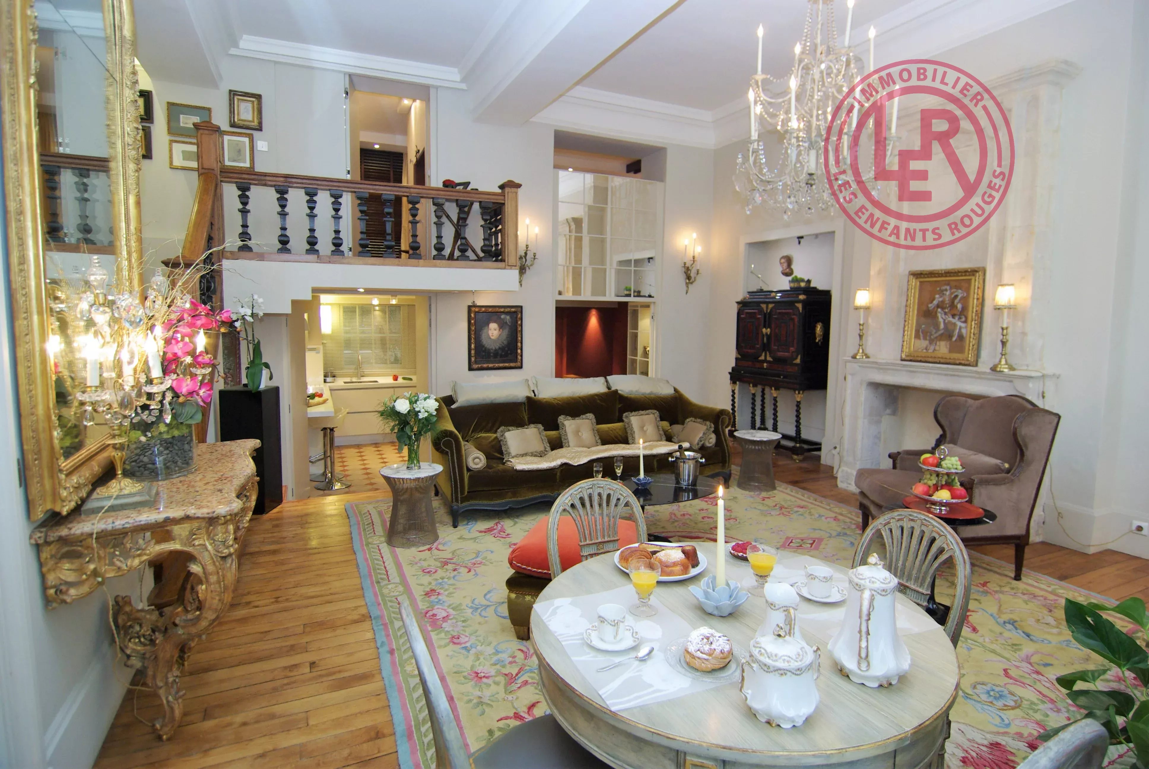 Au cœur du Marais Historique dans une copropriété très bien entretenue, construite au 16e siècle, au RDC appartement de prestige de 117 m2 habitable et 111,93M2(loi Carrez) composé d’une entrée spacieuse, d’une pièce de réception d’une hauteur sous plafond impressionnante de 4m, avec cheminée monumentale, d’une cuisine séparée, d’une chambre avec sa pièce d’eau, son espace télétravail et en mezzanine d’une seconde chambre avec une salle d’eau et 2 toilettes séparées Prestations: de multiples aménagements/rangements sur mesure, plan optimisé, environnement calme et privilégié au cœur du quartier très recherche de la Place des Vosges Rare ! Les informations sur les risques auxquels ce bien est exposé sont disponibles sur le site Géorisques : www.georisques.gouv.fr Agent commercial immatriculée au Registre spécial des agents commerciaux du greffe du tribunal de commerce de PARIS, sous le numéro 483 083 077