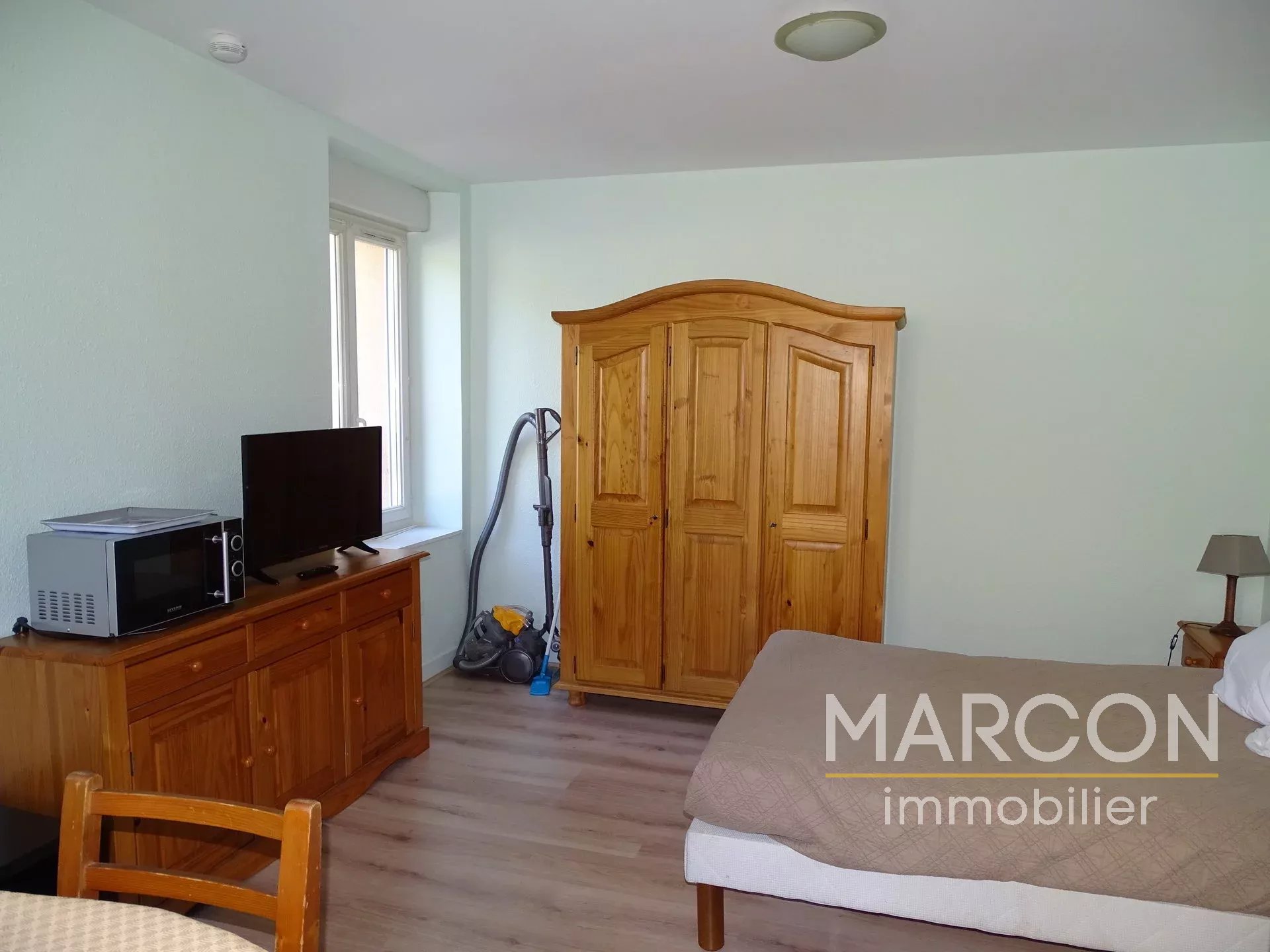 MARCON Immobilier GUERET. Creuse en Limousin, Nouvelle-Aquitaine - Réf 1117 - GUERET centre, votre agence MARCON immobilier vous propose à la location ce studio meublé de 22 m² au 1er étage comprenant séjour/kitchenette et salle d'eau/WC. Chauffage électrique. Une place dans parking privé sécurisé. Libre le 15/02/2026.
