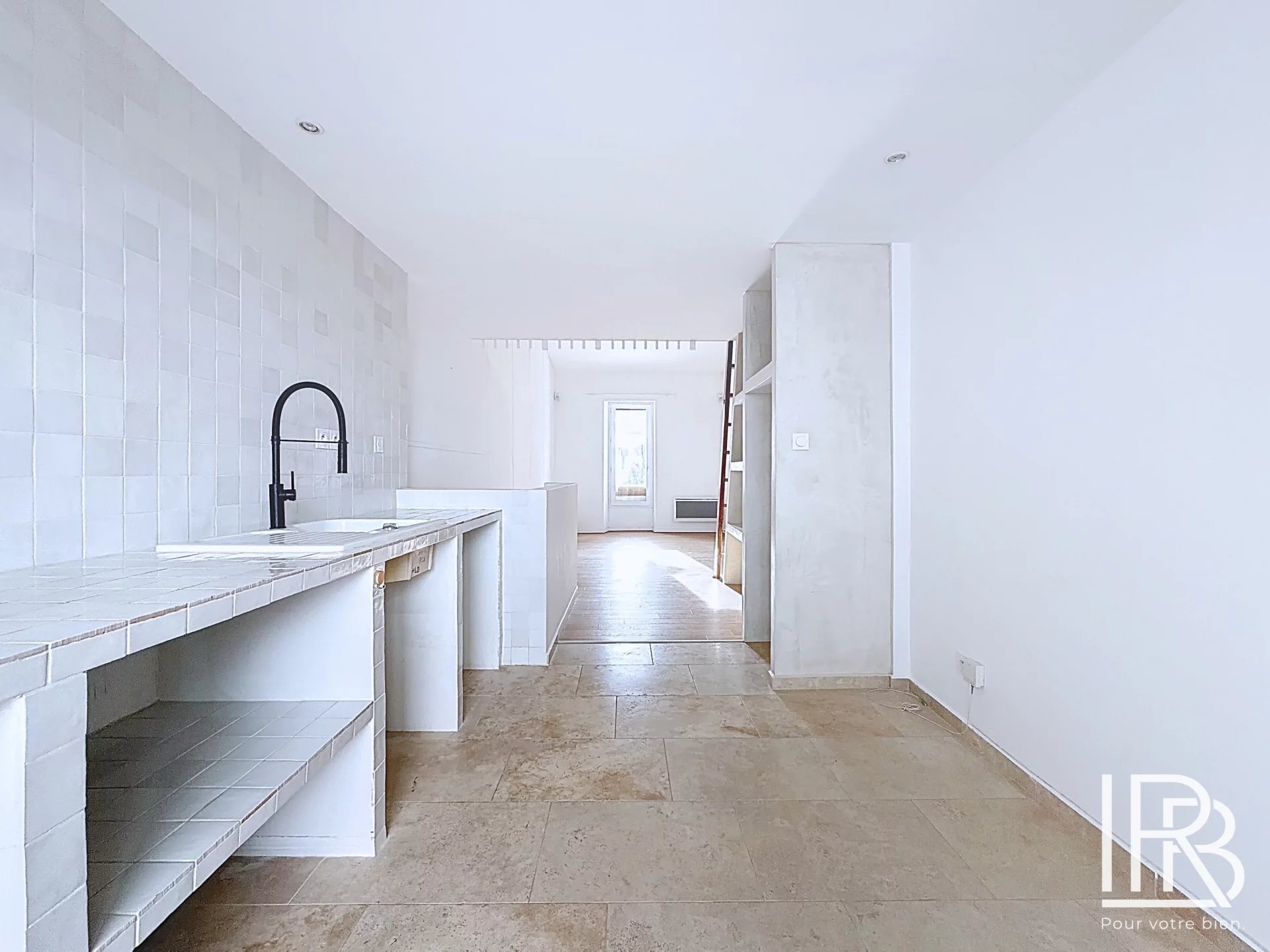 Entièrement rénovée avec goût, la maison met en valeur de beaux matériaux tels que le béton ciré, le travertin et le zellige, conférant à l’ensemble une atmosphère contemporaine et raffinée.