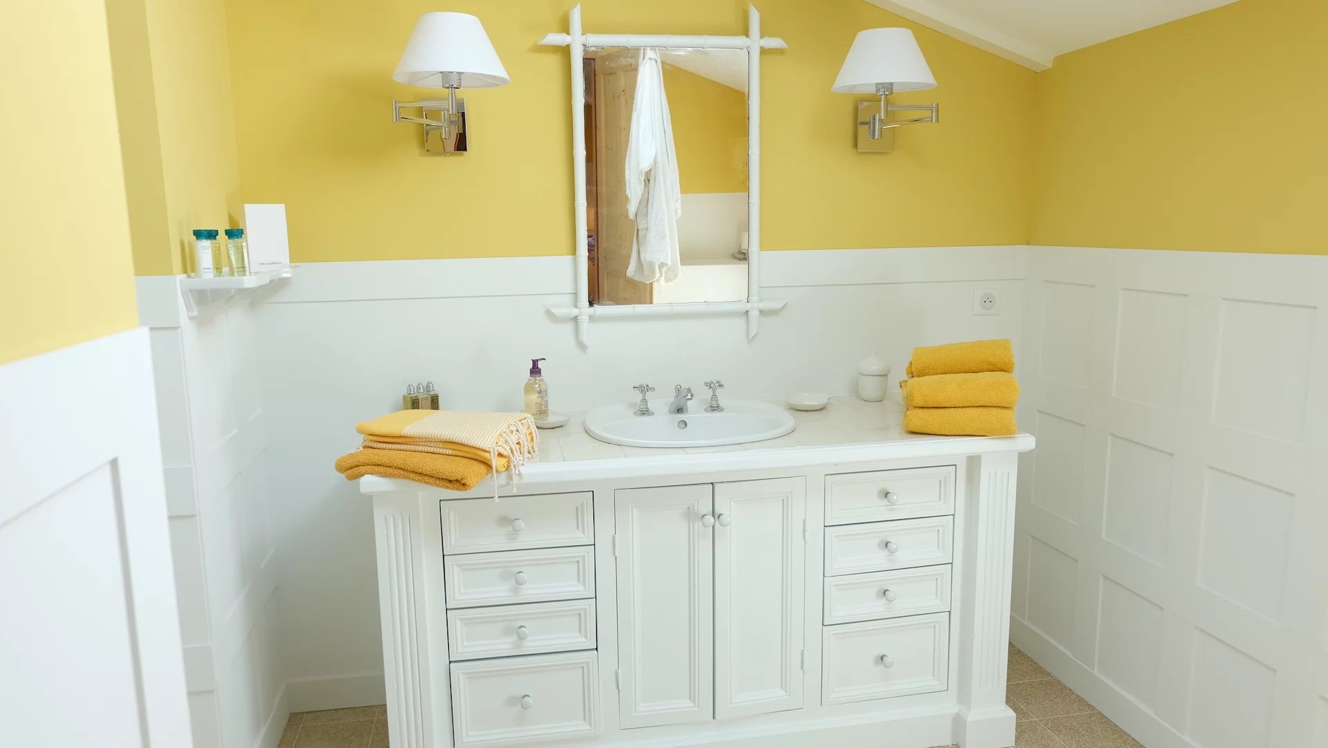 Chambre (4) : 2 lits simples 90 réunis ou séparés, salle de bains (baignoire – wc)