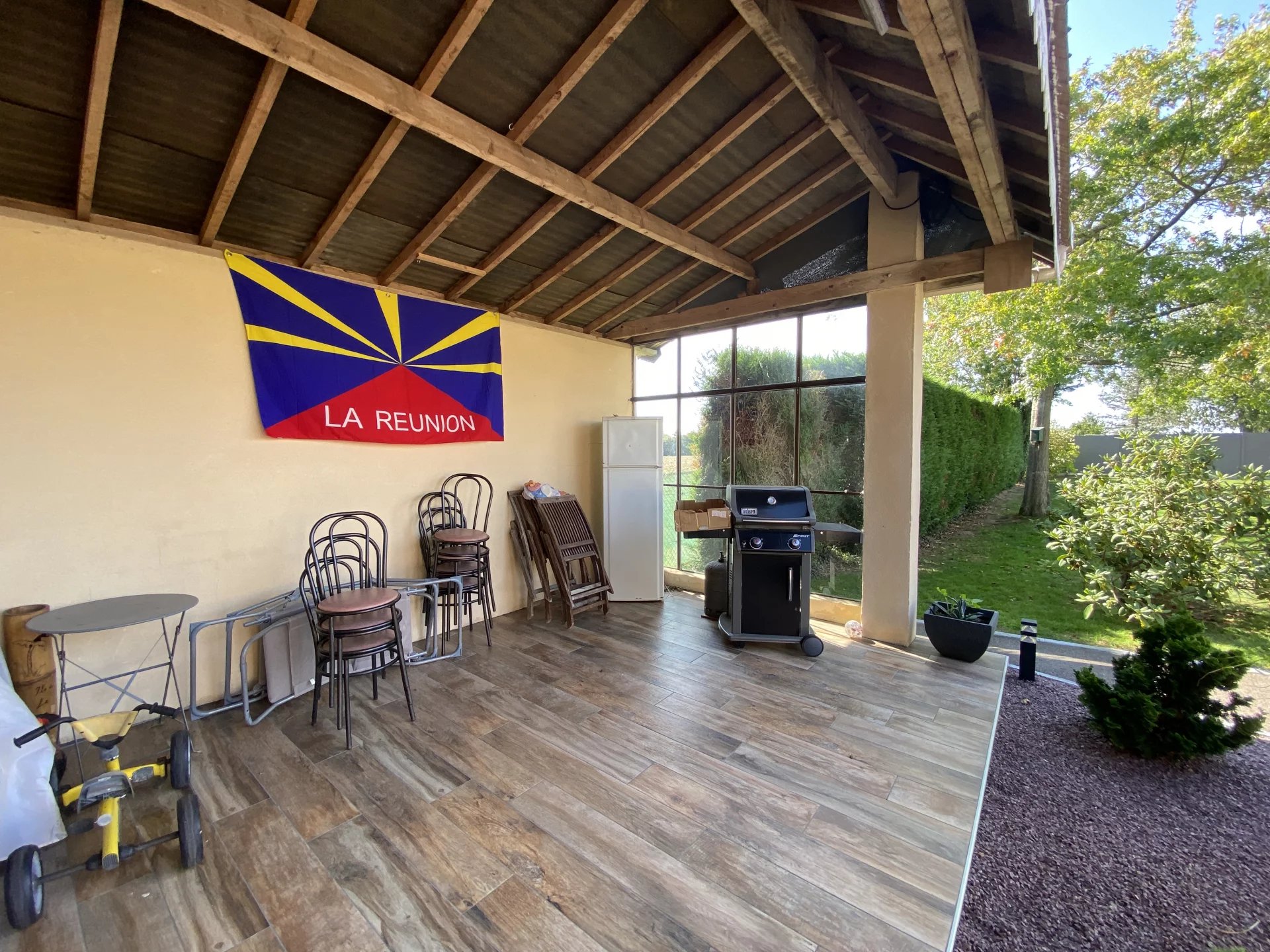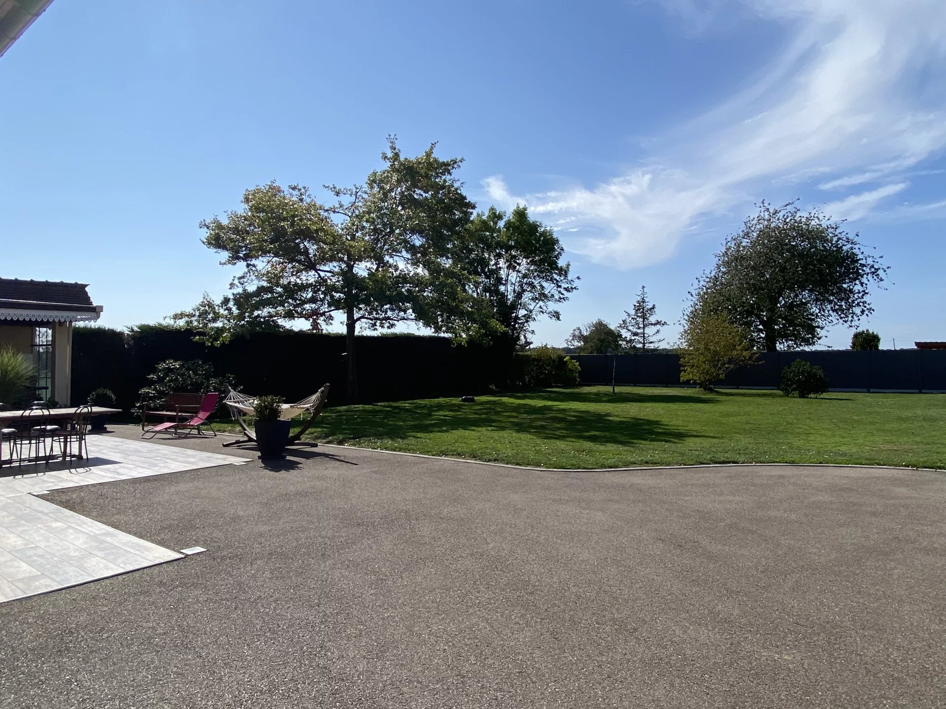 Cette maison dispose d'un jardin arboré et clos d'environ 1700 m² avec une terrasse et un préau (espace barbecue), d’un grand garage (60 m²) avec cellier et grenier, d’une dépendance facilement aménageable en bureau.
