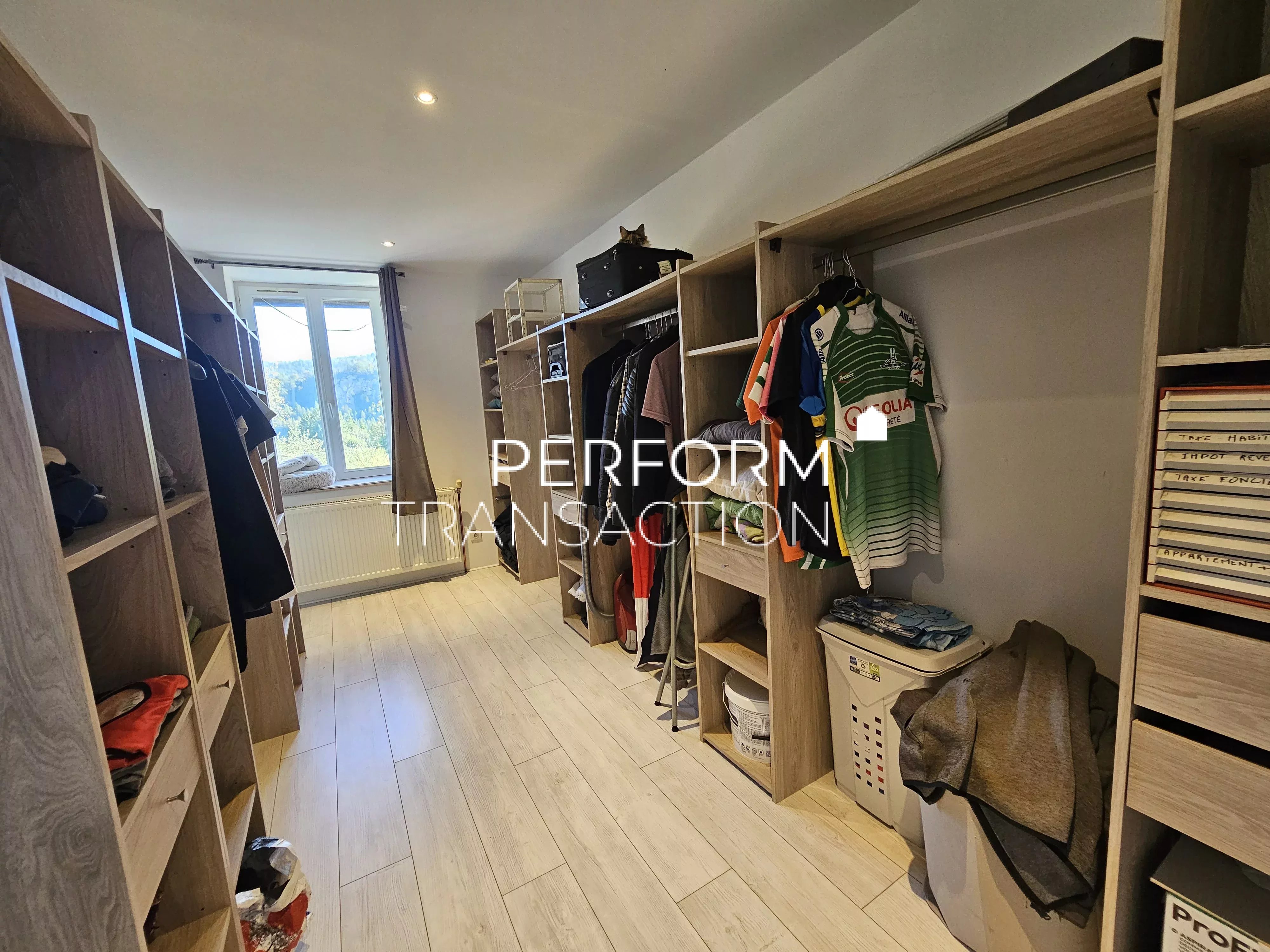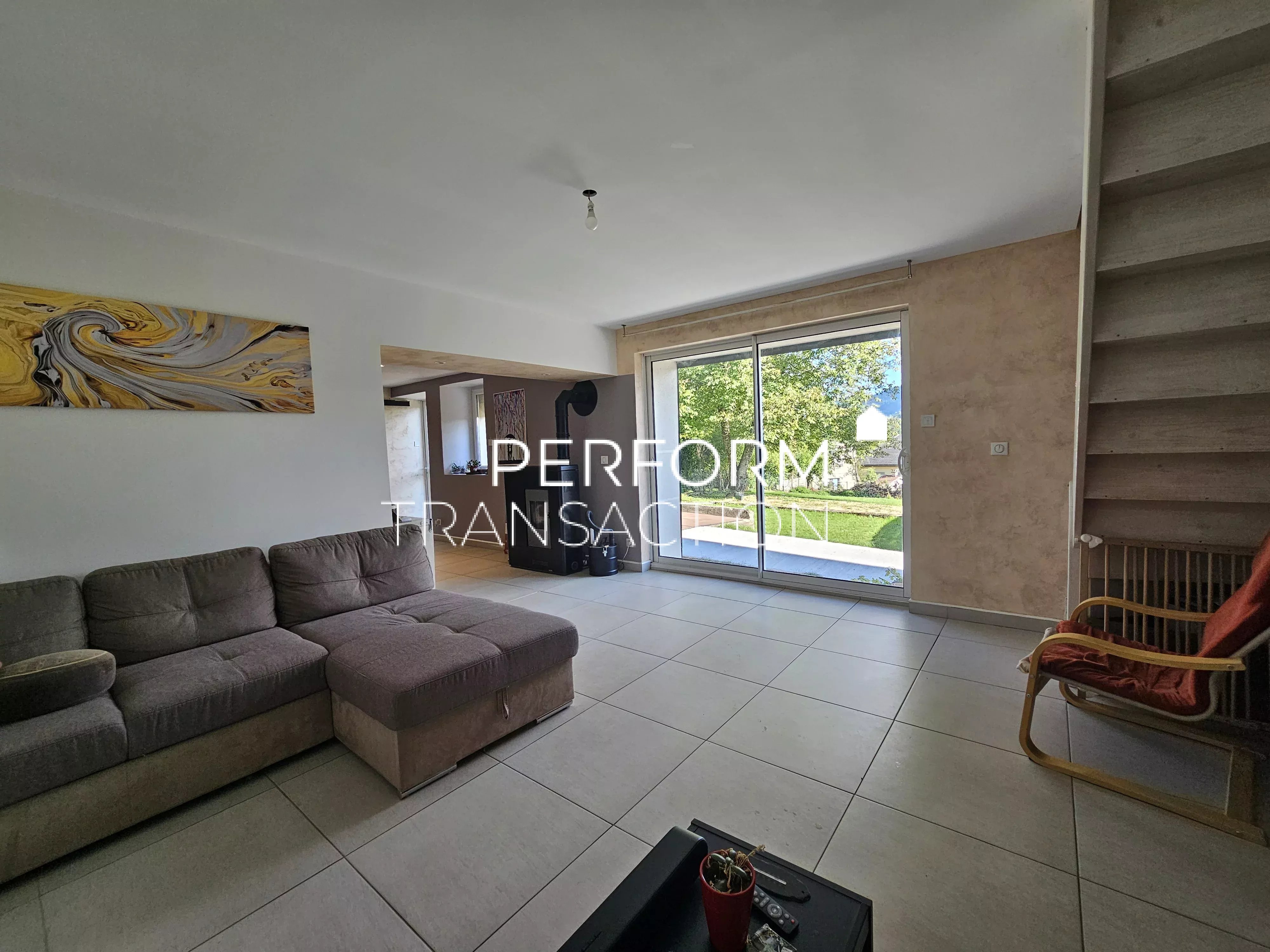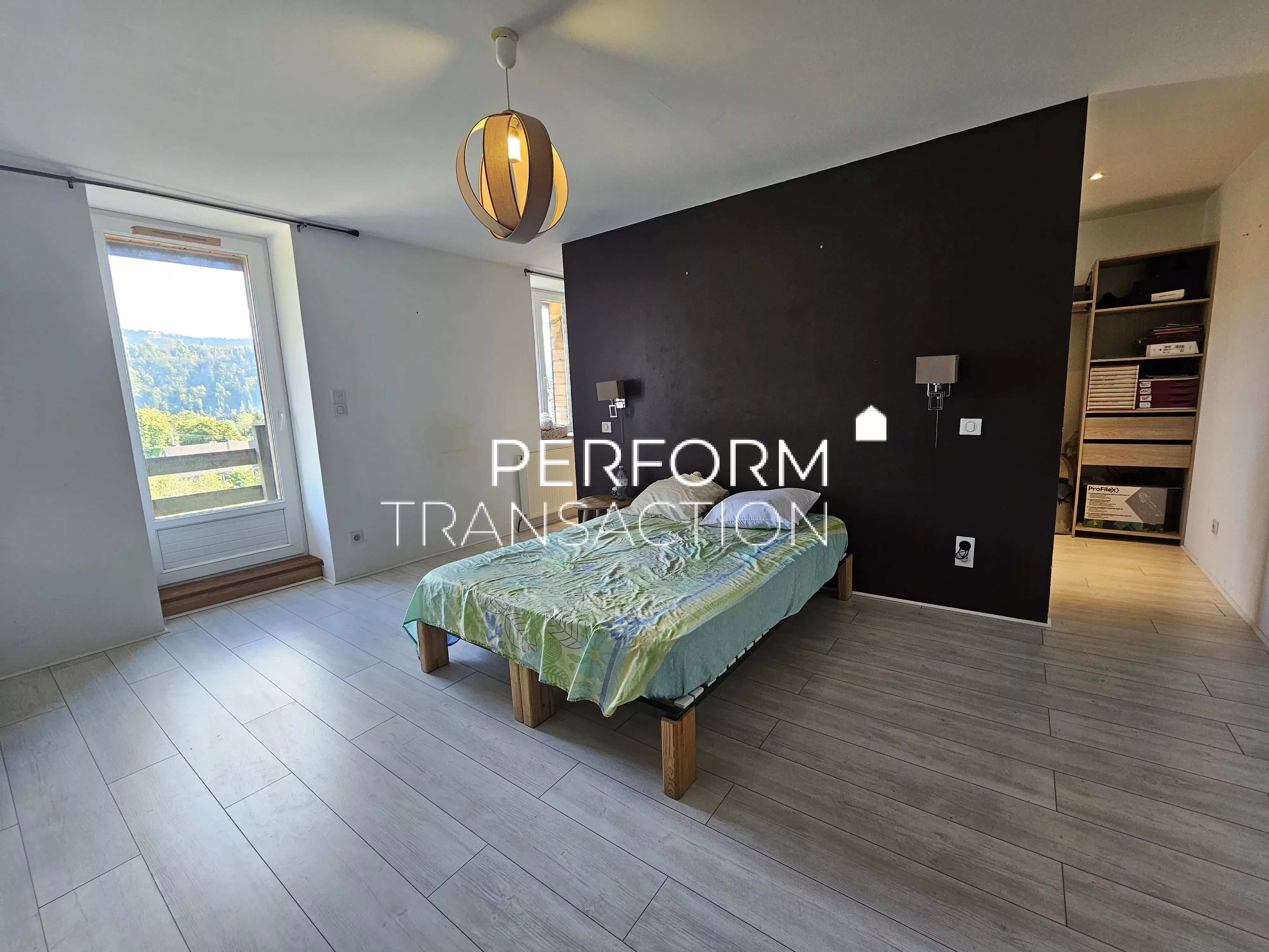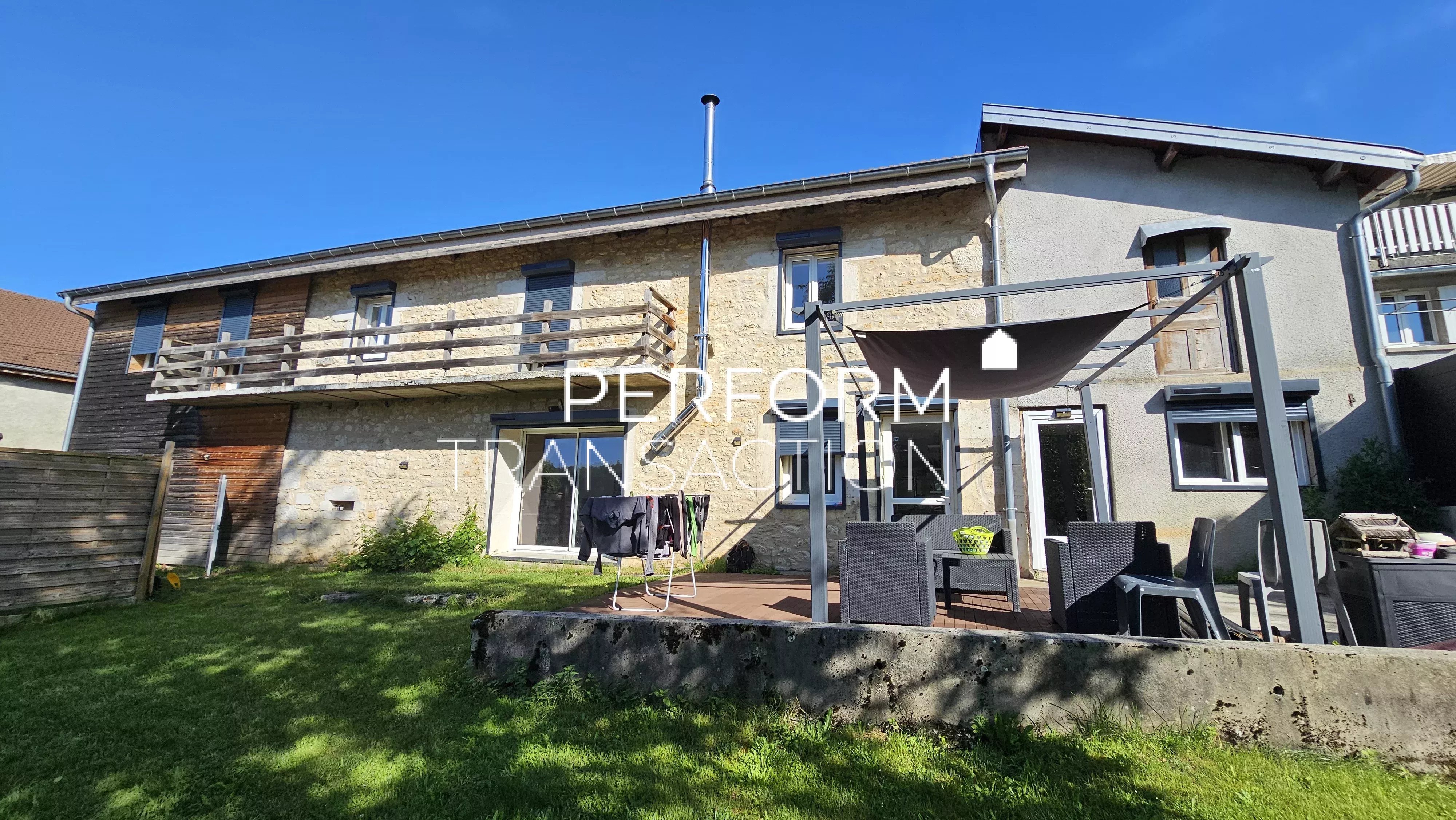 VIRY (39 Jura) Belle maison au coeur d'un village Jurassien à 10 minutes d'Oyonnax. Vous profiterez d'un beau terrain clos et arboré sur une parcelle de 639 m² avec une belle vue dégagée. Au rez-de-chaussée, vous serez accueilli par une belle entrée, un wc, et une buanderie, une cuisine équipée (17.50m²) semi ouverte sur le salon-séjour (28m²) lumineux et son poêle à granulés. Niveau supérieur, un hall desservant 3 chambres (11.69, 18 et 30m²) dont une avec son dressing. 2 chambres avec accès sur le balcon. Une salle de bains / wc de 9m². Un garage de 28m² complète ce bien. Menuiseries PVC double vitrage, volets roulants solaires. Refection de la toiture en 2020. Tout à l'égout Possibilité d'extension pour une 4ème chambre et combles aménageables. Tout à l'égout Perform'Transaction, Karine MILLET +7 87 39 41 51