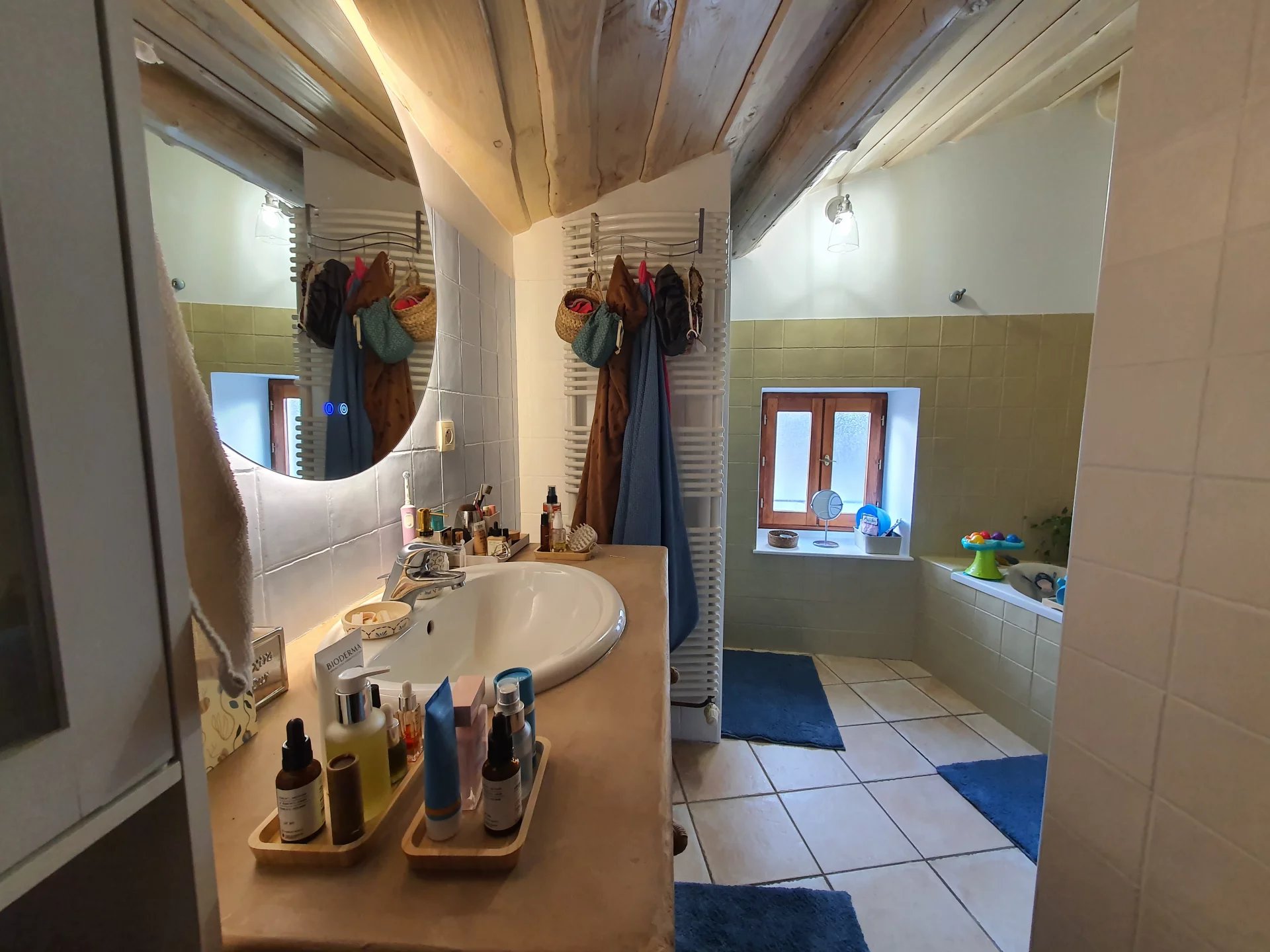 * Un second logement indépendant complète l’ensemble, comprenant un séjour-cuisine avec balcon, deux chambres, une salle d’eau et des toilettes, offrant de multiples possibilités : accueil familial, location ou activité professionnelle.