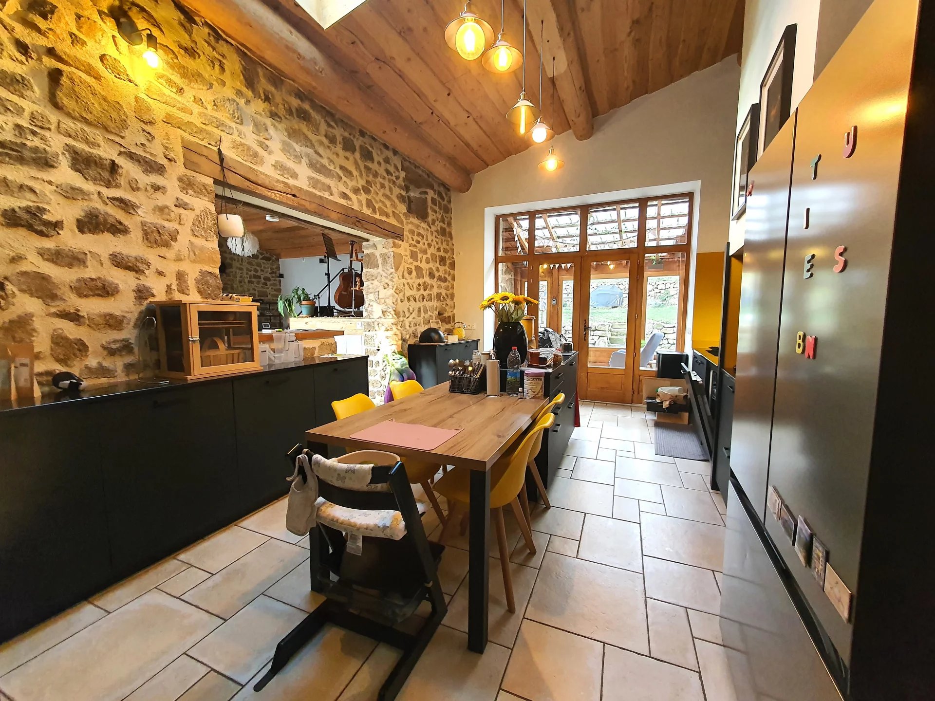VERANNE, MAISON AVEC DOUBLE HABITATION et rentabilité LOCATIVE : à 30 minutes de Vienne, authentique corps de ferme dans un petit hameau du Parc Naturel Régional du Pilat. Cette belle propriété d’environ 200 m² habitables, a été entièrement rénovée en 2000 puis en 2024, et se compose de 2 habitations indépendantes.