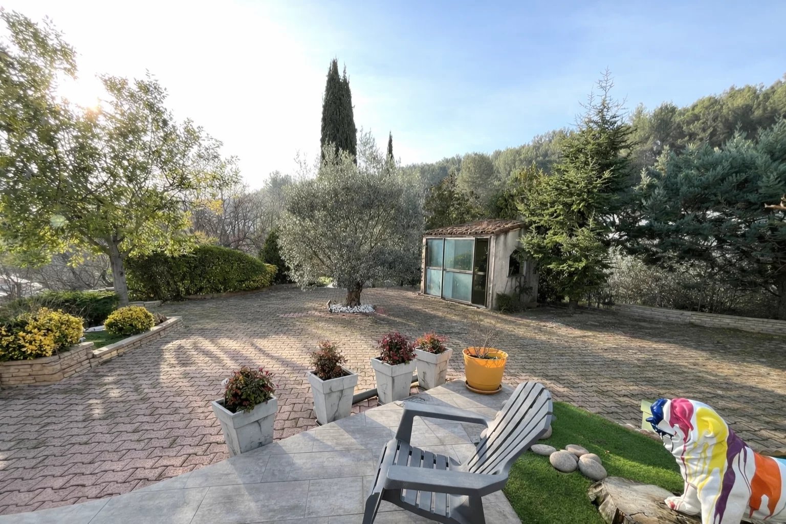 Les extérieurs, soigneusement aménagés, offrent :