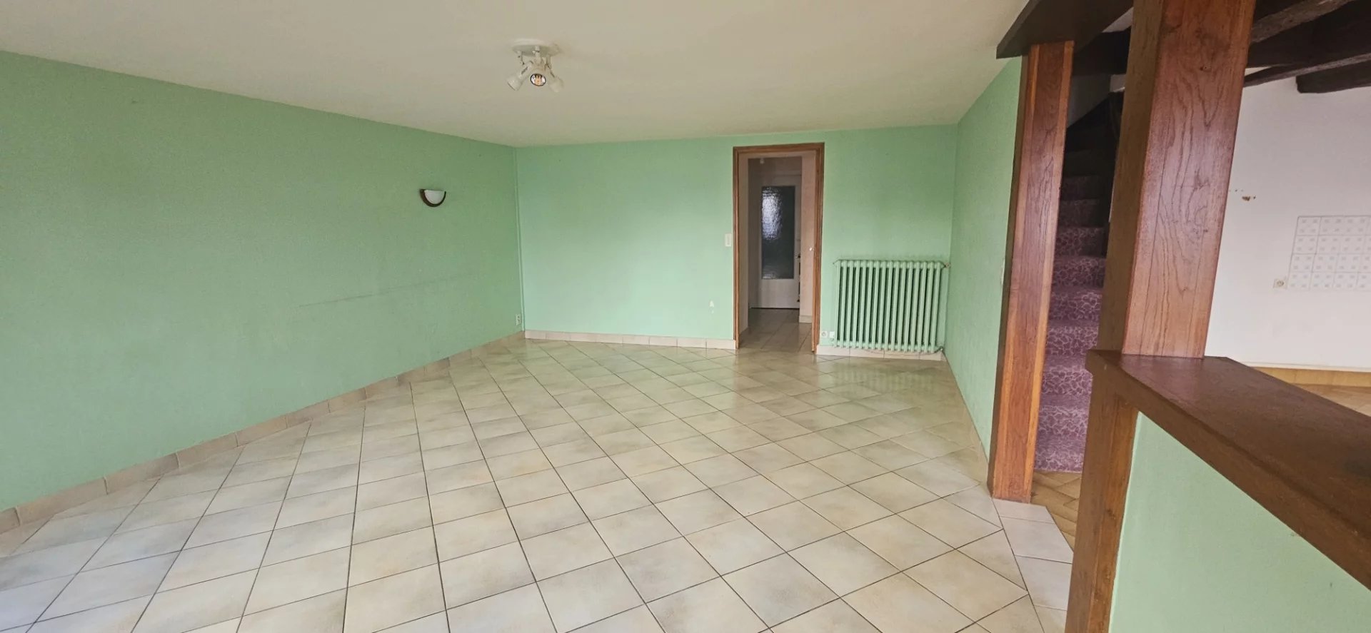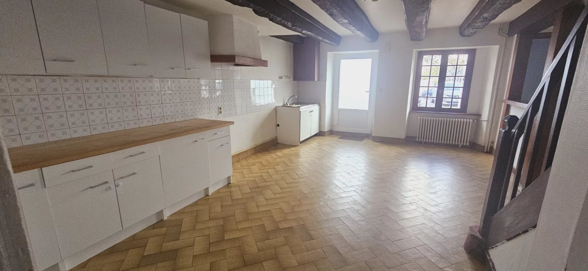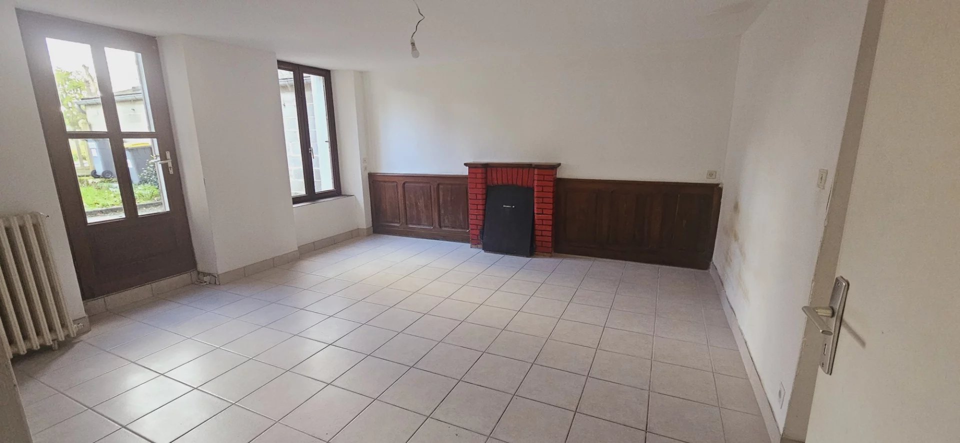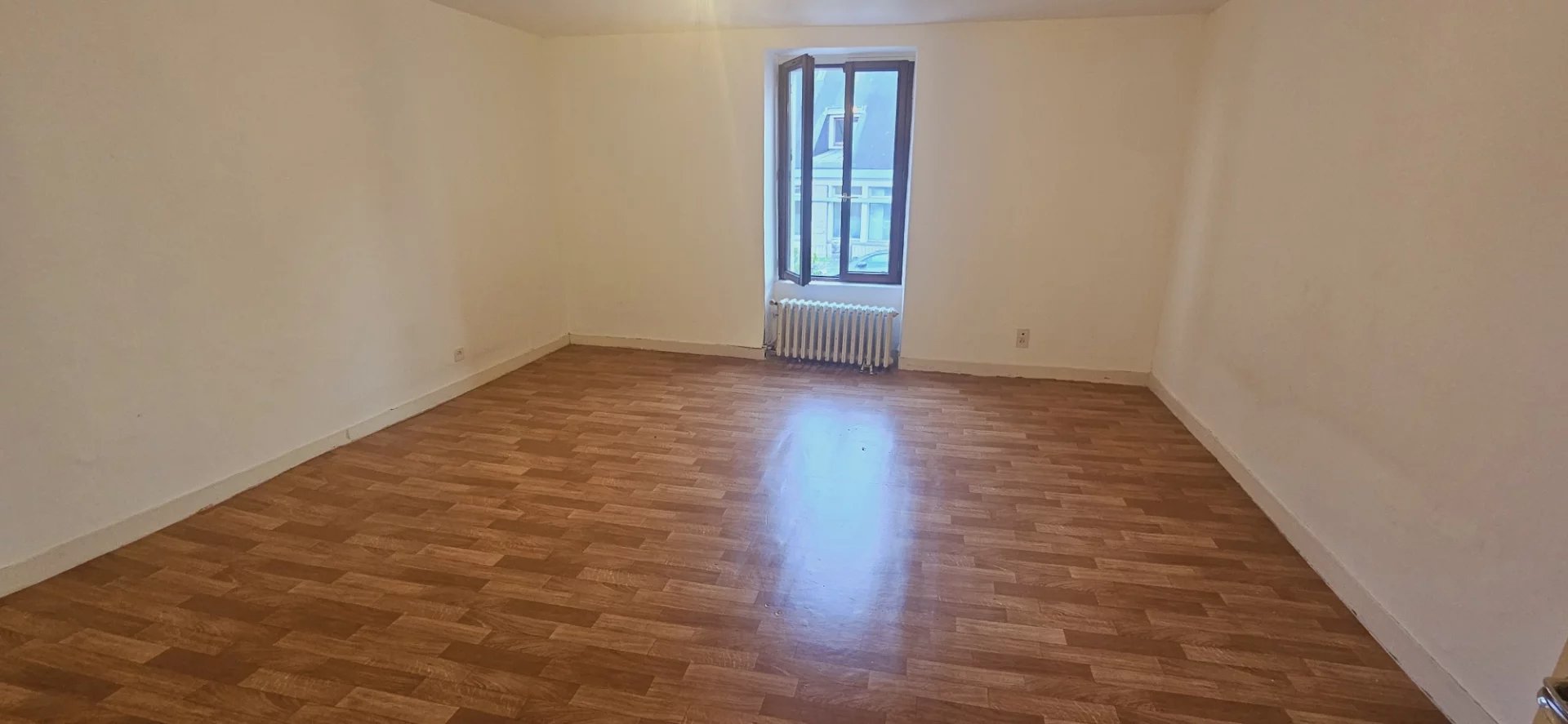 - au rez-de-chaussée: appartement de type 4 de 128m², pouvant être transformé en commerce. Il comprend actuellement une partie cuisine, un salon-séjour, une chambre, une salle d'eau, une buanderie, un WC indépendant et à l'étage 2 chambres. Ce logement est libre d'occupant actuellement (location possible 700€/mois). Cour privative à l'arrière du bâtiment avec possibilité de se garer.