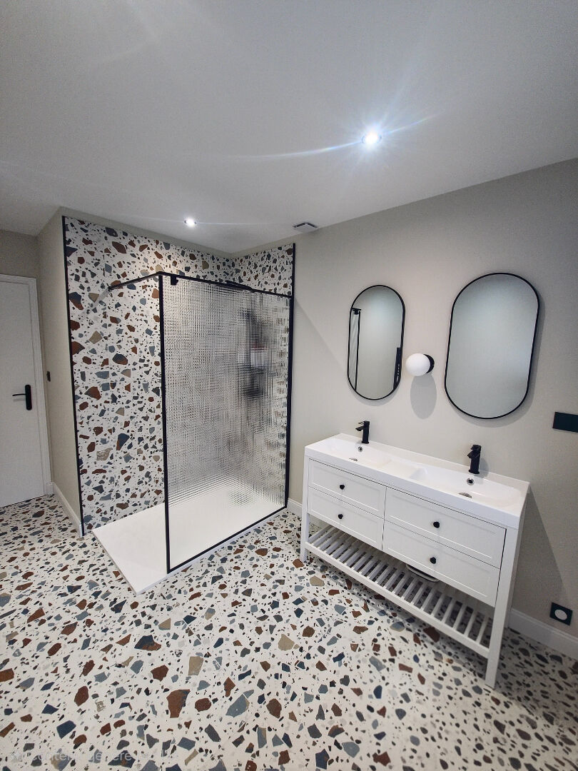 Elle se compose au RDC, d'un grand salon / séjour avec cuisine ouverte et équipée de 48 m², une chambre, une salle d'eau et un WC.