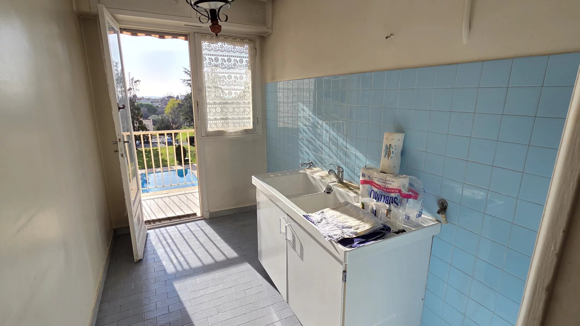 SOUS-OFFRE. EXCLUSIVITE. Le Cannet, secteur Campon, dans une résidence sécurisée avec piscine, appartement 2 pièces à rénover. Il se compose d'un séjour, une cuisine indépendante (possibilité US), une chambre avec placard, une salle de bains/wc. Balcon avec bel aperçu mer. Grande cave. Place de parking privative. Copropriété de 104 lots à usage d'habitation. Les informations sur les risques auxquels ce bien est exposé sont disponibles sur https://georisques.gouv.fr
