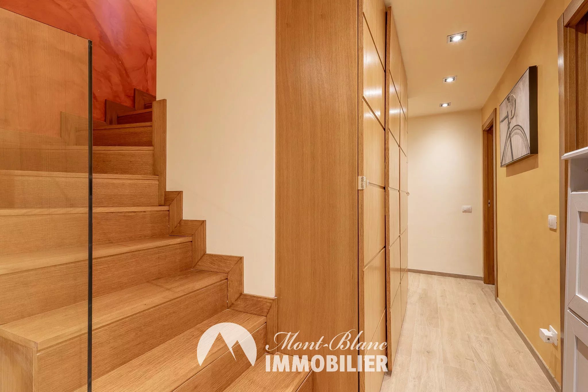 Appartement situé aux Houches, d’une superficie de 116,65 m², réparti sur trois niveaux et comprenant quatre pièces. À l’étage, vous trouverez une chambre double avec placard intégré et accès à un balcon, ainsi qu’une salle de bains. Au rez-de-jardin, un espace de vie lumineux avec une salle à manger dotée de grands placards intégrés, un coin cuisine et un séjour agrémenté d’un poêle à bois. Depuis le séjour, une baie vitrée s’ouvre sur une terrasse offrant une vue imprenable sur l’Aiguille du Midi et le massif du Mont Blanc. Le niveau inférieur dispose de deux chambres avec placards intégrés et d’une salle aménagée pour le billard, accompagnée d’une salle d’eau équipée d’une douche, baignoire, wc et hammam. L’appartement bénéficie d’atouts supplémentaires : une cave et un grand garage avec un accès direct depuis l’appartement