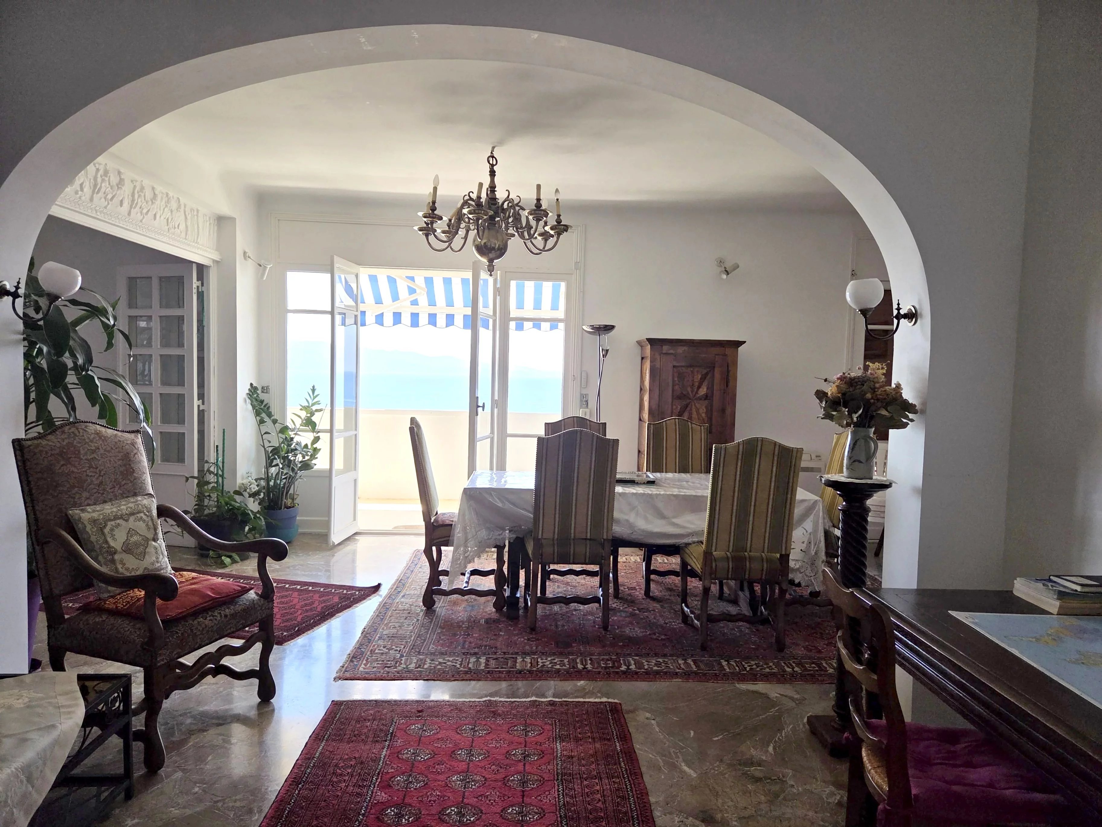 Composé d'un double séjour ouvrant sur terrasse vue mer,