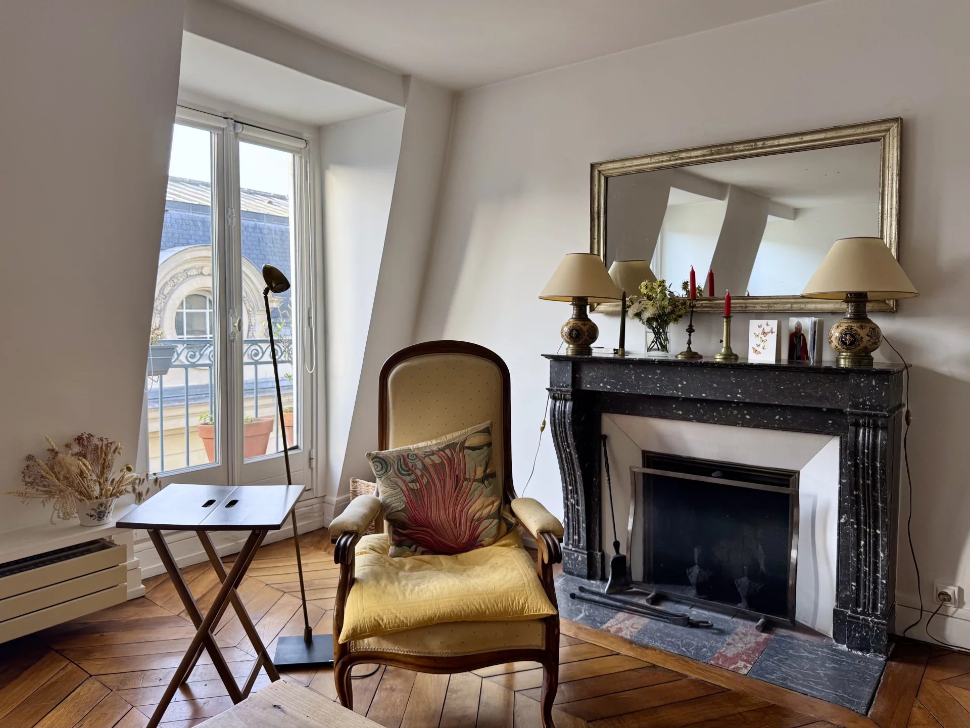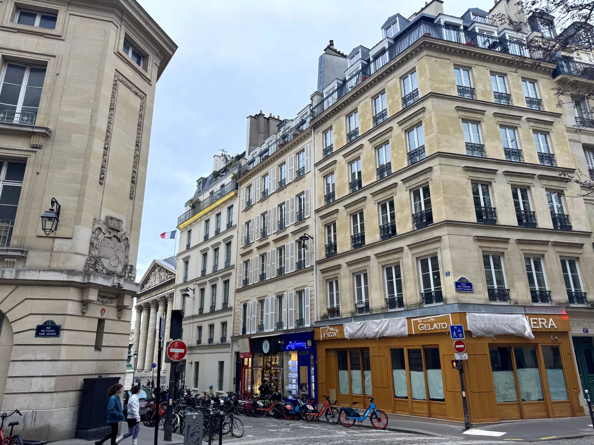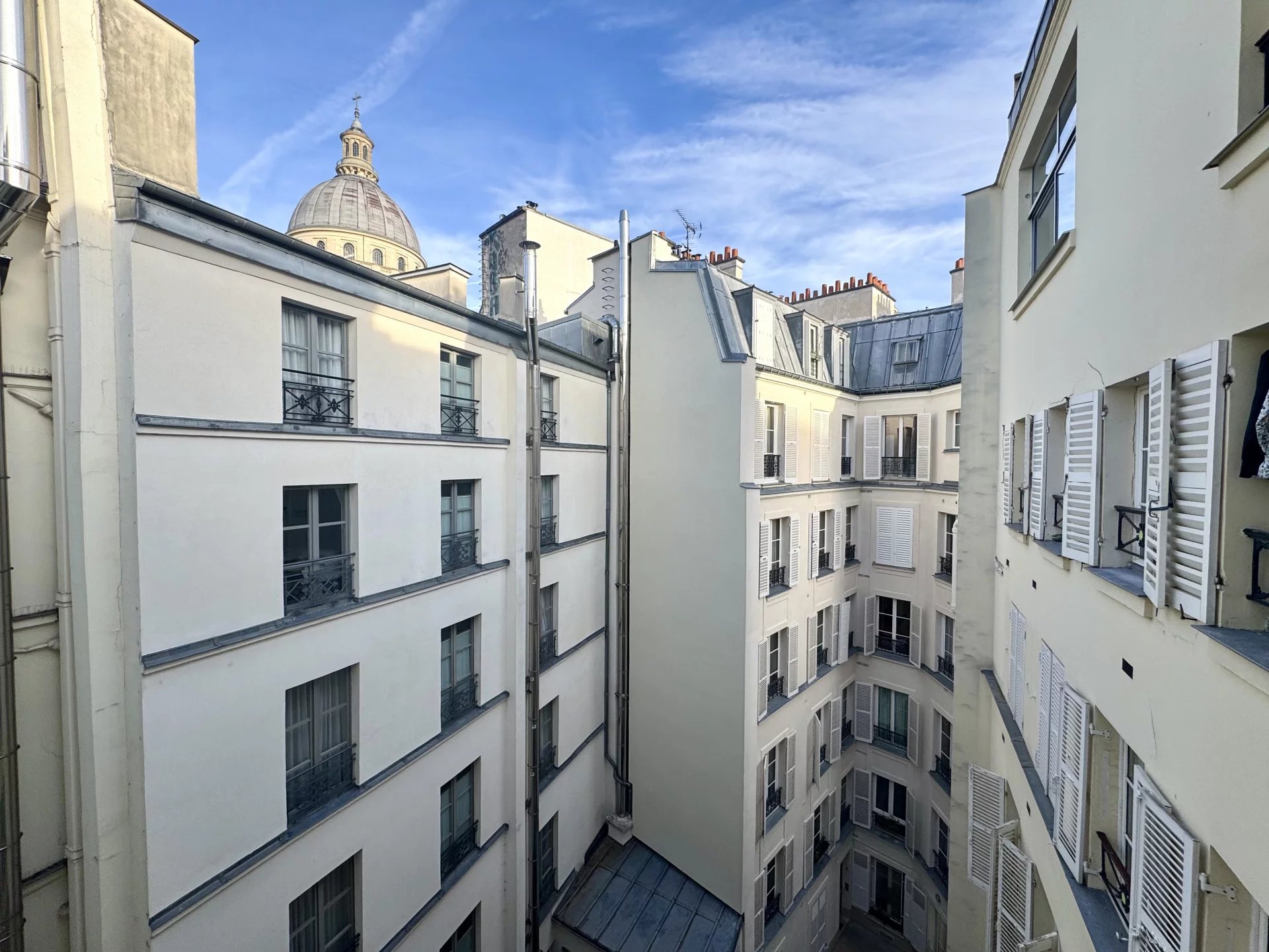 Le bien se compose d'une belle entrée avec rangements distribuant le reste des pièces. Le double séjour de 30m² est baigné de lumière grâce à ses multiples ouvertures exposées ouest. La cuisine indépendante, pleine de charme, profite de la même orientation. Les deux pièces ouvrent sur un balcon filant avec vue sur les colonnes du Panthéon. La chambre, quant à elle, donne sur la cour et offre un environnement calme et une vue imprenable sur le dôme du Panthéon. Enfin, la salle de douche moderne, avec douche à l'italienne et WC, achève de rendre ce bien aussi fonctionnel que confortable.