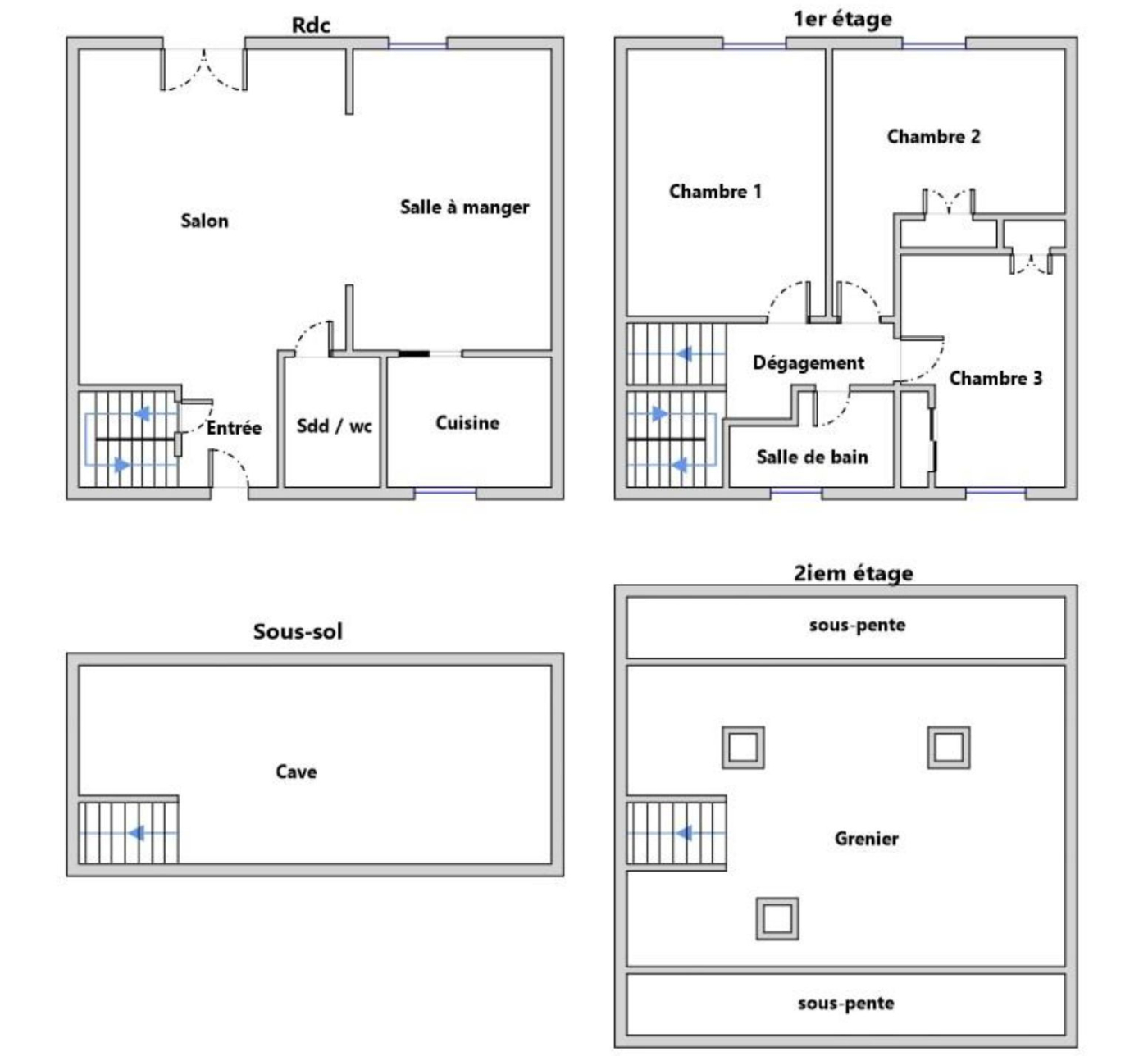 Au premier, trois chambres et une salle de bains.