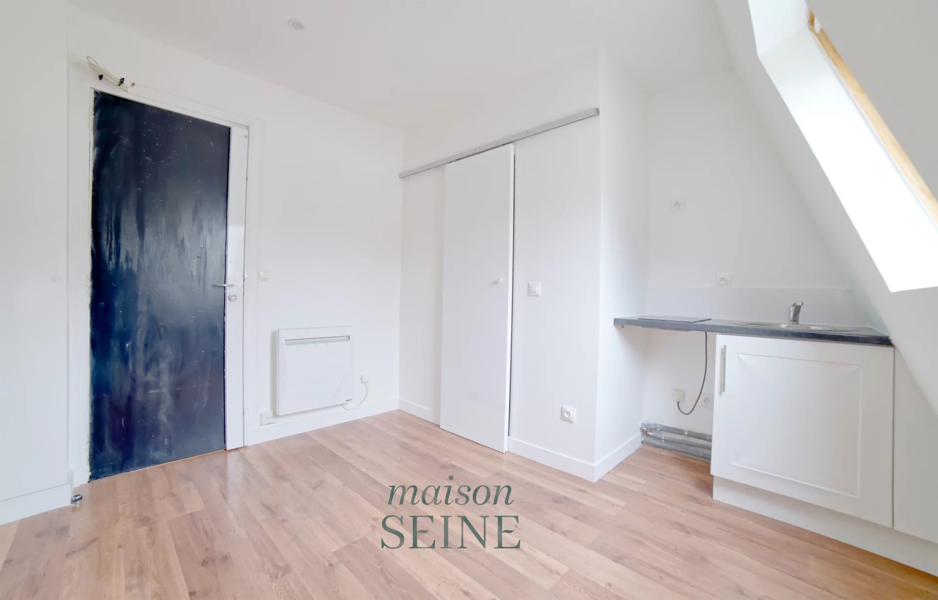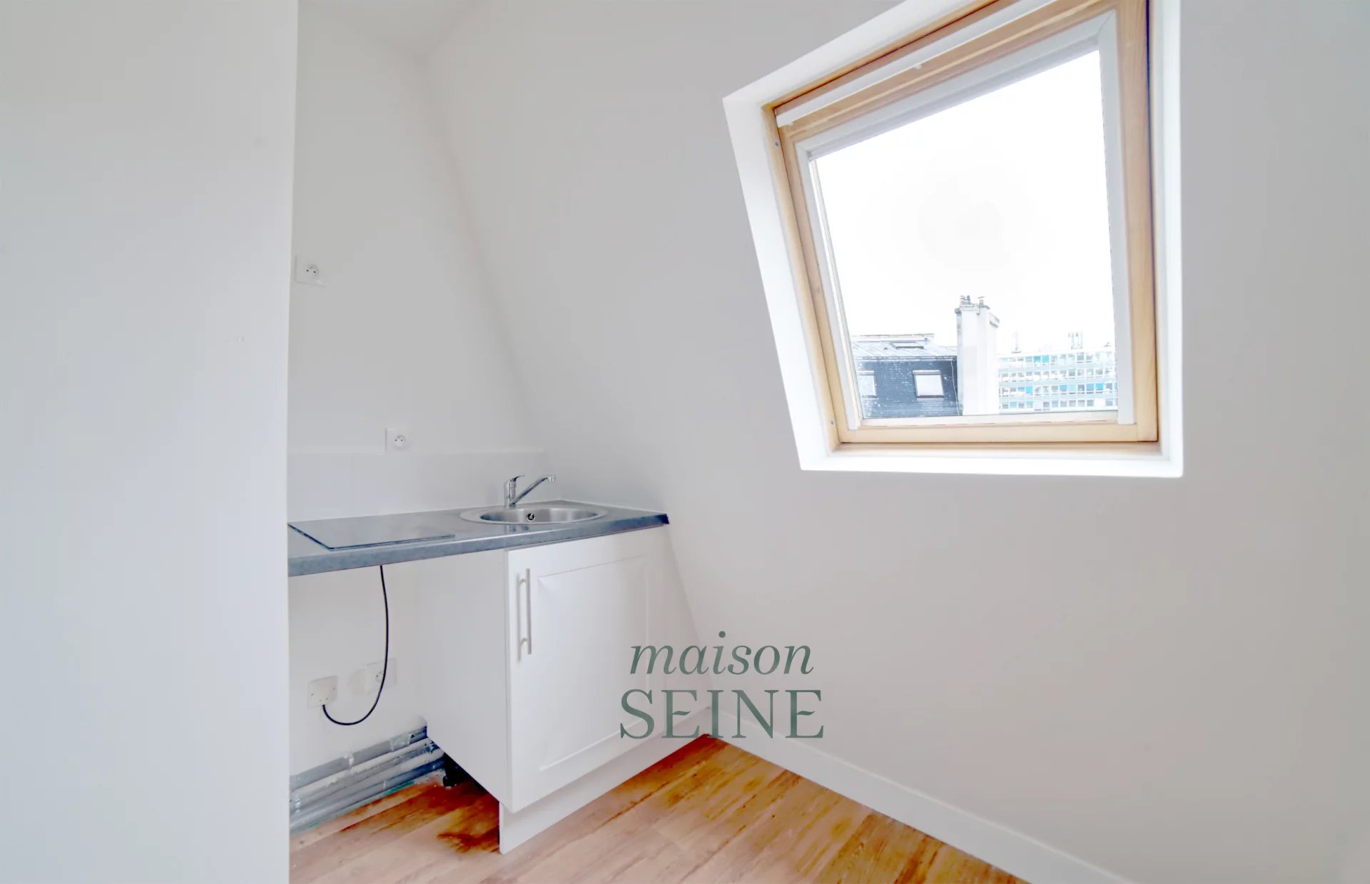 Idéalement situé à proximité immédiate de la Mairie du 8ème arrondissement et de la Place Saint Augustin, au 5ème étage sans ascenseur d'un très bel immeuble ancien de standing, cette chambre de service de 9,02m² carrez (11,10 m² au sol) se compose d'une entrée avec porte blindée, une pièce de vie avec belle fenêtre offrant une vue dégagée sur les toits de Paris et le ciel, un espace kitchenette, une salle de douche avec toilette.