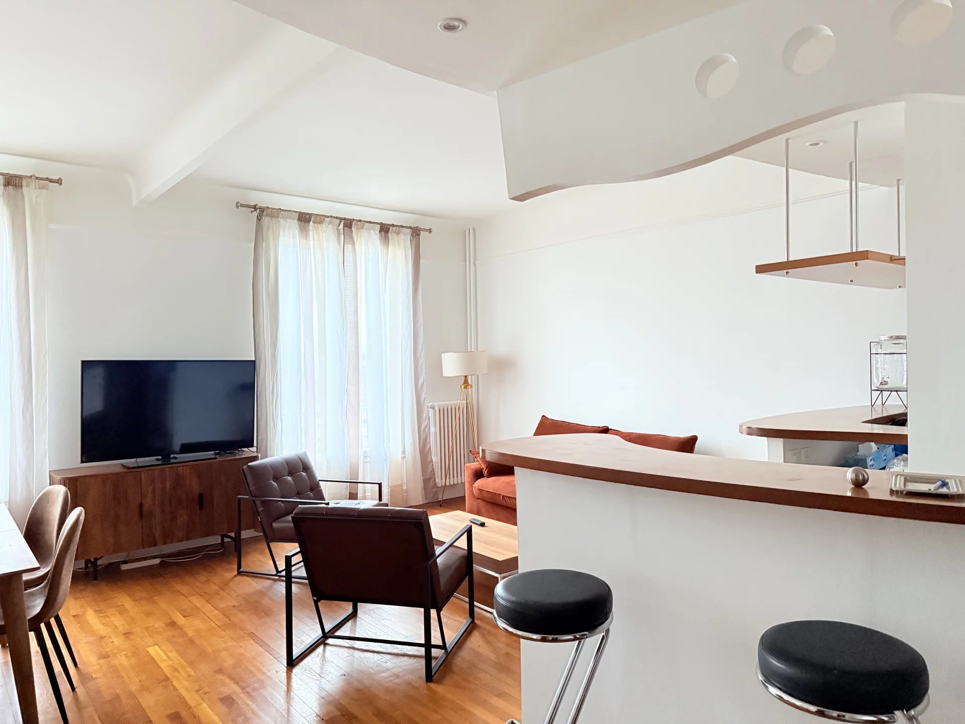 A louer, en exclusivité, Paris 16eme, Auteuil, dans un bel immeuble ancien des années 30, au 2ème étage avec ascenseur, 2 pieces meublé composé d'un beau double séjour de 33 m2, exposé plein Sud et sans vis à vis, avec un coin bureau, d'une cuisine semi ouverte équipée ( lave-vaisselle, four, plaque, réfrigérateur- congélateur), d'une chambre sur cour, d'une salle de douche avec lave linge et d'un WC indépendant. Charme de l'ancien avec hauteur sous plafond, parquet, cheminée. Digicode. Interphone. Gardien. Chauffage et eau chaude collectifs.