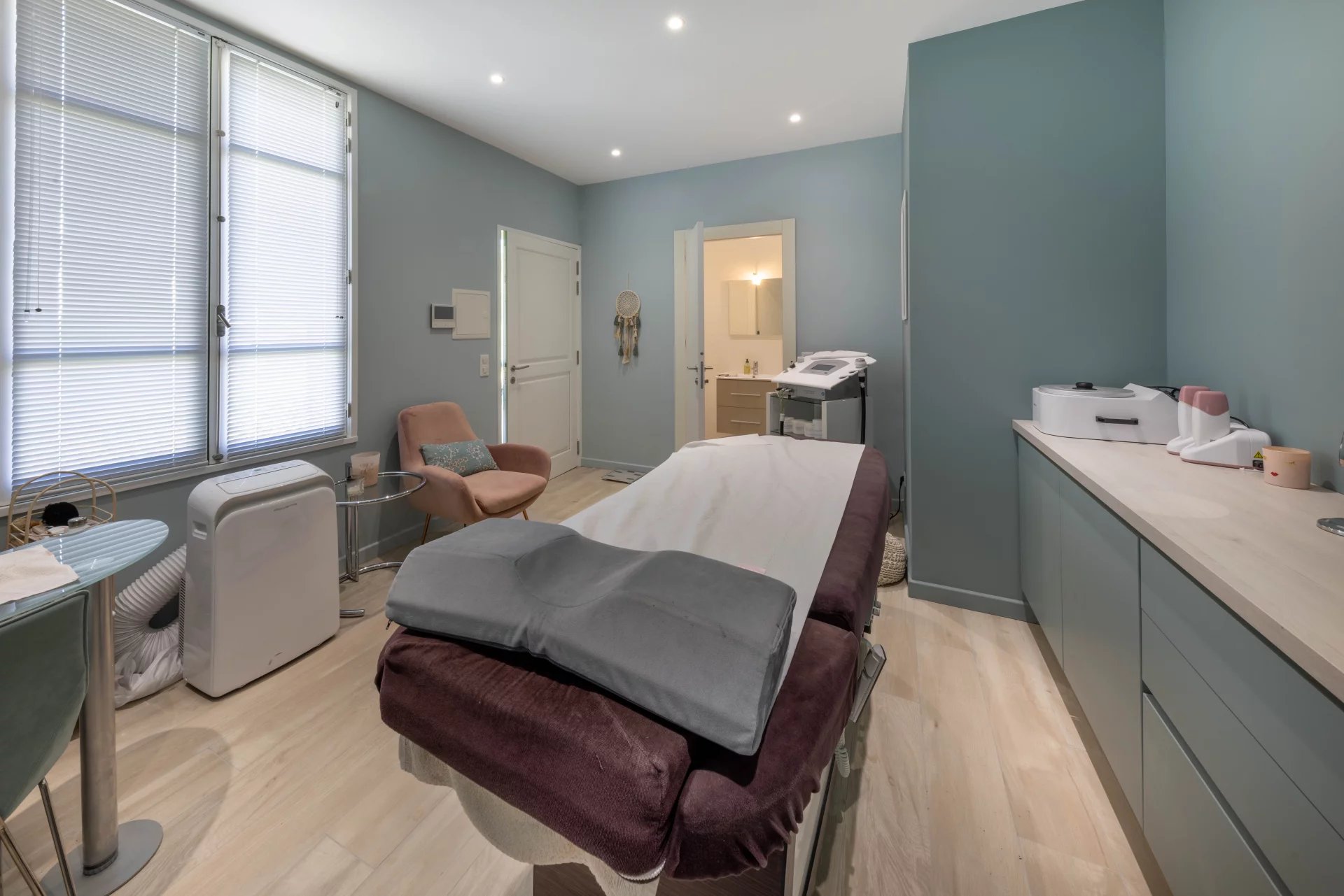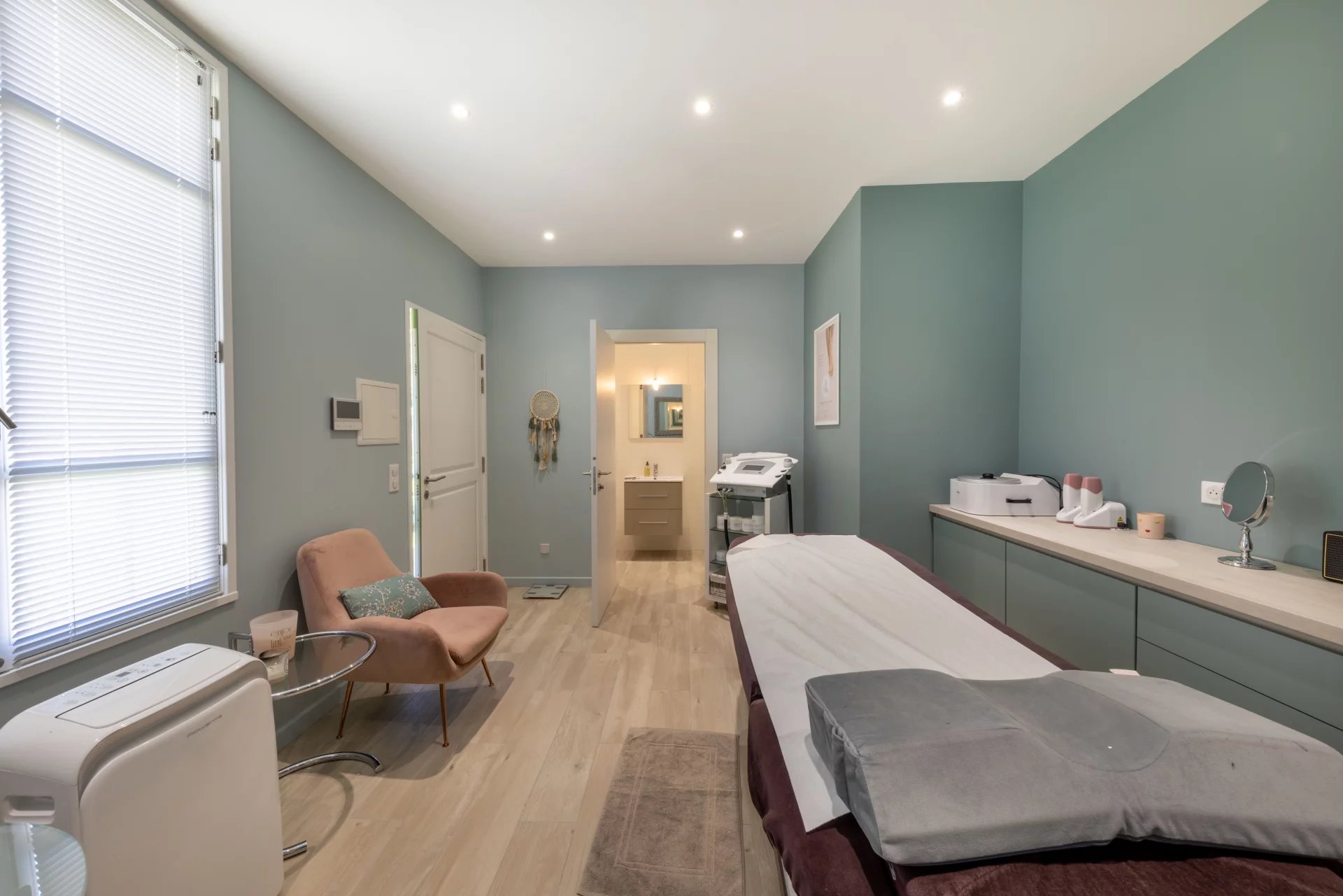 La villa dispose également d'un studio avec un accès indépendant, parfait pour les invités ou comme espace polyvalent. Ce studio est équipé d'une salle de douche pour plus de commodité.