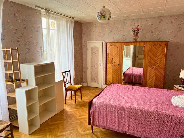 À l'étage, un palier dessert trois chambres, une salle de bains composée d'une baignoire, d'un bidet et d'un lavabo, ainsi qu'un grenier.