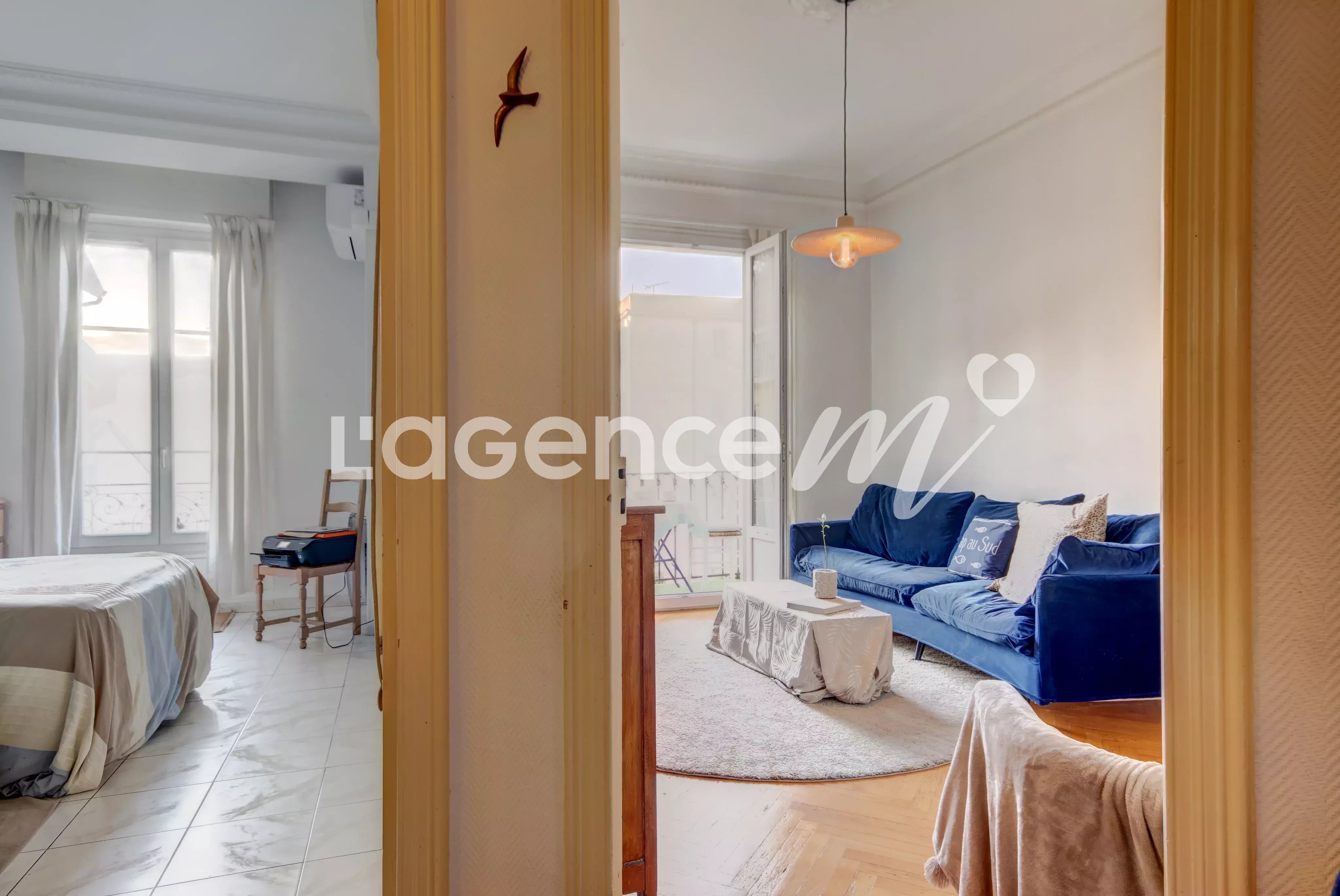 NICE CARRÉ D’OR : EXCLUSIVITÉ à 2 minutes à pied de la plage et du Negresco : venez visiter “Dolly”, cet appartement de 2 pièces avec balcons, cave et ascenseur, dans un immeuble de 1913. Une des adresses les plus prestigieuses du Carré d’Or. Ce 53 m², au 4ᵉ étage avec ascenseur, offre des atouts rares : une belle hauteur sous plafond de plus de 3 mètres, une exposition plein ouest pour admirer des couchers de soleil, ainsi qu’une configuration qui apporte de vrais volumes et une impression d’espace. L’appartement se compose d’un séjour lumineux avec parquet en bâtons rompus et un premier balcon, d’une chambre au calme, d’une cuisine indépendante donnant sur un deuxième balcon, d’une salle de bain avec fenêtre, d’un WC séparé avec fenêtre et lave-mains. De belles moulures viennent agrémenter l’ensemble. Nombreux rangements et une grande cave en sous-sol très pratique. La copropriété est bien entretenue, équipée d’un ascenseur, et dispose d’un jardin intérieur (passage du jardinier chaque semaine inclus dans les charges). L’appartement présente quelques rafraîchissements à prévoir ; néanmoins, de bonnes bases sont présentes : climatisation réversible (2 unités), ballon d’eau chaude récent, belle hauteur sous plafond, cachet de l’ancien et localisation exceptionnelle en hyper-centre. Un bien rare pour ceux qui recherchent le confort du centre-ville (tout à pied : courses, commerces, plage, restaurants) avec le calme d’un vrai chez-soi. Parfait pour un pied-à-terre à Nice ou une résidence principale. Classe énergie C – Copropriété de 22 lots principaux – Charges mensuelles : 160 € – Taxe foncière : 989 € – Pas de procédure en cours à notre connaissance. Les informations sur les risques auxquels ce bien est exposé sont disponibles sur le site Géorisques : http://georisques.gouv.fr