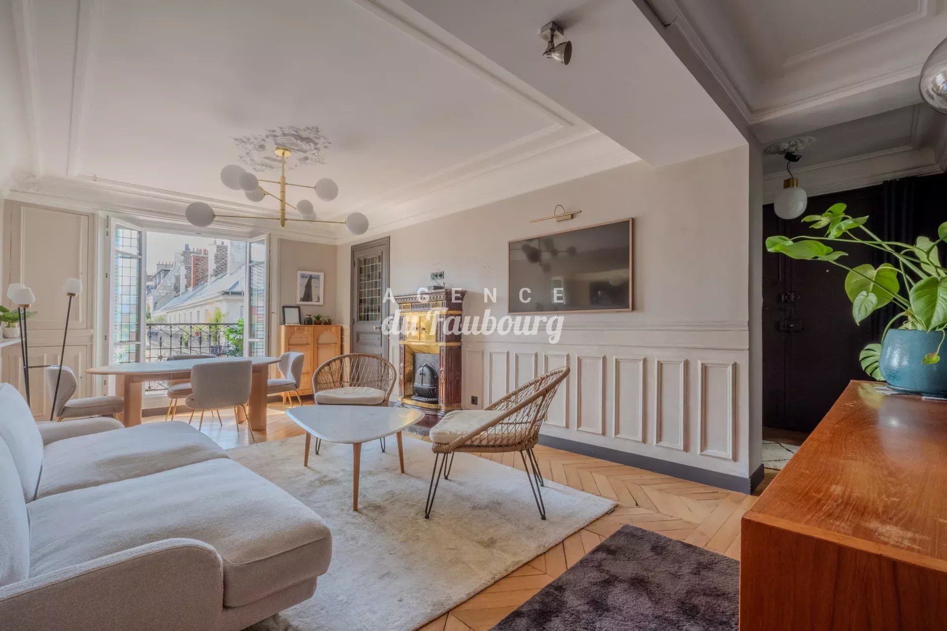 Paris 10ème - rue du Faubourg Poissonnière - Exclusivité - Dans un bel immeuble ancien aux parties communes de caractère, l'Agence du Faubourg vous propose un très bel appartement de quatre pièces, d’une superficie de 94 m2 (93,22 m2 Loi Carrez), situé au 5ème étage par escalier, comprenant une entrée, une pièce de vie donnant sur balcon avec une belle vue dégagée, une loggia aménagée en bureau, une cuisine semi-ouverte entièrement équipée, trois grandes chambres avec dressing sur-mesure, une salle de bains avec douche, une salle d'eau avec WC, WC séparé, coin buanderie, nombreux rangements.