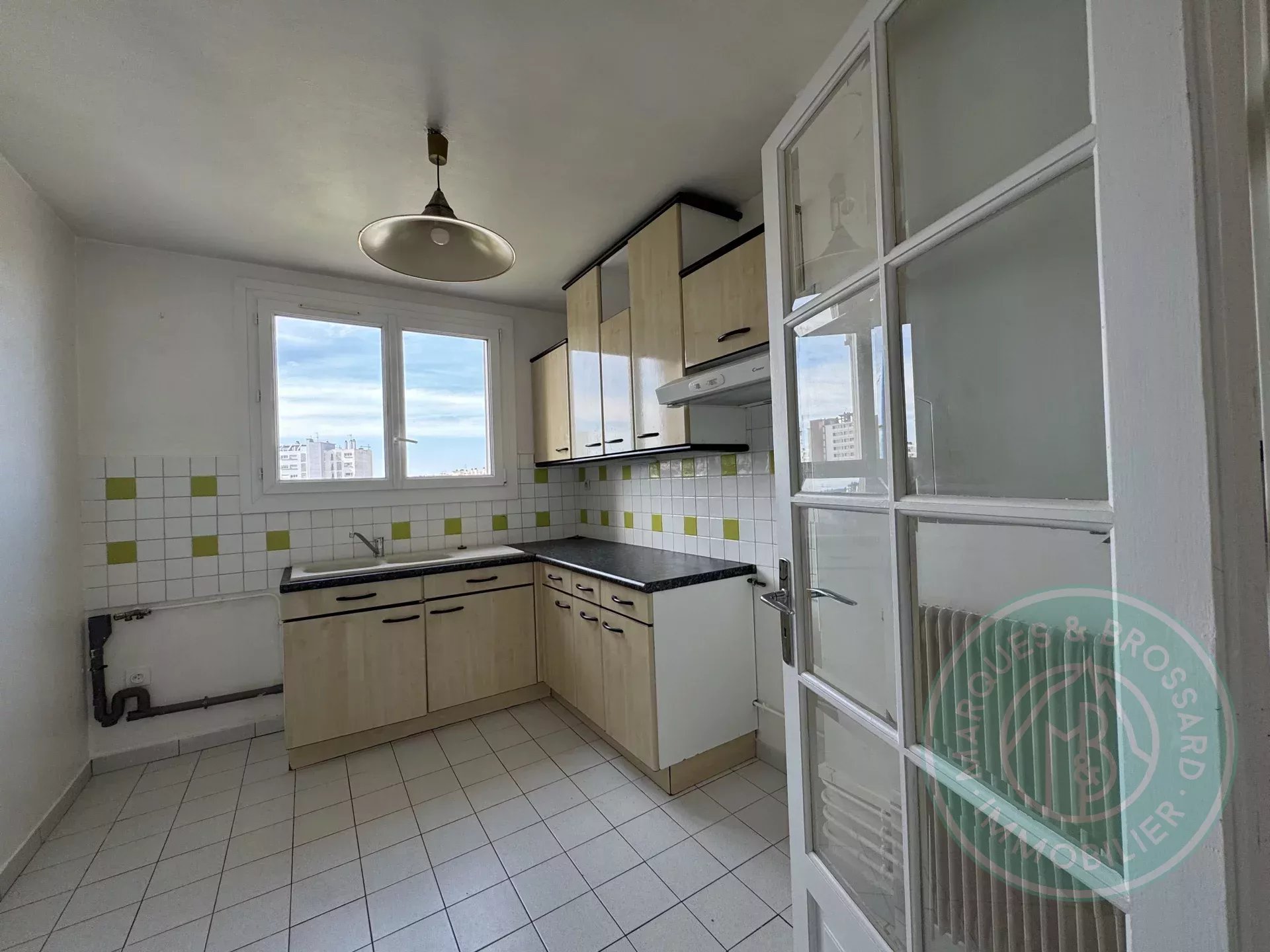 Il se compose d’une entrée avec placards, d’une cuisine séparée, d’un séjour double lumineux avec accès direct à un balcon filant, d’une salle de bains avec fenêtre et de deux belles chambres.