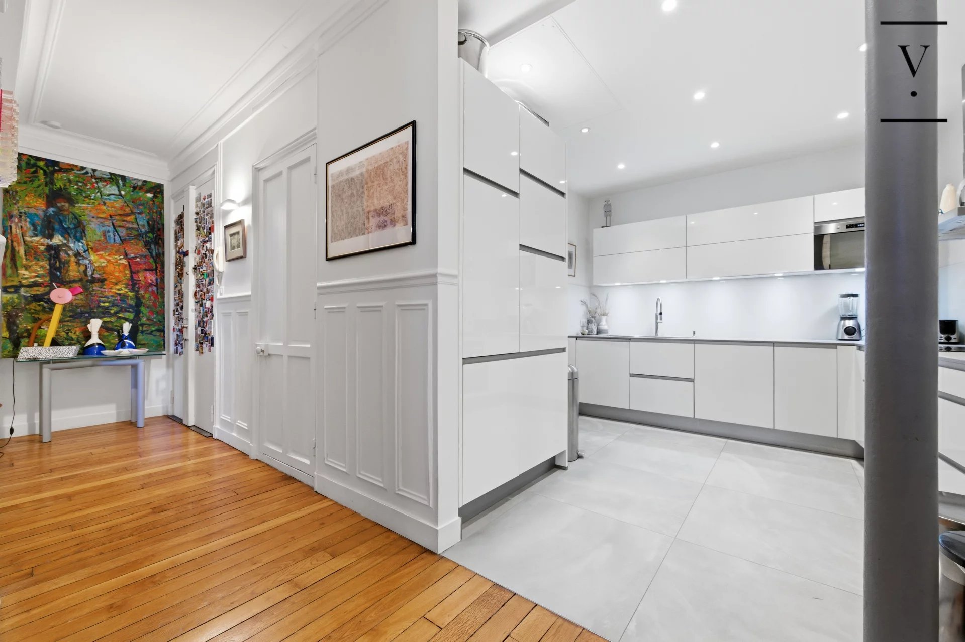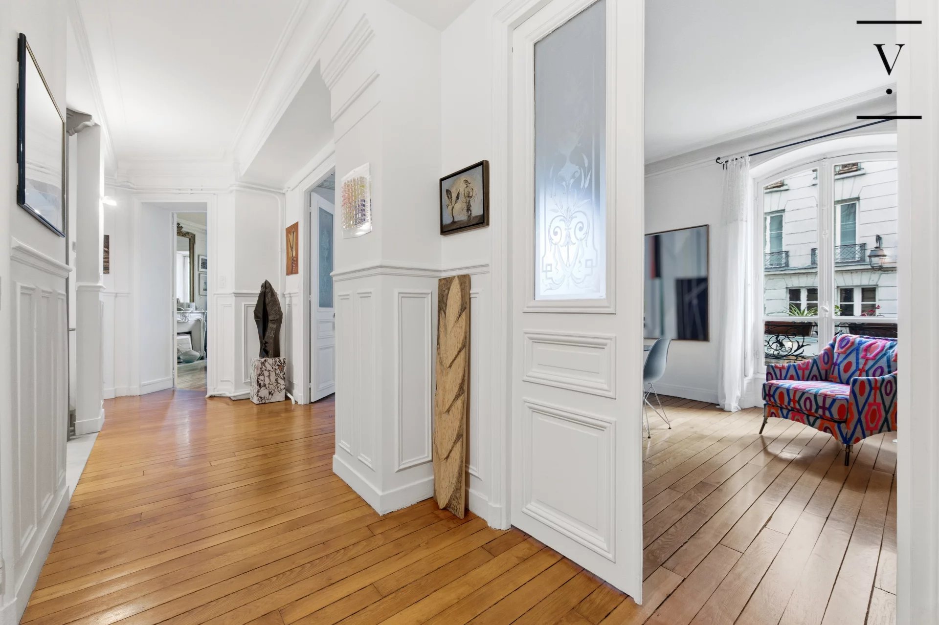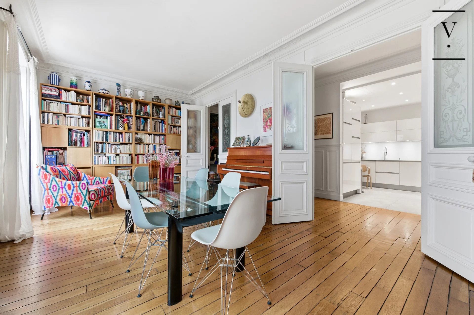 Villaret Immobilier vous propose un appartement haussmannien de 101,80 m² Carrez, situé au 1er étage par ascenseur d’une copropriété bien entretenue, au cœur du Marais. Il se compose d’une vaste entrée, d’une agréable pièce de vie, d’un salon d’angle offrant une vue dégagée sur l’Hôtel de Soubise, d’une grande cuisine entièrement équipée, de deux belles chambres, d’une spacieuse salle d’eau avec toilettes, ainsi que d’un WC indépendant. Rénové avec des matériaux de qualité, cet appartement familial bénéficie d’un plan optimisé et de nombreux rangements. La création d’une troisième chambre est possible. Une grande cave complète ce bien rare. Prestations : ascenseur, parquet, moulures, cheminée, local à vélos, belle hauteur sous plafond de 2,90m.