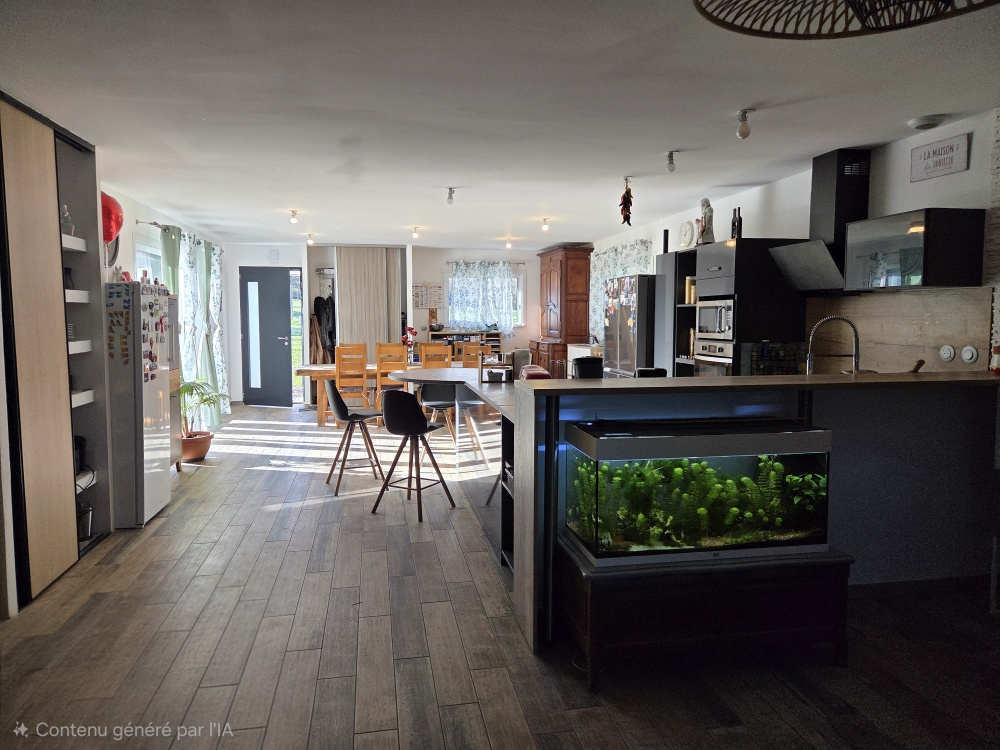 Dès l'entrée, laissez-vous séduire par une grande pièce de vie lumineuse et conviviale, comprenant un salon, une salle à manger et une cuisine ouverte parfaitement équipée. L'espace nuit propose trois belles chambres, une salle d'eau moderne avec double vasque, un WC séparé, ainsi qu'une buanderie pratique.