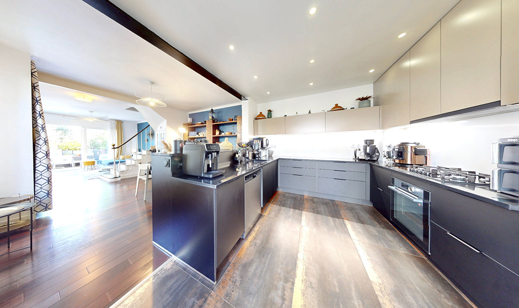 La Garenne-Centre, charme, calme et confort au coeur d'un esprit village. Située dans une rue paisible, à deux pas des commerces de la rue Voltaire (boulangerie, pharmacie, etc...) et des écoles de la commune, cette magnifique maison des années 1930 de 138,70 m2 au sol (111,87 m2 carrez), rénovée avec des matériaux de qualité, allie avec élégance le charme de l'ancien et le confort moderne. Implantée sur une parcelle d'environ 81 m², elle se développe sur plusieurs niveaux intelligemment aménagés : Au rez-de-chaussée : une vaste pièce de vie baignée de lumière grâce à sa double exposition, avec un salon convivial ouvrant sur une agréable terrasse exposée plein sud d'environ 22 m², idéale pour les beaux jours. La cuisine semi-ouverte prolonge harmonieusement l'espace salle à manger. Au premier étage : deux chambres avec placards intégrés sur mesure, une salle d'eau moderne avec WC. Au dernier étage : une belle suite parentale de 30 m2 au sol env., généreuse et lumineuse, avec salle de bain et WC privatifs. En sous-sol avec fenêtres : un espace polyvalent comprenant une chambre d'appoint ou bureau, une salle de cinéma cosy, et une buanderie pratique. Les points forts : un plan optimisé sans perte d'espace, une rénovation de qualité, des aménagements domotique modernes (thermostat connecté, porte d'entrée sécurisée à ouverture par empreinte digitale), un emplacement prisé alliant tranquillité résidentielle et proximité immédiate des commodités. Côté transports : à seulement 9 minutes à pied de la gare SNCF de Courbevoie (ligne Saint-Lazare) et 12 minutes du tramway T2 (Les Fauvelles / La Défense/Porte de Versailles). Écoles à proximité : maternelle Sagot-Voltaire, élémentaire Jerphanion.