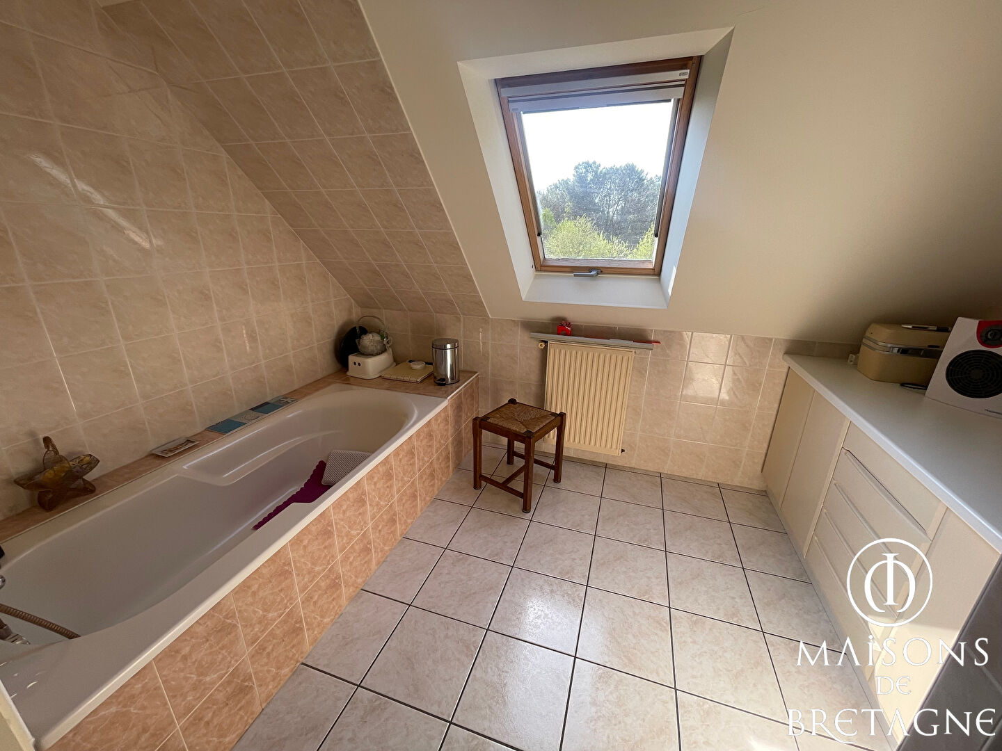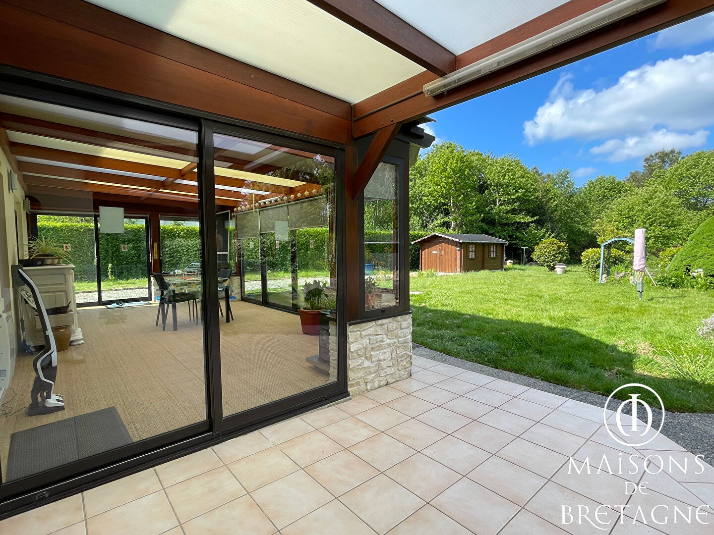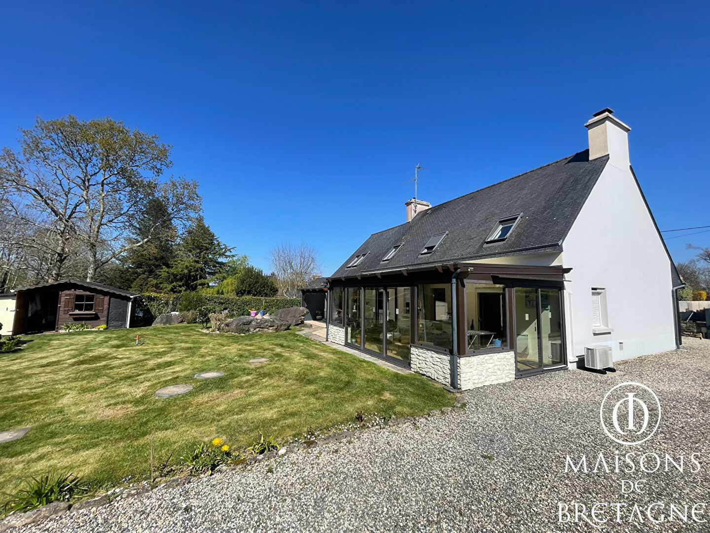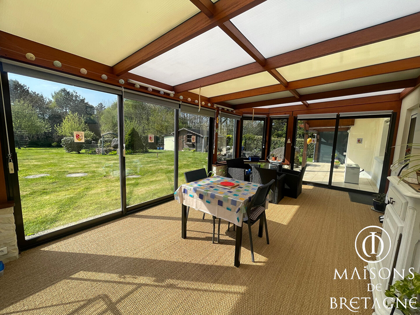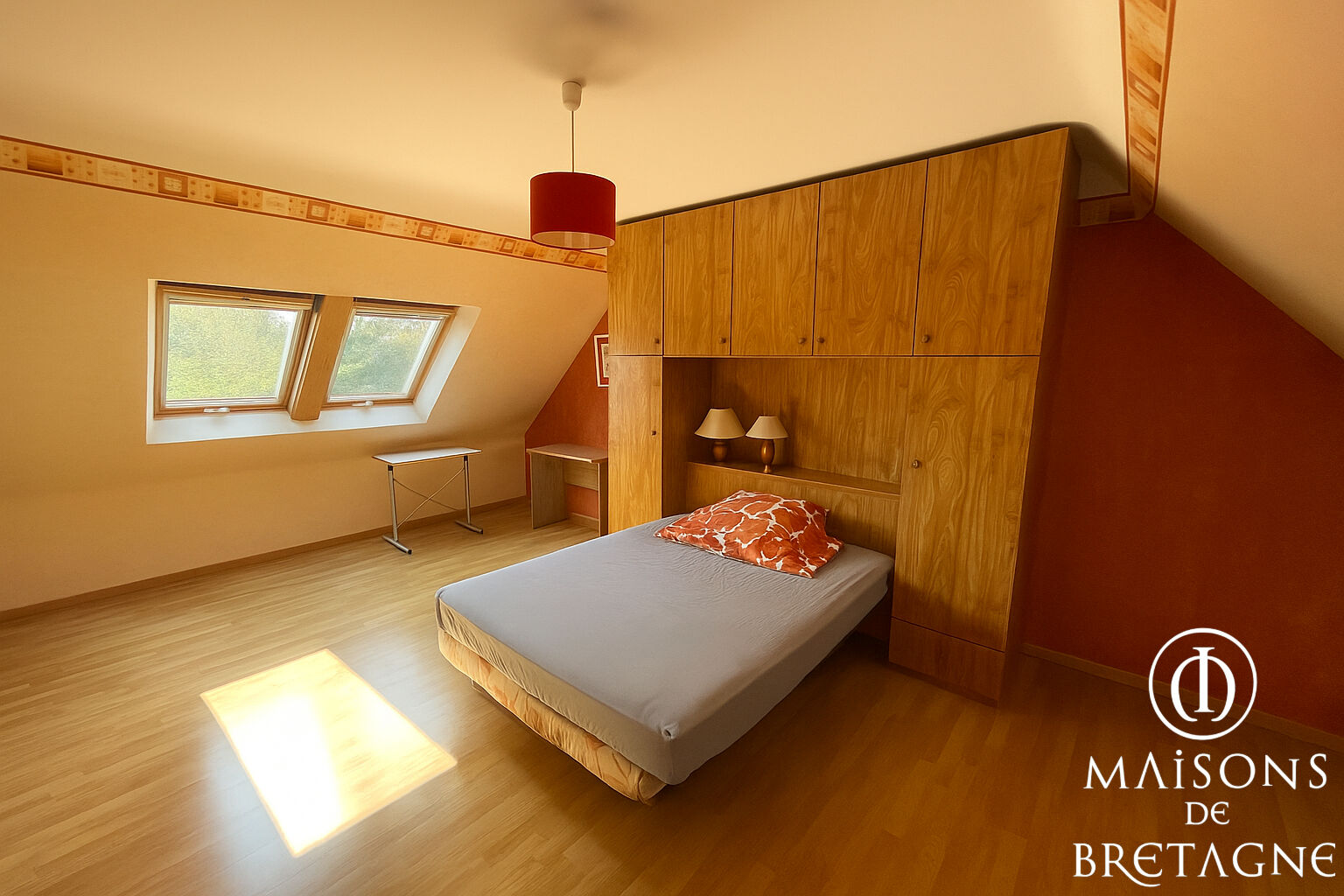 Exclusivité Maisons de Bretagne Dans un environnement résidentiel, cette maison très bien entretenue bénéficie d'une confortable vie de plain-pieds avec une grande pièce de vie pourvue d'une cheminée équipée d'un insert, une véranda donnant sur le jardin, une cuisine aménagée et équipée, une chambre, une salle d'eau et wc. A l'étage : un grand palier avec mezzanine desservant 3 chambres, salle de bains et douche, wc. Grand garage carrelé attenant avec espace chaufferie et buanderie. Un très beau Jardin aménagé et entretenu avec plusieurs arbres fruitiers et 2 abris dont un sur dalle béton et l'autre sur plancher. Le terrain d'une superficie de 1604 m² dont 1004m² constructible et le reste en zone naturelle est clos avec 2 accès voitures et portail électrique. Située à seulement 3 minutes du port de Rosbras et proche des commodités, cette maison bénéficie d'une situation très calme et représente un ensemble de grande qualité à découvrir sans tarder. Les informations sur les risques auxquels ce bien est exposé sont disponibles sur le site Géorisques : www.georisques.gouv.fr (3.49 % honoraires TTC à la charge de l'acquéreur.)