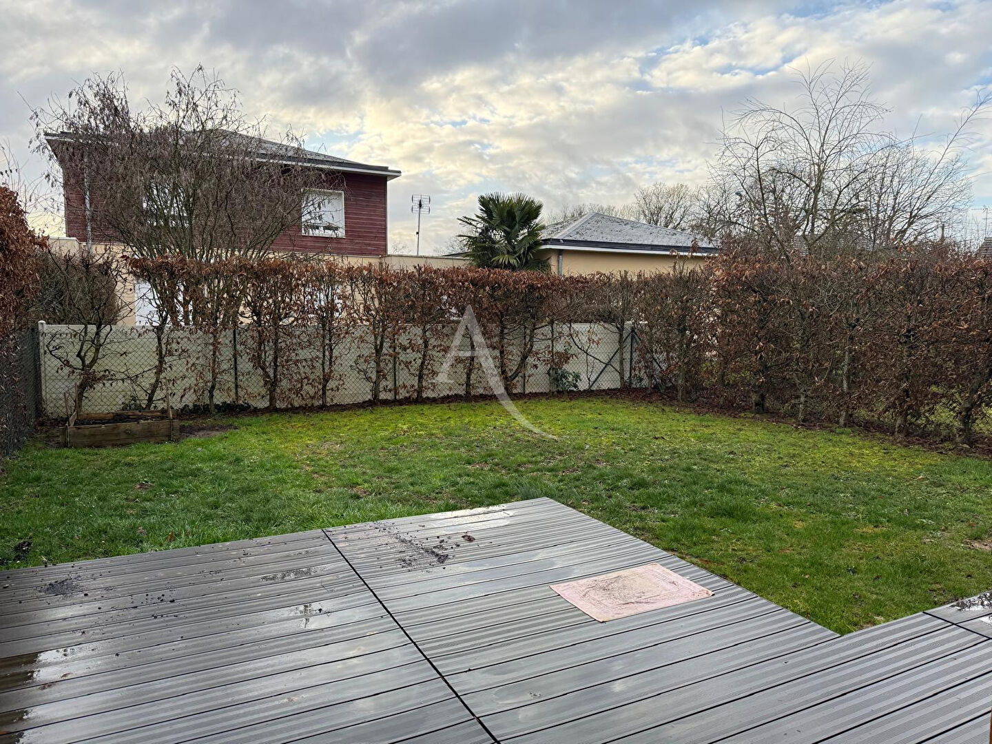 Belle maison mitoyenne de 66.49 comprenant au rez-de-chaussée : une entrée, un séjour donnant l'accès à un jardin, une cuisine aménagée et équipée (hotte, plaque de cuisson, lave-vaisselle) donnant accès à un garage et une buanderie, un WC. A l'étage : un palier desservant deux chambres, une salle de bain et un WC séparé. Chauffage individuel électrique. Fin de préavis au 30/03/26 mais disponible à partir de mi-février.