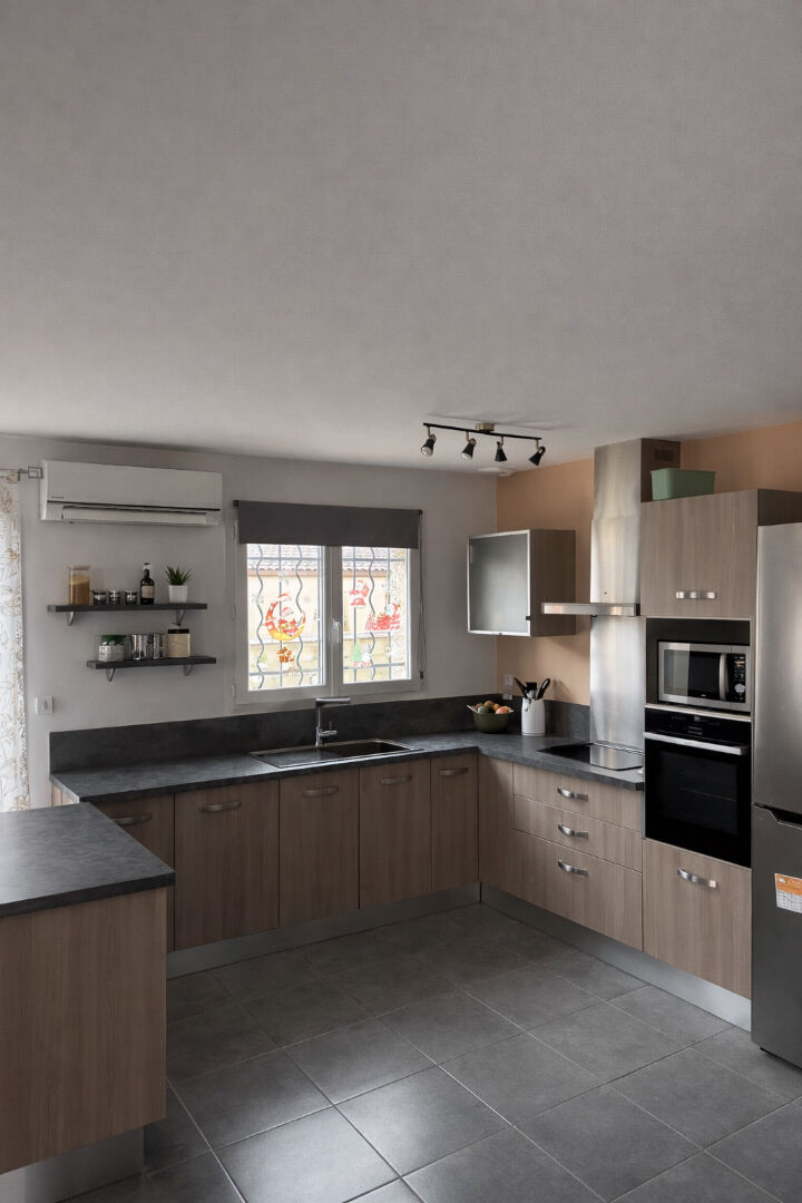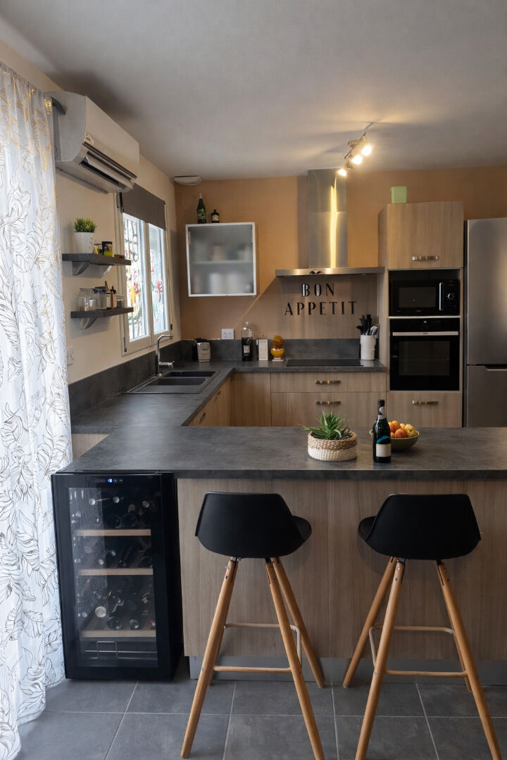 Située au calme, en fond d'impasse, cette maison de plain-pied construite en 2015 développe une surface habitable de 81 m² et s'implante sur un terrain de 384 m². Un bien agréable, parfaitement adapté à une vie familiale paisible. DESCRIPTION INTERIEURE : - Belle pièce de vie lumineuse comprenant un espace séjour et salon ouvert - Cuisine aménagée, pratique et fonctionnelle - 3 chambres - Salle de bains équipée d'une double vasque et d'une douche -WC indépendants - Climatisation réversible installée dans le salon - Poêle à granulés assurant un chauffage économique et chaleureux - Grand garage attenant ESPACES EXTERIEURS : - Jardin entièrement clos et facile à entretenir - Spacieuse terrasse en bois avec barbecue, idéale pour les repas en extérieur - Terrain de pétanque pour profiter pleinement des beaux jours - Extérieurs bien pensés et agréables à vivre LES ATOUTS : - Maison construite en 2015, parfaite pour une vie de famille - Double mode de chauffage : climatisation et poêle à granulés - Espaces extérieurs conviviaux - Environnement calme et recherché Surface habitable : 81 m² Terrain : 384 m² Une maison confortable, agréable en toute saison. A découvrir sans tarder.