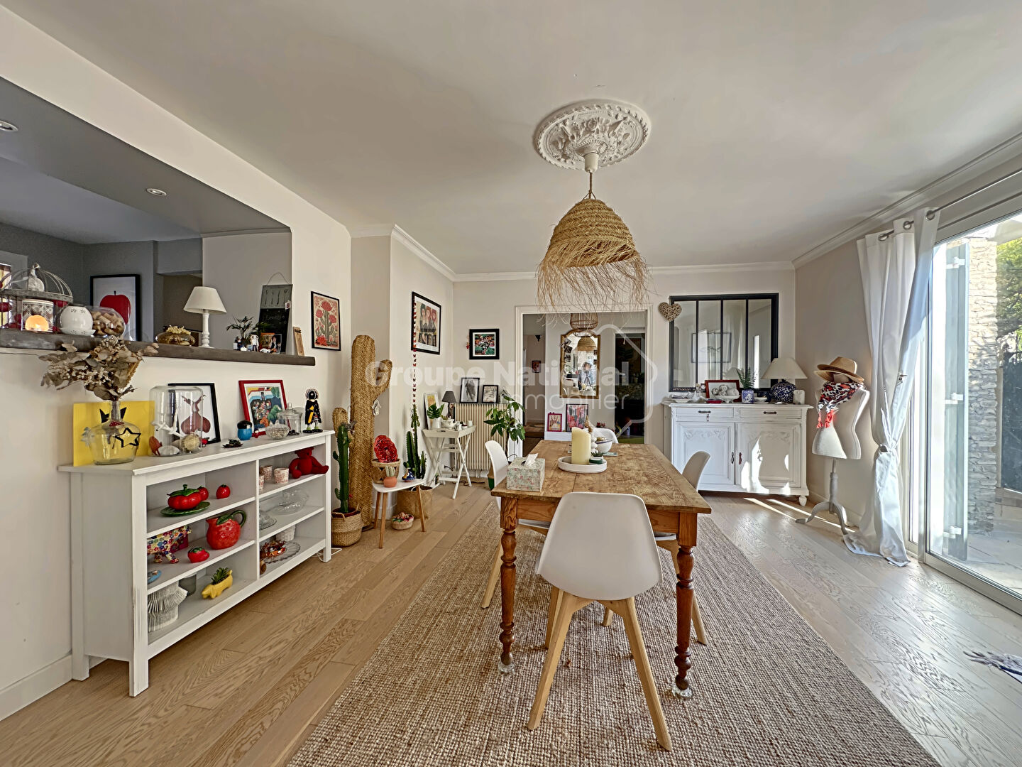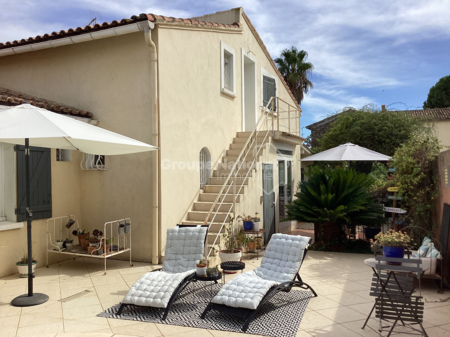 SAINT BRES Venez découvrir dans un quartier résidentiel et prisé cette splendide villa de 180 m² édifiée sur une parcelle de 600 m², idéalement située à deux pas des écoles, commerces. Au rdc : Vaste séjour lumineux avec cheminée, cuisine équipée, WC séparés, bureau , deux chambres et une salle d'eau. A l'étage : 2 grandes chambres, salle de bain, WC , dressing, espace bureau avec accès indépendant. En extérieur: Jardin arboré avec piscine sans vis-à-vis, dépendance aménagée ( pièce de stockage et buanderie).