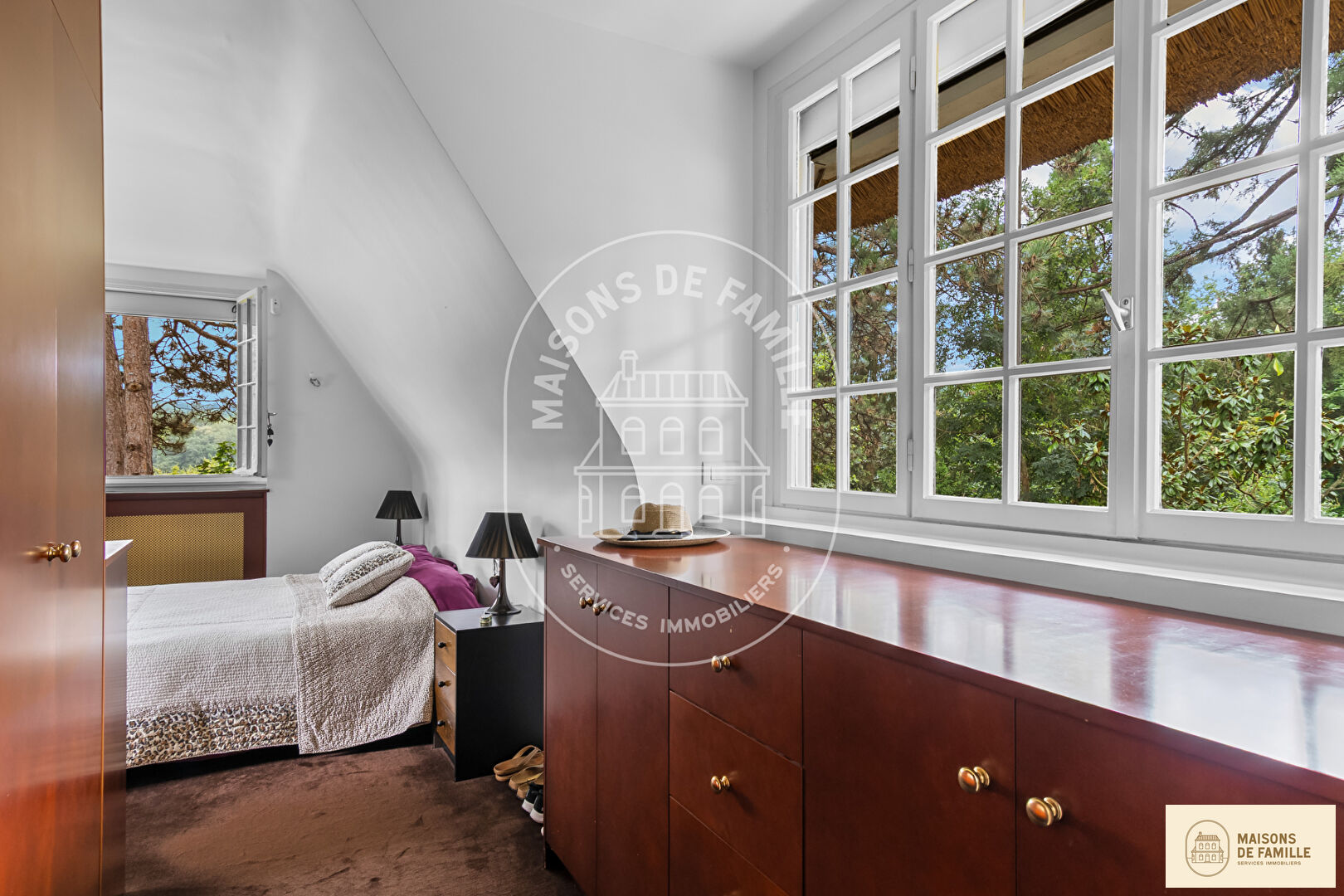 Maisons de Famille Immobilier, l'expert de la vente de Maisons dans l'ouest parisien // La Celle Saint-Cloud (78170) A seulement 5 minutes à pied de la gare de Bougival (ligne L) et à proximité des commerces, et de l'école élémentaire, nous vous présentons **Eden** cette chaumière familiale de 275 m² au sol et 200m² habitables sur un terrain de 1345 m², sans vis-à-vis, et entourée de verdure. Cette maison comprends : Au rez-de-chaussée, un séjour de 41 m² avec cheminée ouverte et accès direct à sa terrasse exposée SUD-EST et sans aucun vis-à-vis, une cuisine équipée avec partie dinatoire, avec accès sur l'autre terrasse, une chambre, une salle de douche et un wc séparé. A l'étage, 3 chambres dont une avec sa salle de douche, une salle de douche, et un wc séparé. Le sous-sol total de 100m2 comprends une buanderie, une cave et un garage de 40m² . La toiture a été entièrement refaite en 2021 Possibilité de construire une piscine (PLU en zone UGd). Proximité des autoroutes A86 et A13, A 8 minutes en voiture de l'EIB (École Internationale Bilingue), 10 minutes de Blanche de Castille au Chesnay et de l'école Anglaise de Croissy, 17 minutes de Daniélou Rueil-Malmaison et de Passy Buzenval. A 18 minutes du Lycée international de Saint-Germain-en-Laye. Contact direct 7/7 06.59.12.90.41 Mickael Carre E.I agent commercial RSAC 792962755 Versailles