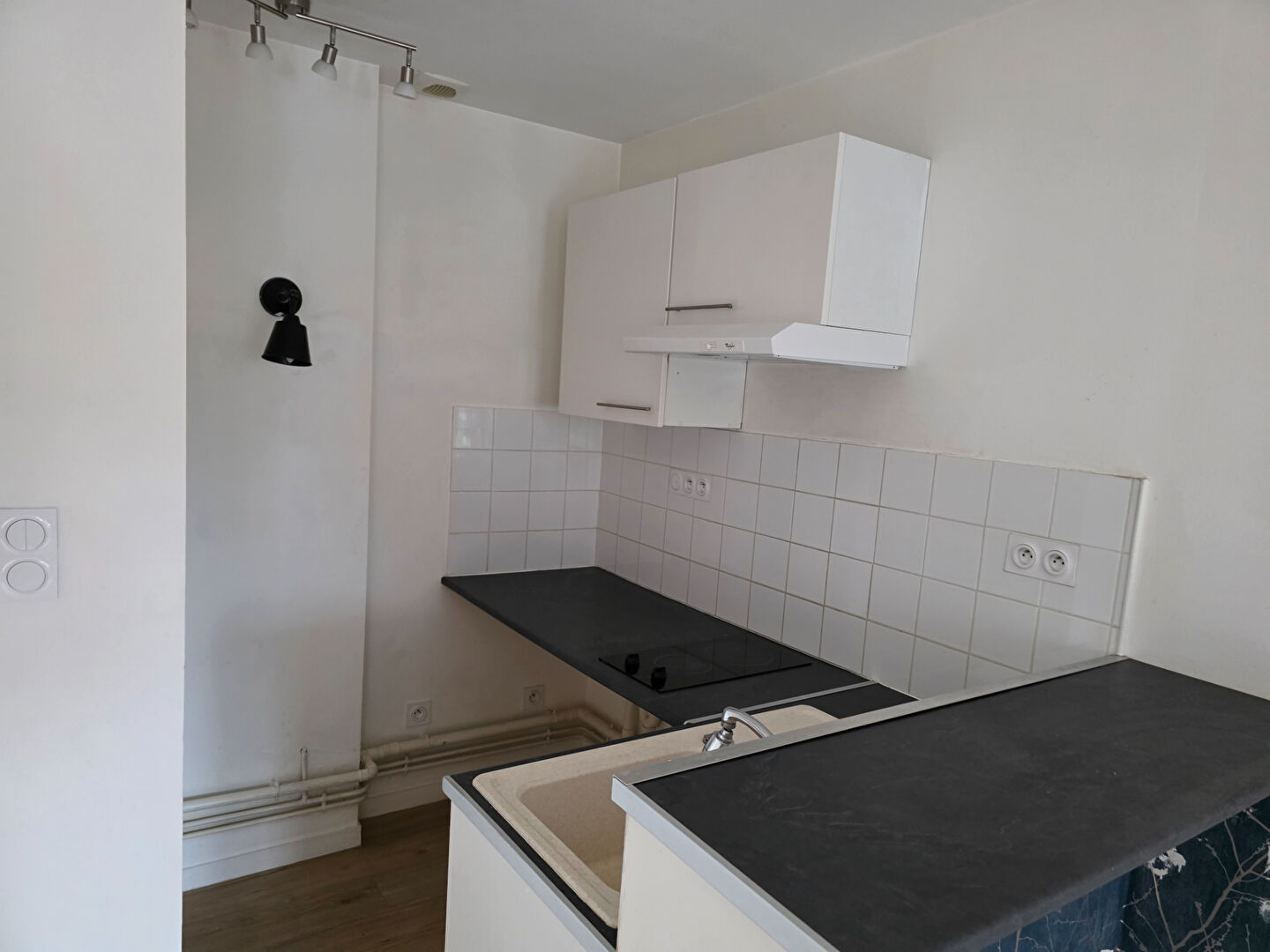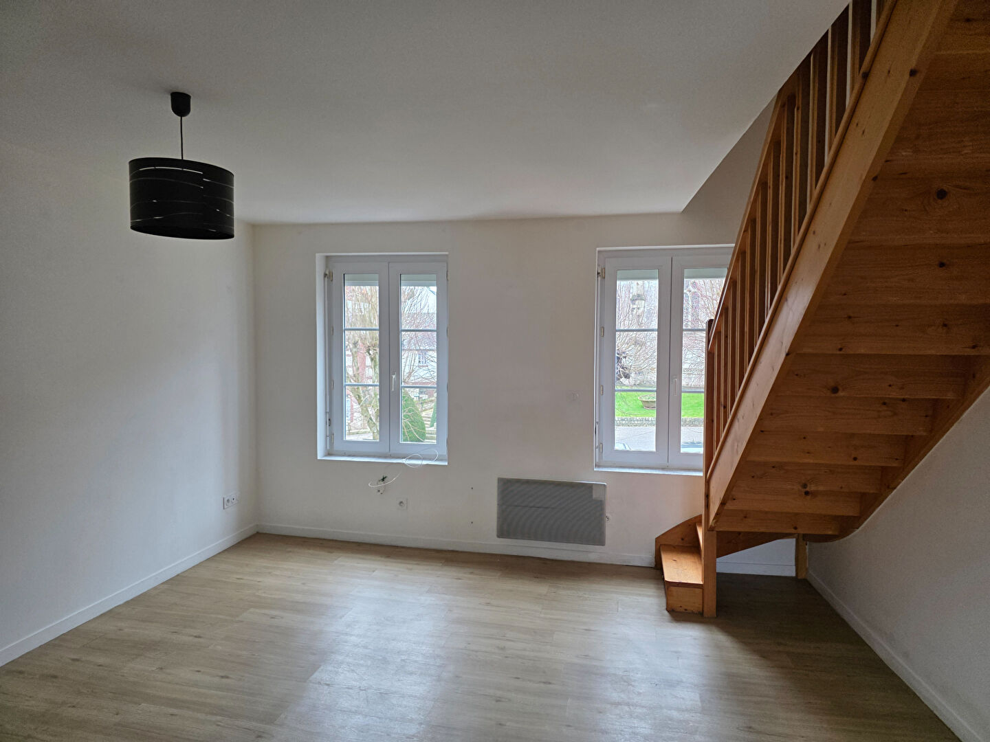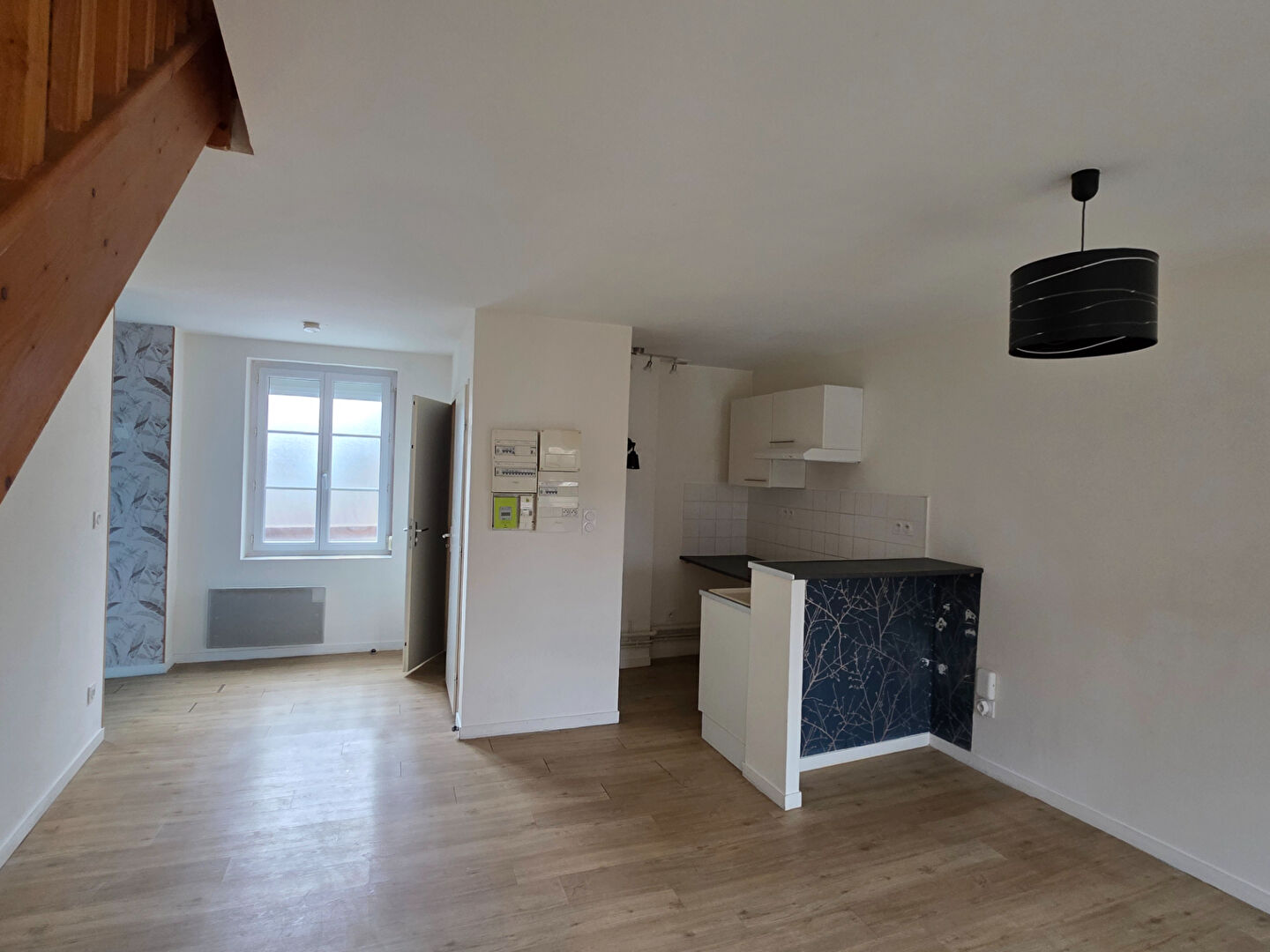 Doudeville centre au dessus de la Poste : Appartement en duplex d'environ 42 m²,au deuxième étage d'un immeuble sans ascenseur offrant : Au premier niveau : Un séjour, une cuisine aménagée et équipée (évier, plaques et hotte) Au second niveau : une chambre, et une salle de douche avec WC Disponible de suite