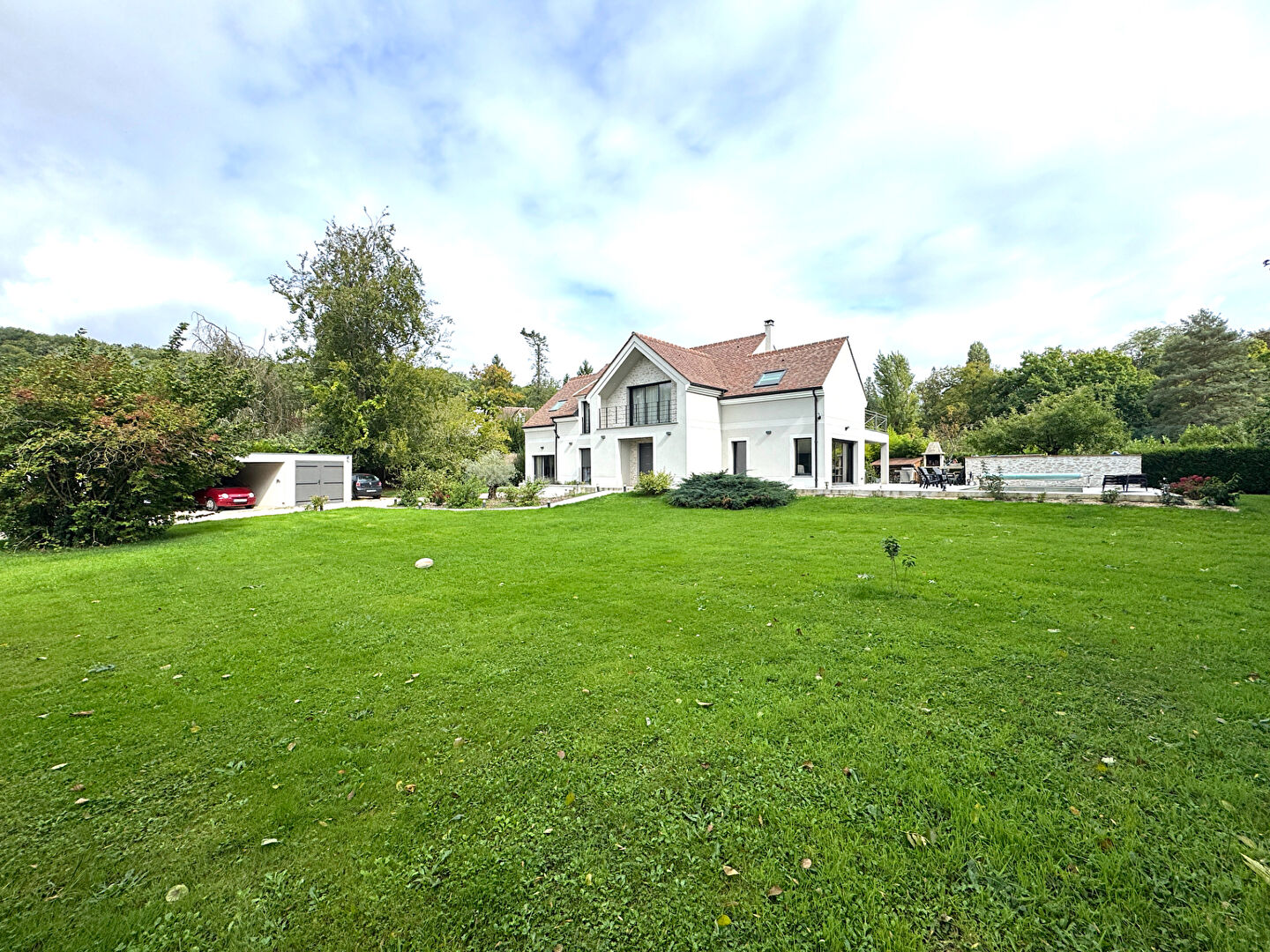 A 6' de Montfort l 'Amaury , très belle propriété neuve édifiée sur un beau terrain plat et arboré de 2680m2, au calme absolu dans un très bel environnement proche de la Forêt Domaniale. Spacieuse réception triple expositions avec cheminée, ouvert sur grande cuisine équipée avec ilot central et arrière cuisine, le tout donnant sur terrasse et jardin avec piscine chauffée.Chambre avec salle de douche.A l 'étage: grand palier avec belle hauteur sous plafond desservant 4 grandes chambres et 2 salles de bains , dressing et terrasse . Appartement indépendant entièrement équipé-Spacieux bureau avec accès indépendant . Garage 2 voitures et carport 2 voitures -Abris de jardinet piscine chauffée . Propriété de qualité aux volumes généreux -A voir ! DPE EN COURS (5.00 % honoraires TTC à la charge de l'acquéreur.)