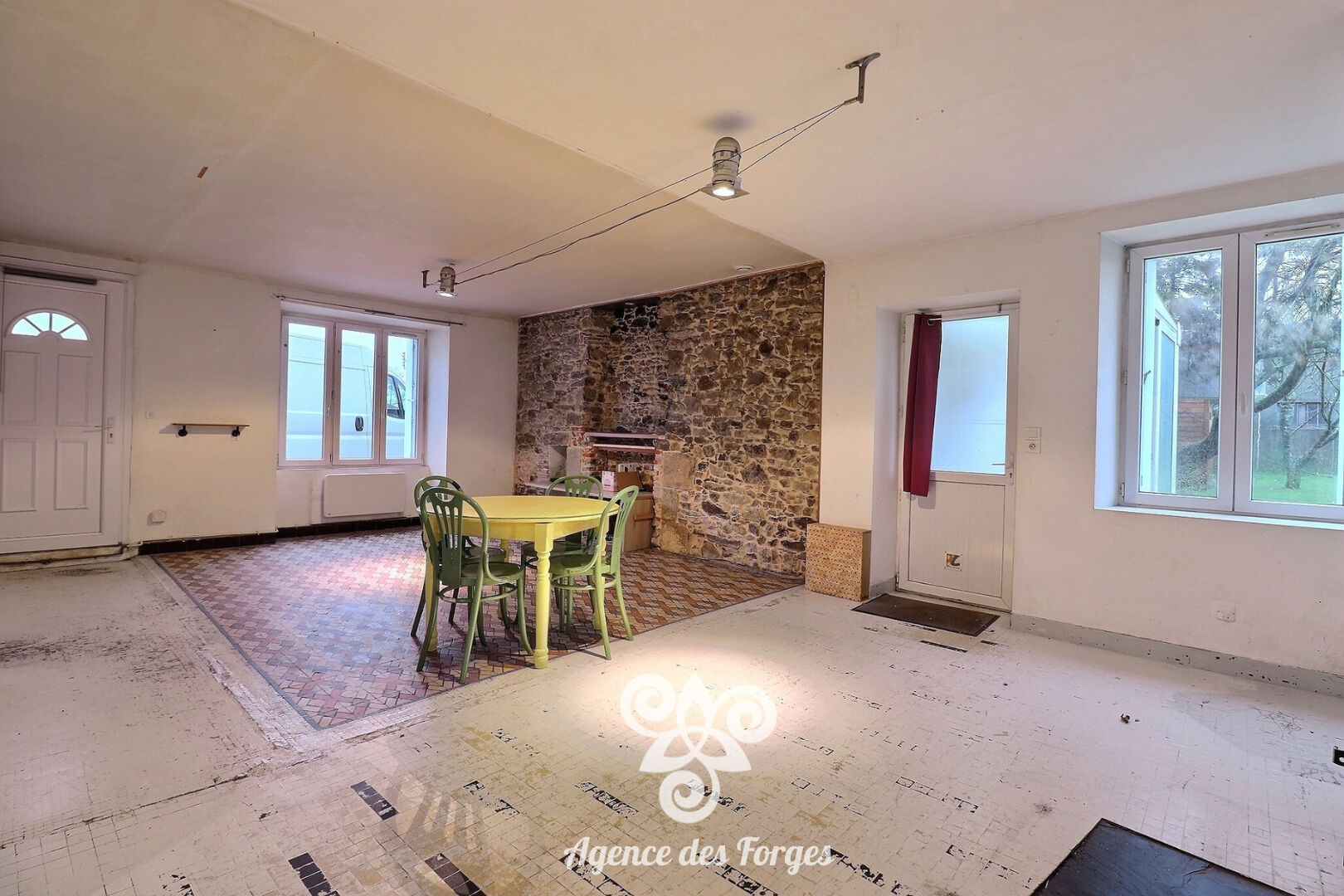 Exclusivité Agence des Forges !! Située dans le bourg de Saint Crespin sur Moine, à proximité de toutes les commodités. Maison mitoyenne d'un côté de 124m² offrant : Au rez- de- chaussée : un séjour avec pierres apparentes d'environ 36m² avec cheminée insert et porte fenêtre donnant accès au jardin - une cuisine aménagée de 18m² - une chambre d'environ 12m² - un wc indépendant. A l'étage : un palier desservant 3 chambres de 17.88, 14.66 et 9.42 (13,45m² au sol) dont 1 avec grand dressing - une salle d'eau avec douche, vasque et wc. Le tout sur une parcelle de terrain arboré de 615m² - une terrasse en bois - un garage de 22m² avec portail manuel et point d'eau - une petite véranda - un bûcher. Travaux à prévoir - Chauffage électrique et insert bois - PVC double vitrage - Volets battants et électriques - Tout à l'égout - commerces et commodités à pied... (5.56 % honoraires TTC à la charge de l'acquéreur.)