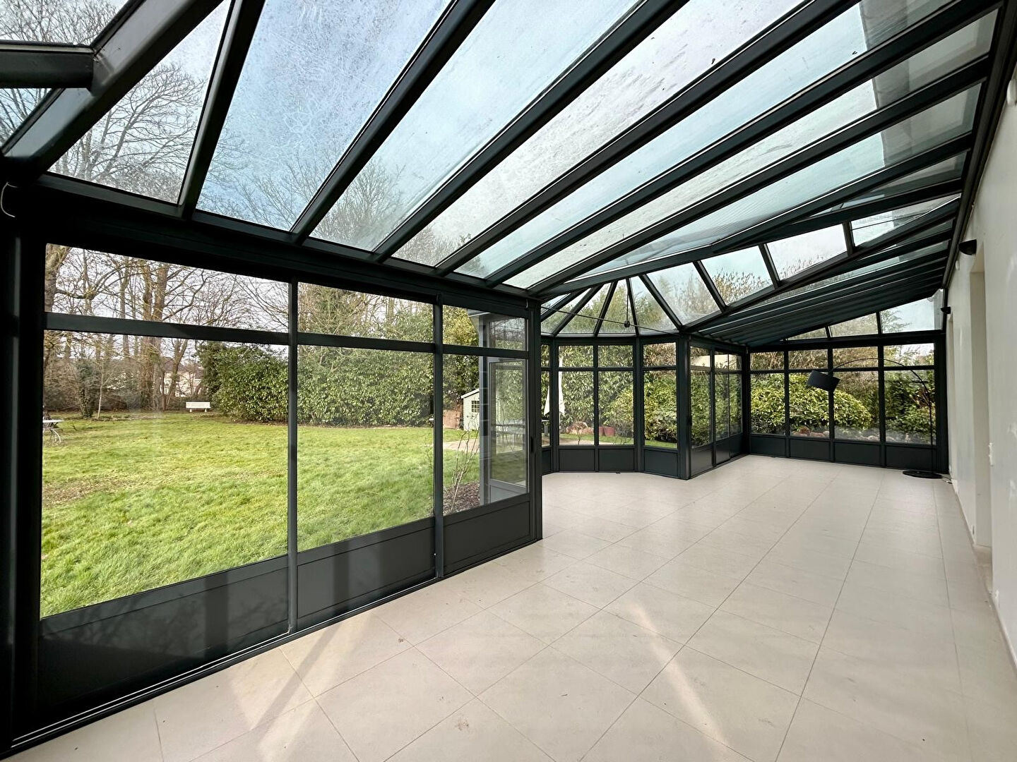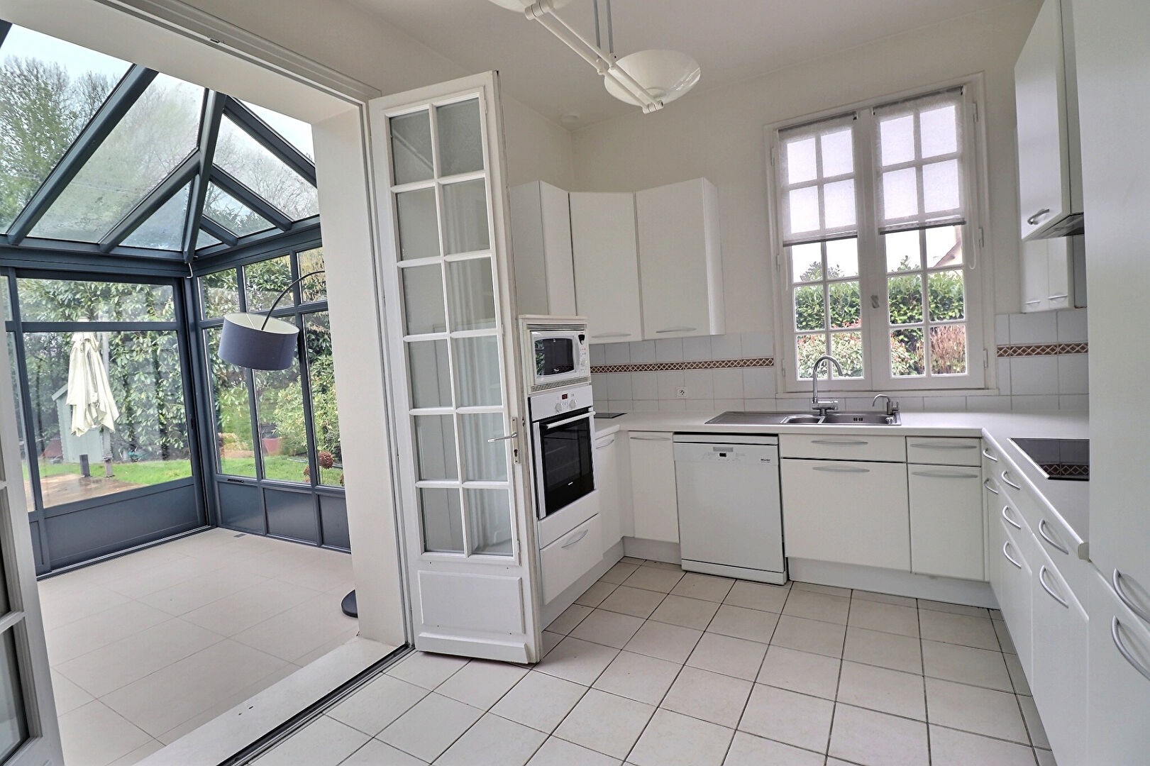 Très belle maison MANSART, construite en 1973, d'une superficie de 205 m² dont très belle véranda. Le terrain de 1278m² est agrémenté d'une PISCINE EXTERIEURE. La maison bénéficie d'un environnement calme et verdoyant, à l'orée d'un espace boisé privé et protégé garantissant discrétion. Entrée, salon avec cheminée sur véranda, salle à manger, cuisine dinatoire ouverte sur la véranda, wc, placards. A l'étage : 4 chambres avec placards, salle de douche, salle de bain avec wc. Sous-sol total : buanderie, salle de jeux de 35 m², stockage, cave. Chauffage central gaz. (5.00 % honoraires TTC à la charge de l'acquéreur.)