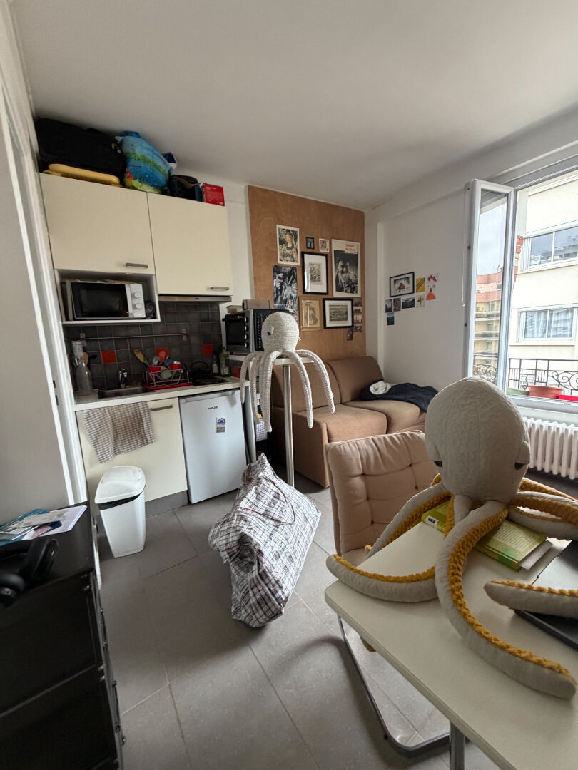 Place Gambetta ( à 200 m ) En un très joli immeuble 1930 en pierre de Paris et Briques, un studio au cinquième et dernier étage . Il comprend un séjour avec une cuisine ouverte, salle de douche cabinet d'aisance. NB: fort volume de combles à l'aplomb de l'appartement à envisager (7.14 % honoraires TTC à la charge de l'acquéreur.)