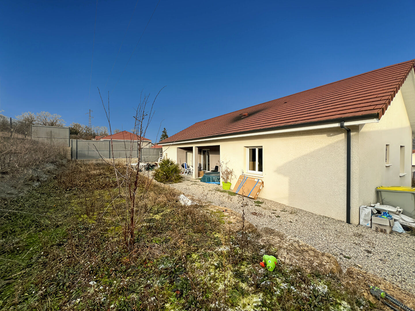 Située à Bouvesse Quirieu, au sein d'un petit lotissement calme, cette maison récente 4 pièces de 89 m² offre un cadre de vie agréable et fonctionnel, idéal pour une vie de famille. La maison propose une belle pièce de vie lumineuse avec cuisine équipée ouverte, pensée pour le confort et la convivialité ainsi qu'un WC indépendant. L'espace nuit se compose de trois chambres ainsi que d'une salle d'eau moderne avec WC. Les prestations sont actuelles et de qualité avec un carrelage grand format et un plancher chauffant par pompe à chaleur, assurant un excellent confort thermique et de faibles consommations. Implantée sur un terrain de 550 m², la propriété dispose d'une cour goudronnée facilitant le stationnement ainsi qu'une terrasse extérieur et un enrochement. Des travaux d'agrément extérieur restent à prévoir, offrant un beau potentiel pour aménager le jardin selon vos envies. Un garage attenant à la maison complète cette offre. La maison bénéficie d'un emplacement recherché, à proximité de l'école et du ramassage scolaire, dans un environnement résidentiel apprécié. Une maison récente, lumineuse et bien située, à découvrir rapidement auprès de Maxime CROLLARD, gérant, ou directement dans votre agence Emotion Meximieux. Estimation, conseils et valorisation immobilière.